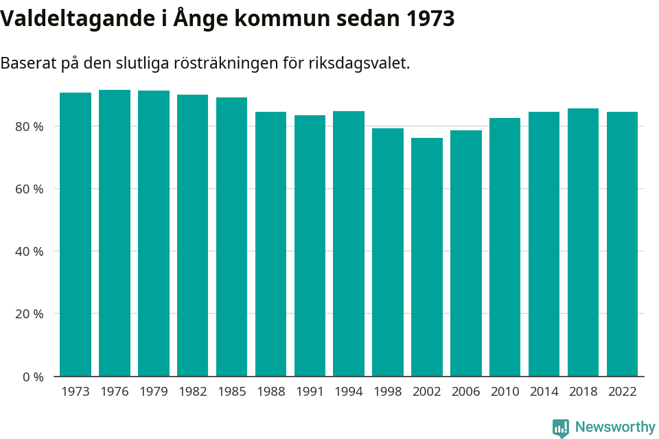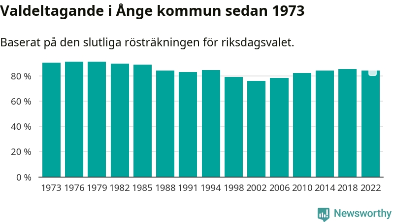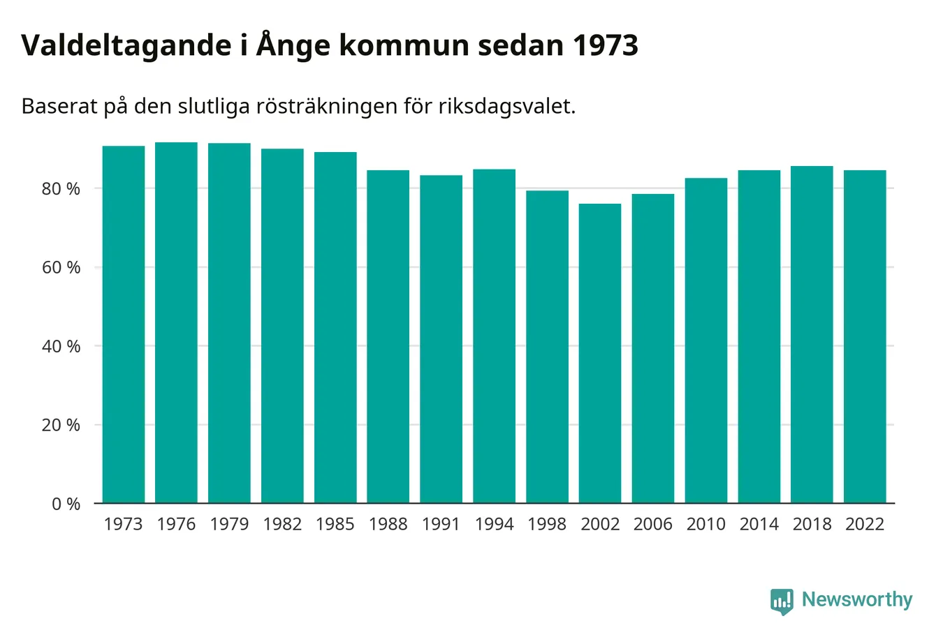 Ånge tillhör Västernorrlands läns valkrets. Där var valdeltagandet förra valet 85,2 procent. I hela riket landade valdeltagandet 2022 på 84,21 procent, att jämföra med 87,18 procent 2018.