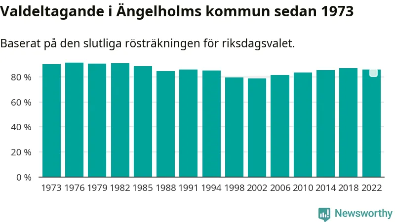 Högst valdeltagande i Skåne läns norra och östra valkrets, som Ängelholm tillhör, noterades i Båstads kommun, där 87,2 procent röstade i riksdagsvalet. Lägst var valdeltagande i valkretsen i Perstorps kommun, 79,2 procent.