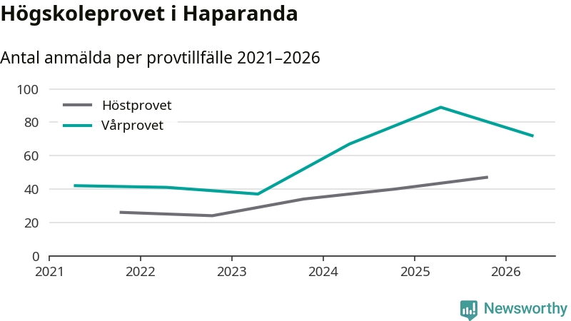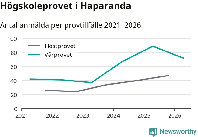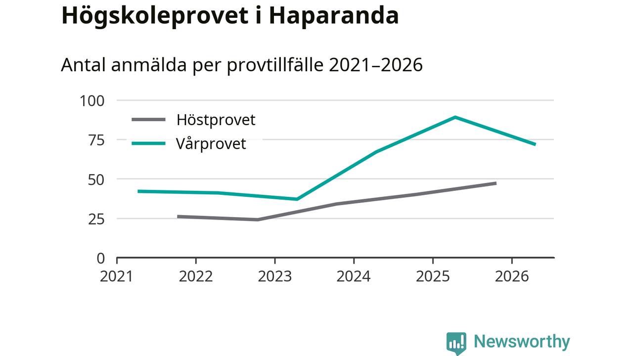 På lördag är det dags för högskoleprovet igen. Efter de begränsade provomgångarna under pandemin har antalet anmälda ökat varje år i Sverige, och i år är omkring 100 700 personer anmälda att delta någonstans i landet. På lördag är 72 personer anmälda att skriva högskoleprovet i Haparanda. Förra våren var motsvarande siffra 89 personer.