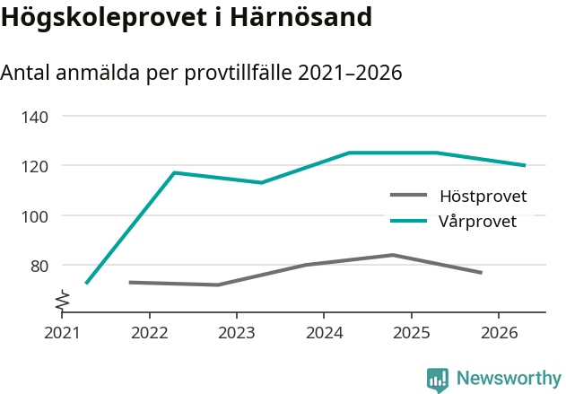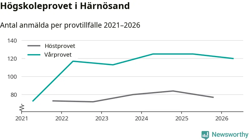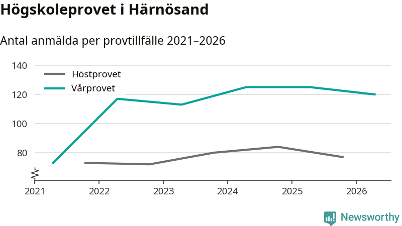 På lördag är det dags för högskoleprovet igen. Efter de begränsade provomgångarna under pandemin har antalet anmälda ökat varje år i Sverige, och i år är omkring 100 700 personer anmälda att delta någonstans i landet. På lördag är 120 personer anmälda att skriva högskoleprovet i Härnösand. Förra våren var motsvarande siffra 125 personer.