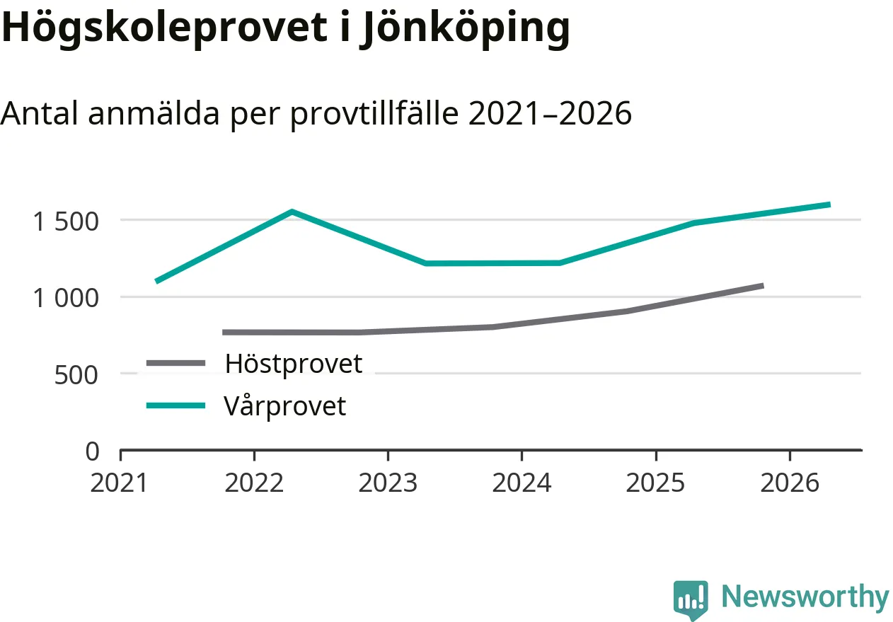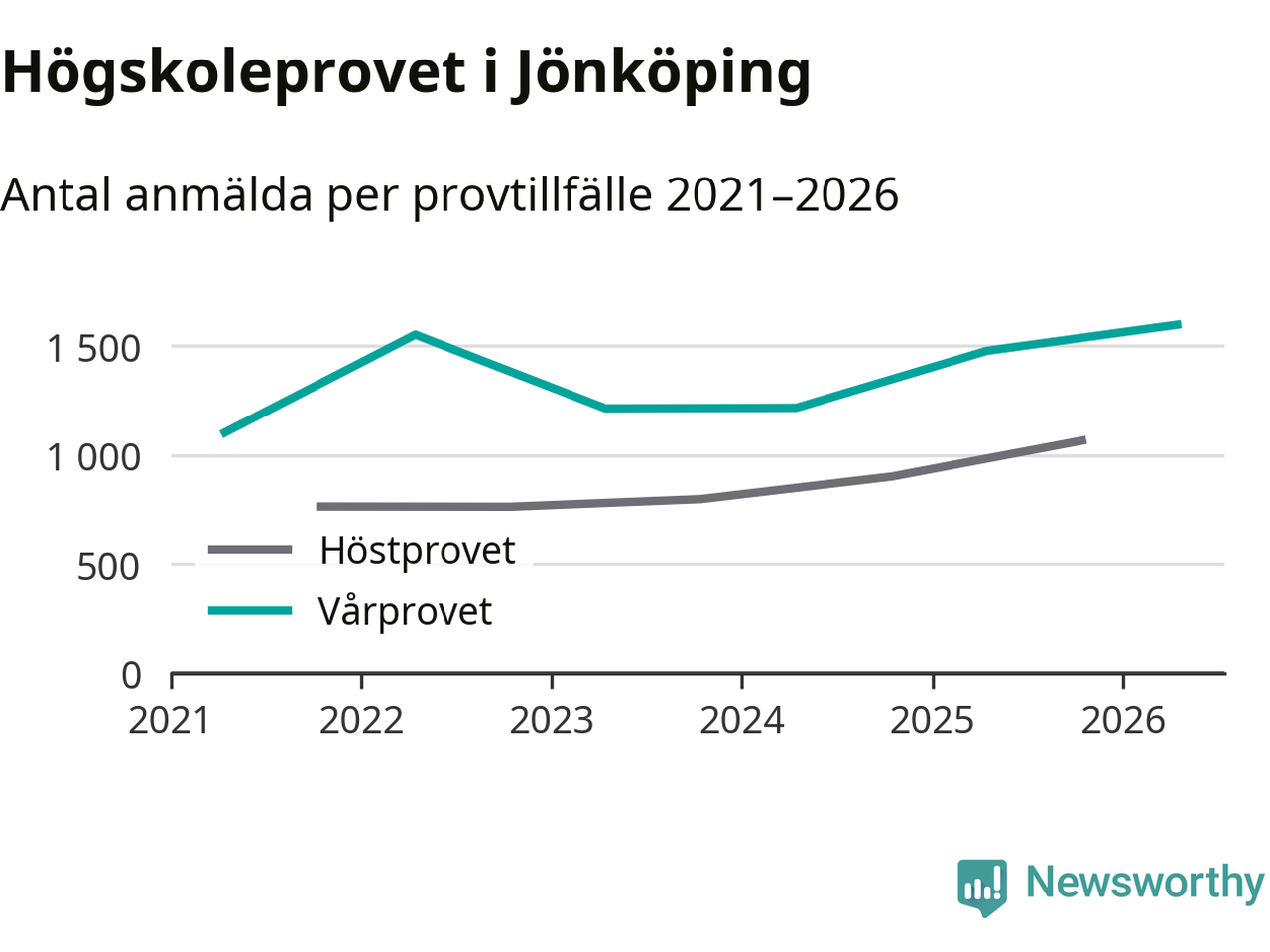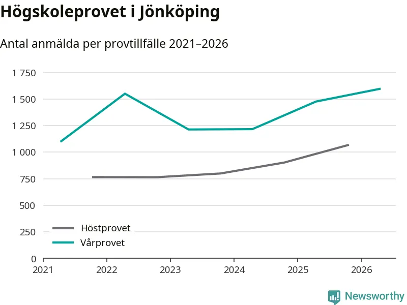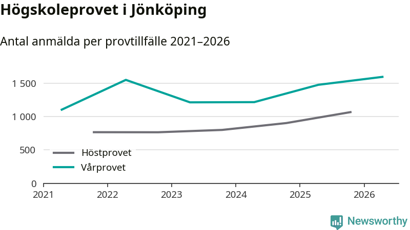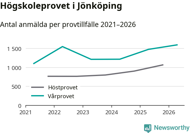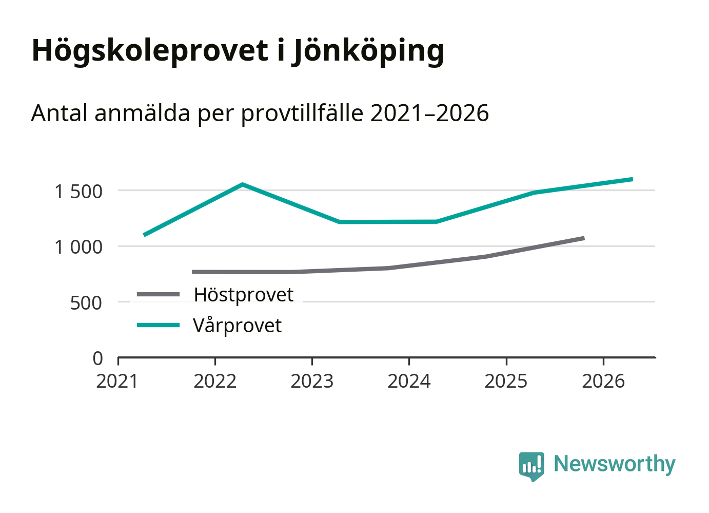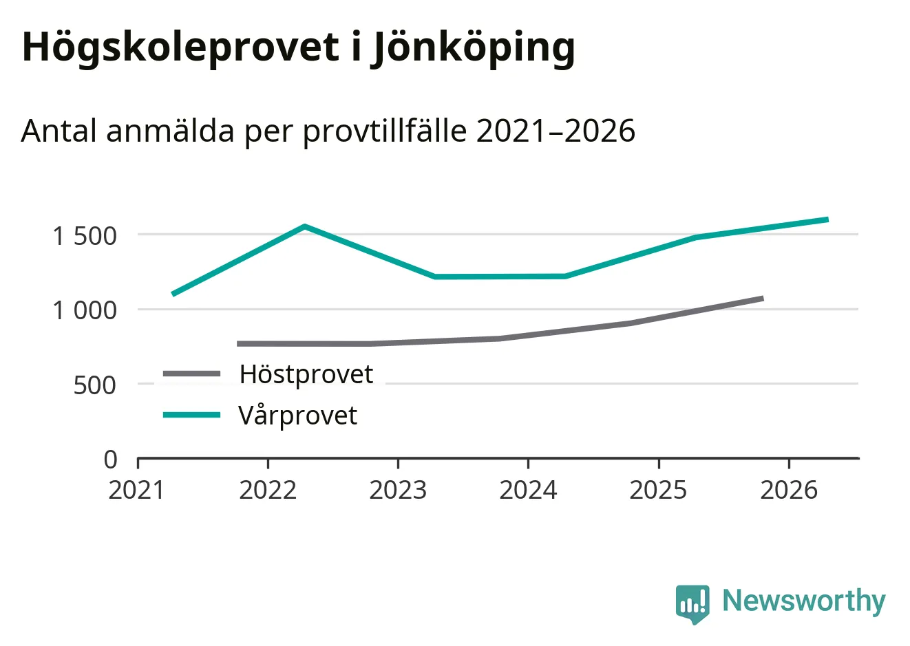 På lördag är det dags för högskoleprovet igen. Efter de begränsade provomgångarna under pandemin har antalet anmälda ökat varje år i Sverige, och i år är omkring 100 700 personer anmälda att delta någonstans i landet. För tredje året i rad ökar antalet anmälda till vårens prov i Jönköping. På lördag är 1 596 personer anmälda, jämfört med 1 477 personer förra våren.