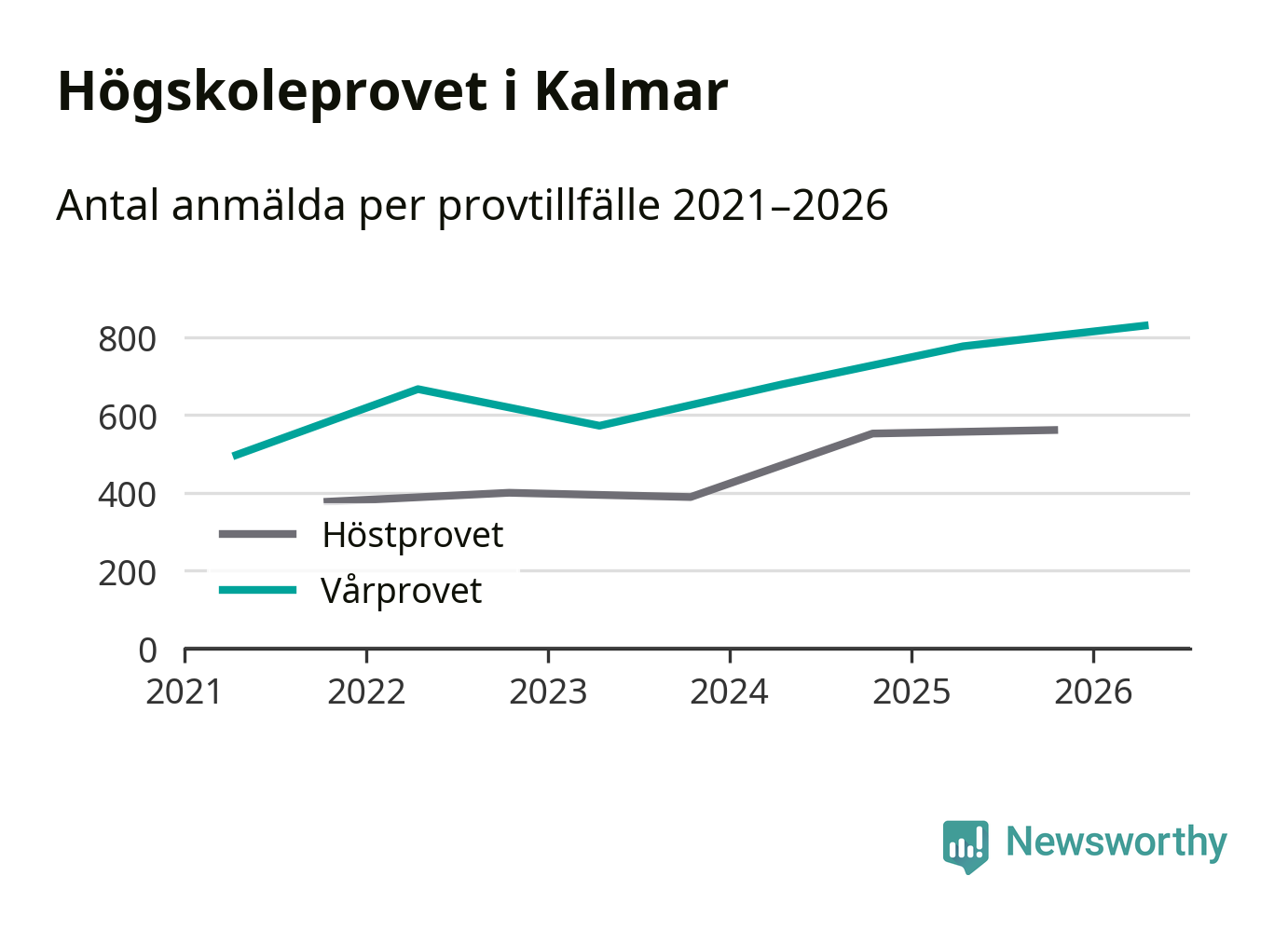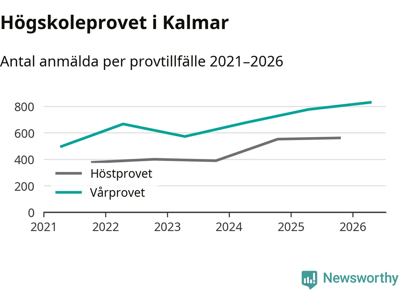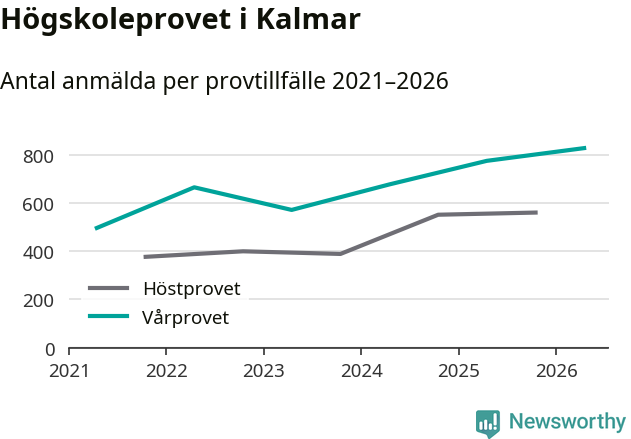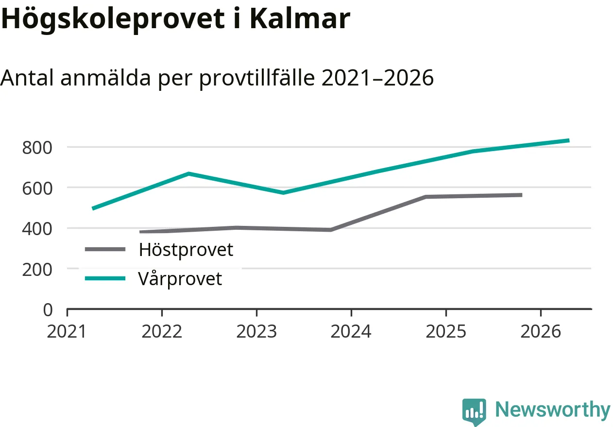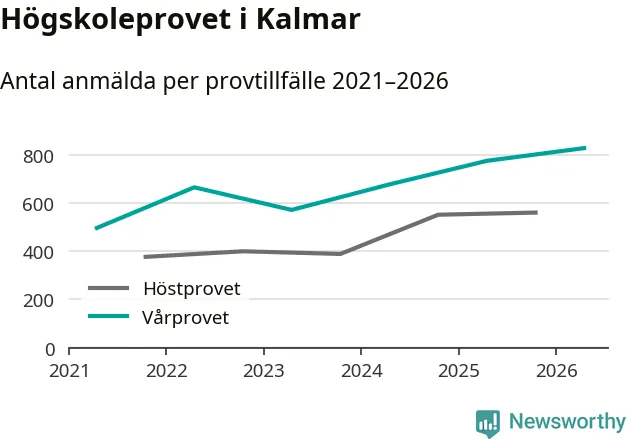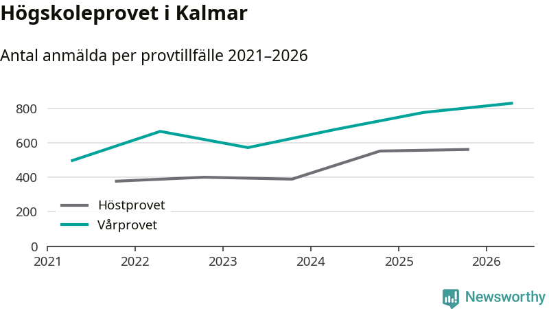 På lördag är det dags för högskoleprovet igen. Efter de begränsade provomgångarna under pandemin har antalet anmälda ökat varje år i Sverige, och i år är omkring 100 700 personer anmälda att delta någonstans i landet. För tredje året i rad ökar antalet anmälda till vårens prov i Kalmar. På lördag är 829 personer anmälda, jämfört med 776 personer förra våren.