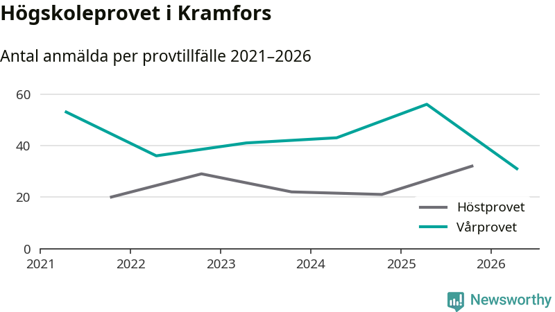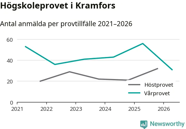 På lördag är det dags för högskoleprovet igen. Efter de begränsade provomgångarna under pandemin har antalet anmälda ökat varje år i Sverige, och i år är omkring 100 700 personer anmälda att delta någonstans i landet. På lördag är 31 personer anmälda att skriva högskoleprovet i Kramfors. Förra våren var motsvarande siffra 56 personer.
