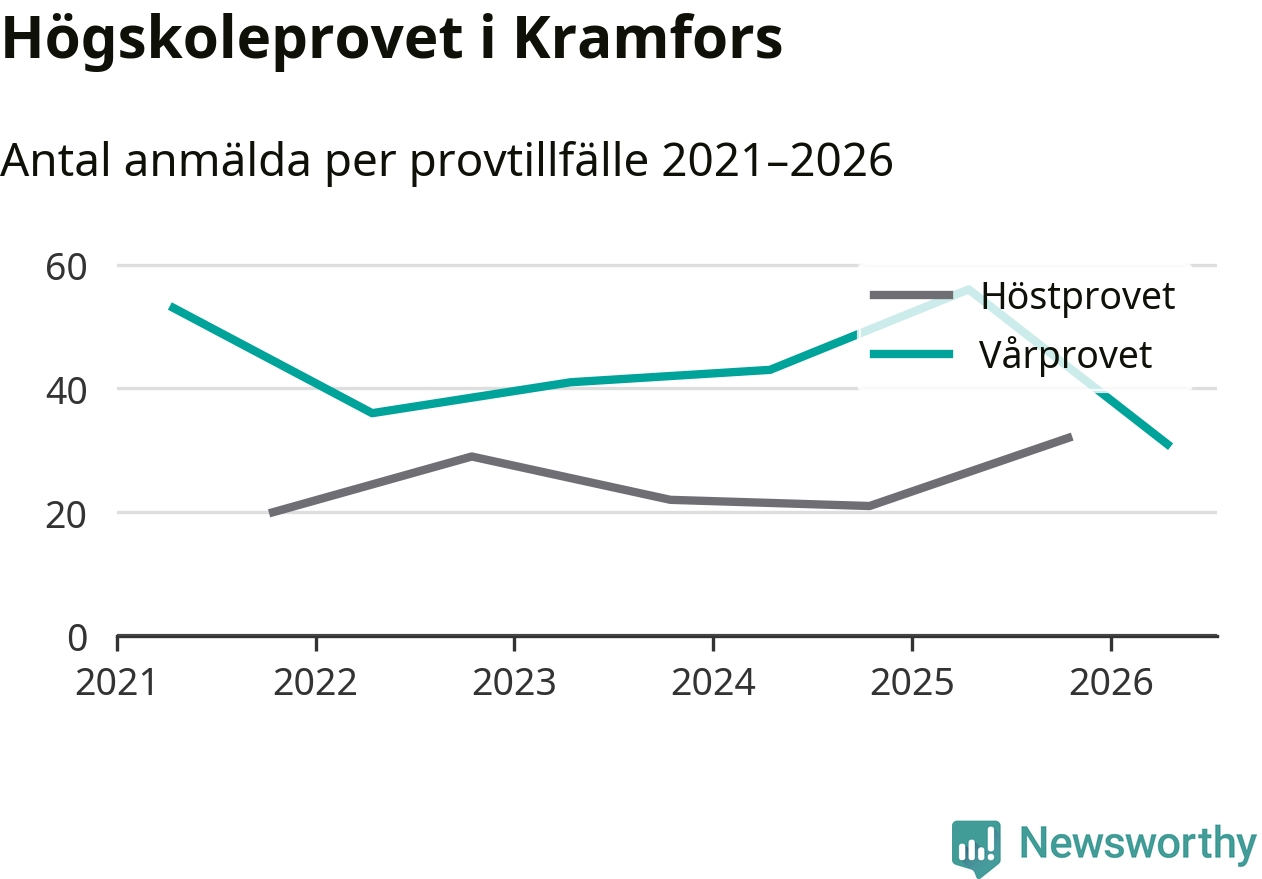 Det är Mittuniversitetet som anordnar provet i Kramfors, universitetet anordnar också prov i bland annat Sveg, Härnösand och Sollefteå. Totalt är 2 251 personer anmälda att skriva provet i Mittuniversitetets regi. Högskoleprovet hålls två gånger per år, i april och oktober. Det är normalt sett fler som skriver provet på våren än på hösten.