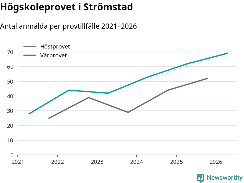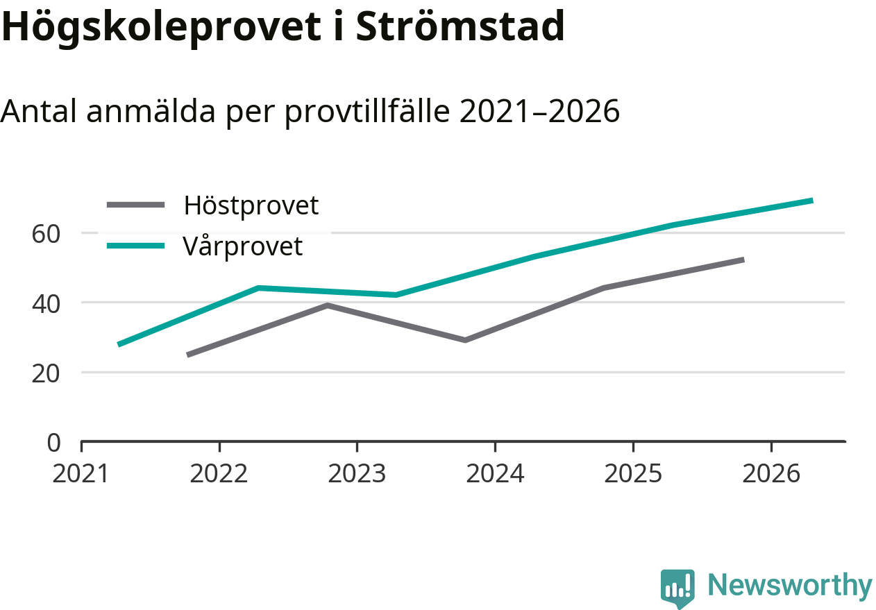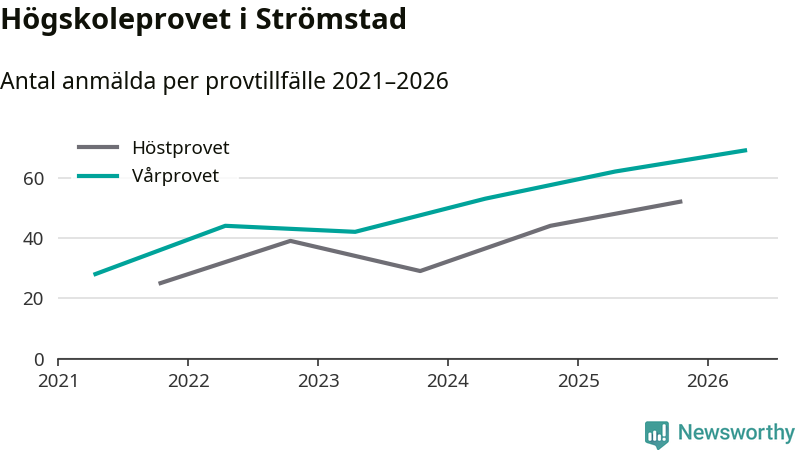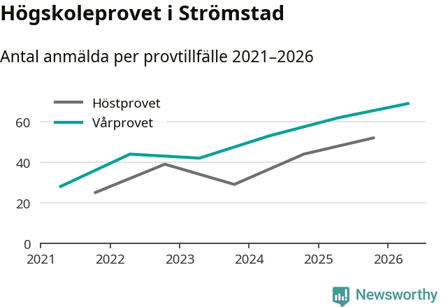På lördag är det dags för högskoleprovet igen. Efter de begränsade provomgångarna under pandemin har antalet anmälda ökat varje år i Sverige, och i år är omkring 100 700 personer anmälda att delta någonstans i landet. För tredje året i rad ökar antalet anmälda till vårens prov i Strömstad. På lördag är 69 personer anmälda, jämfört med 62 personer förra våren.