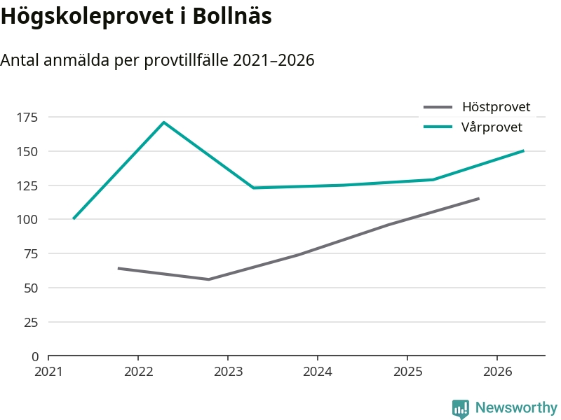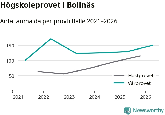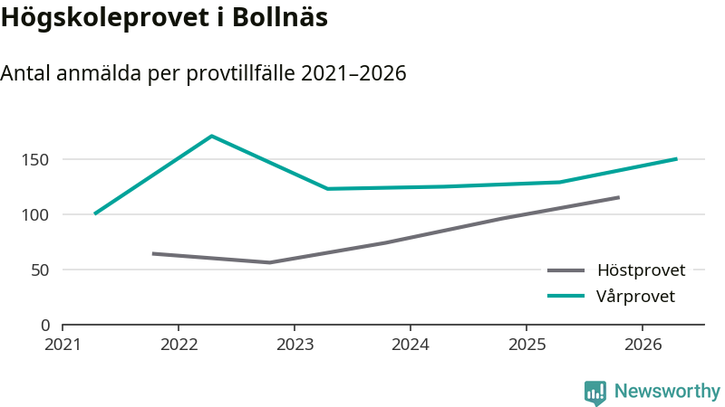 På lördag är det dags för högskoleprovet igen. Efter de begränsade provomgångarna under pandemin har antalet anmälda ökat varje år i Sverige, och i år är omkring 100 700 personer anmälda att delta någonstans i landet. För tredje året i rad ökar antalet anmälda till vårens prov i Bollnäs. På lördag är 150 personer anmälda, jämfört med 129 personer förra våren.
