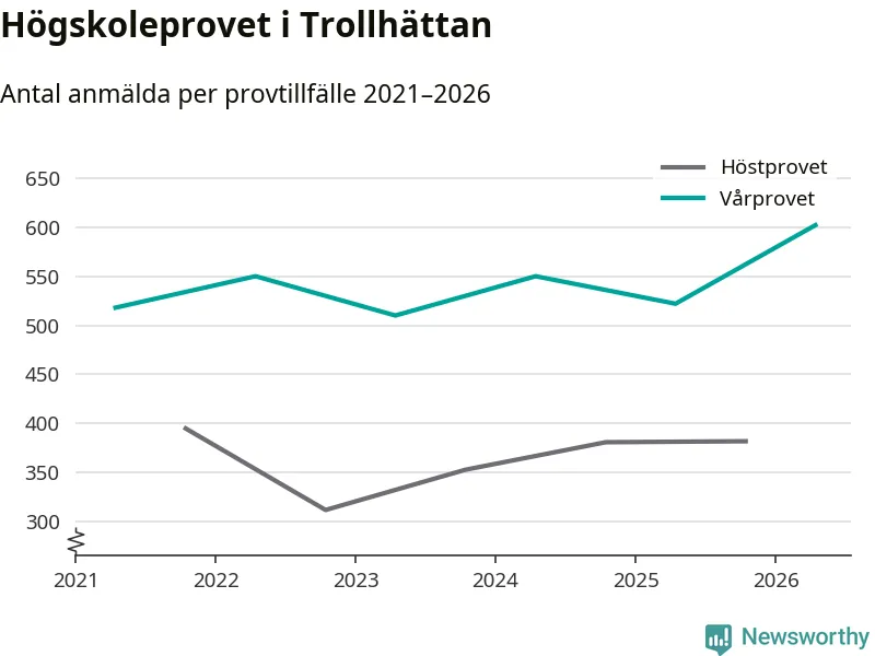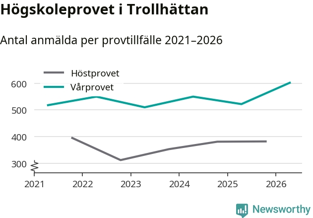 På lördag är det dags för högskoleprovet igen. Efter de begränsade provomgångarna under pandemin har antalet anmälda ökat varje år i Sverige, och i år är omkring 100 700 personer anmälda att delta någonstans i landet. På lördag är 602 personer anmälda att skriva högskoleprovet i Trollhättan. Förra våren var motsvarande siffra 522 personer.