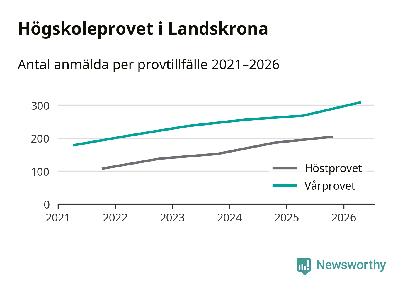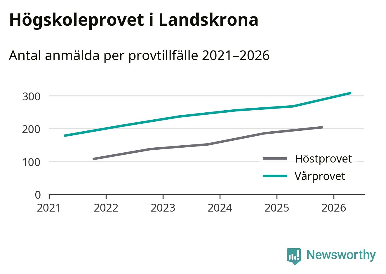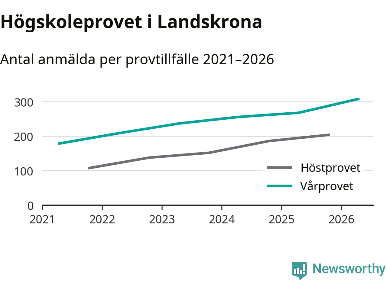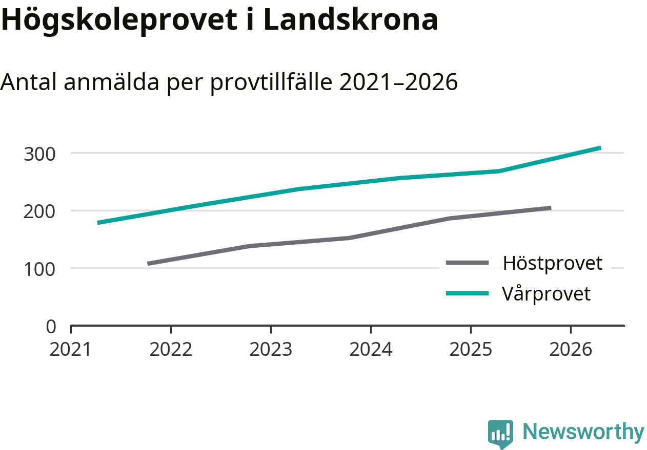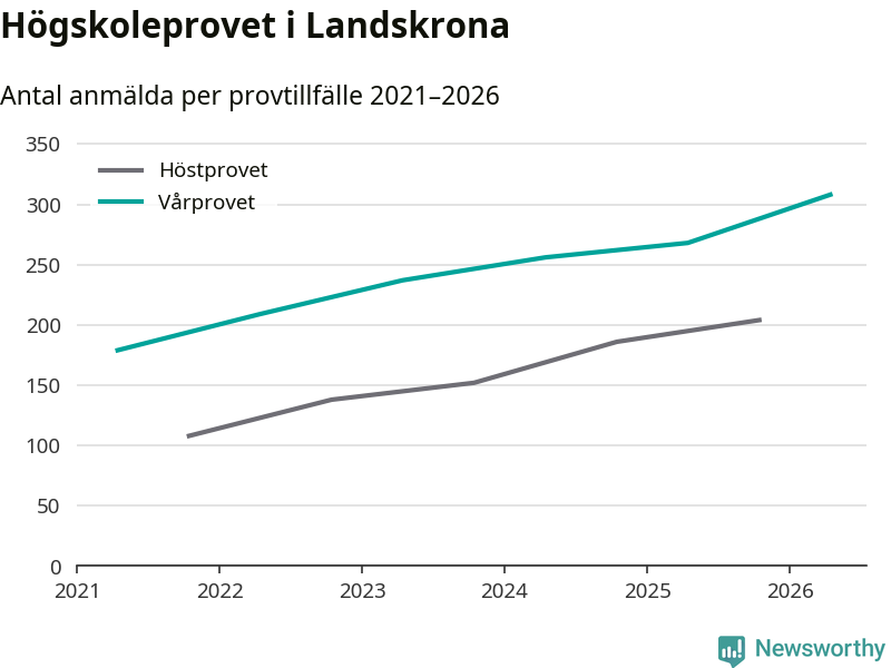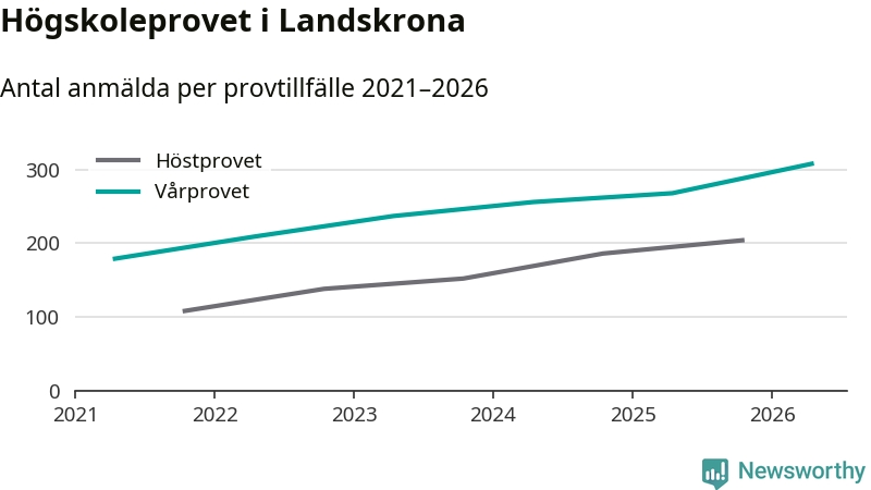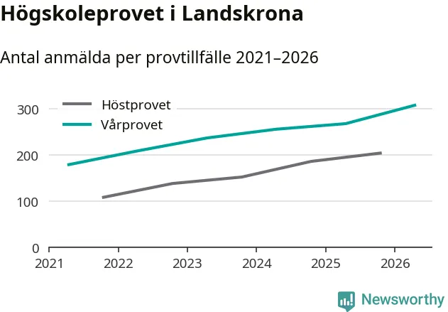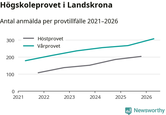 På lördag är det dags för högskoleprovet igen. Efter de begränsade provomgångarna under pandemin har antalet anmälda ökat varje år i Sverige, och i år är omkring 100 700 personer anmälda att delta någonstans i landet. För femte året i rad ökar antalet anmälda till vårens prov i Landskrona. På lördag är 308 personer anmälda, jämfört med 268 personer förra våren.