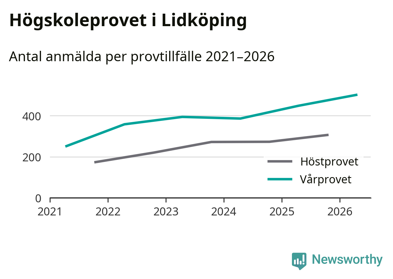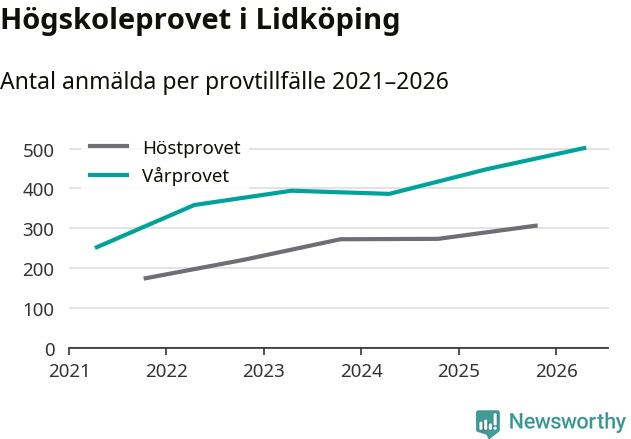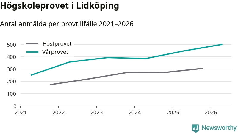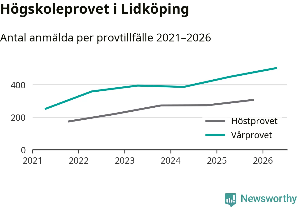 På lördag är det dags för högskoleprovet igen. Efter de begränsade provomgångarna under pandemin har antalet anmälda ökat varje år i Sverige, och i år är omkring 100 700 personer anmälda att delta någonstans i landet. På lördag är 501 personer anmälda att skriva högskoleprovet i Lidköping. Förra våren var motsvarande siffra 448 personer.