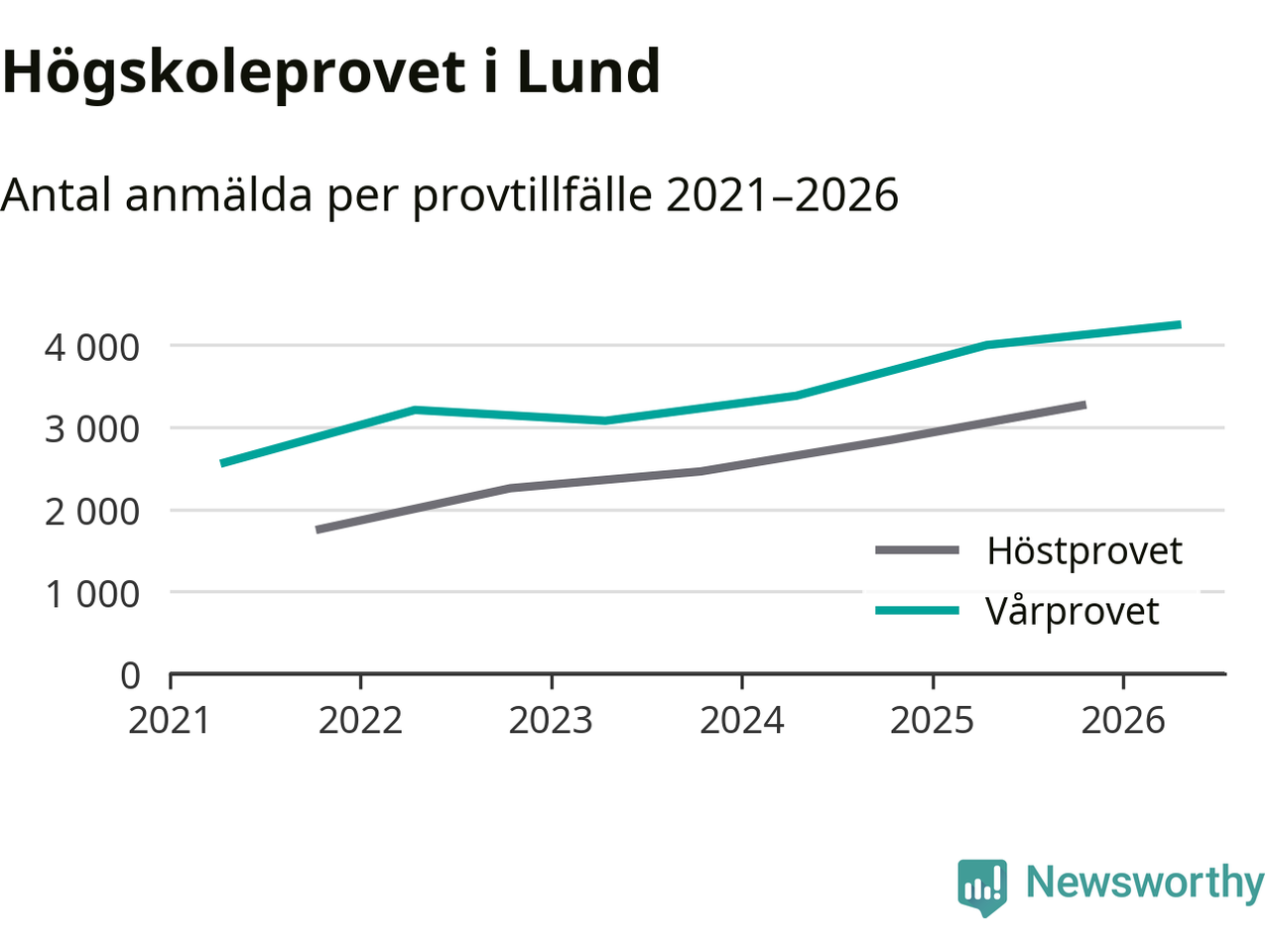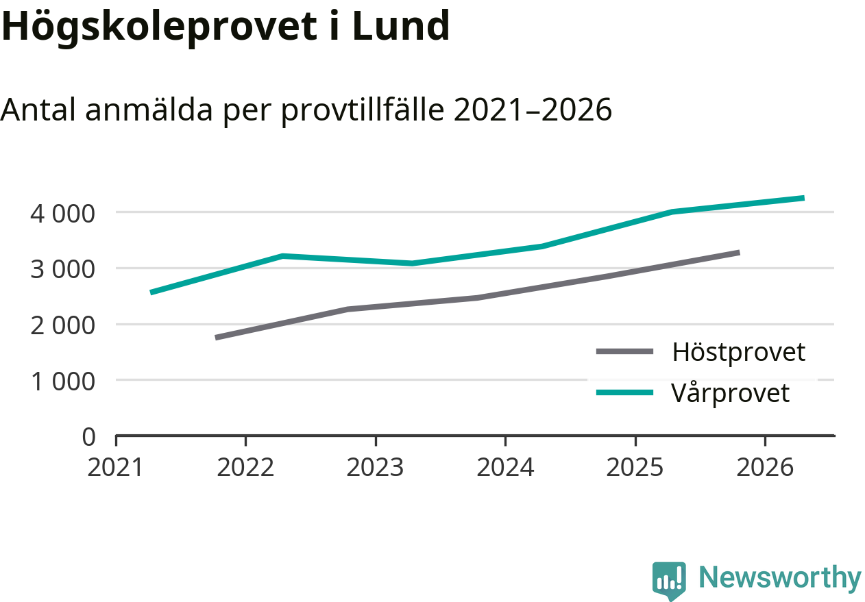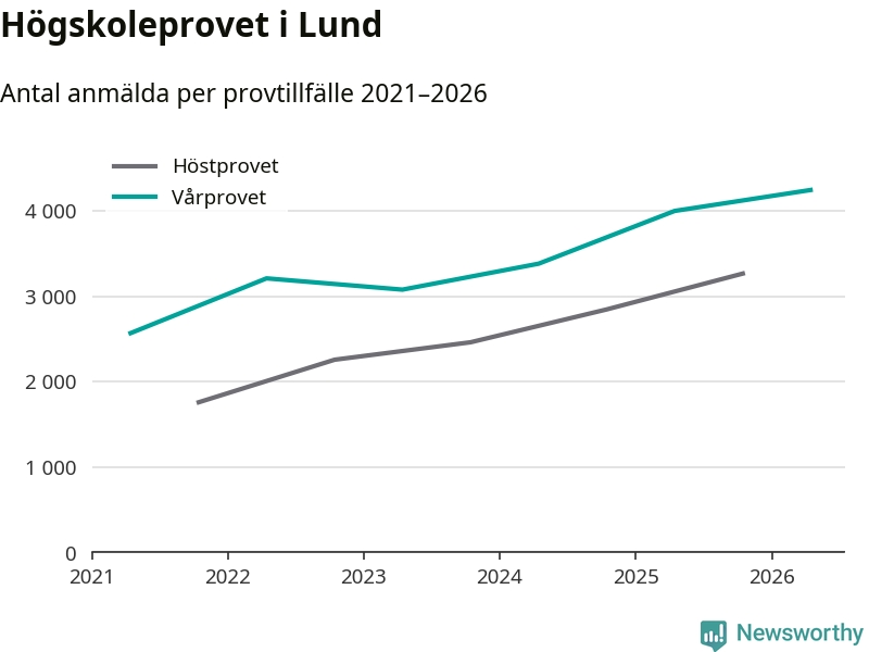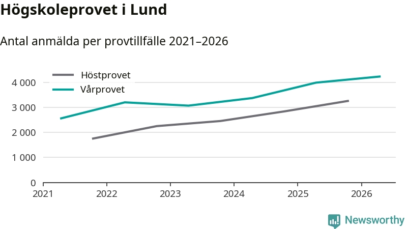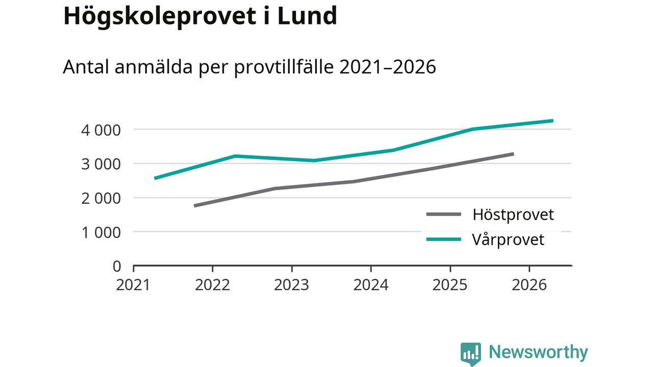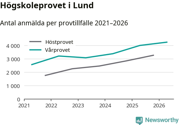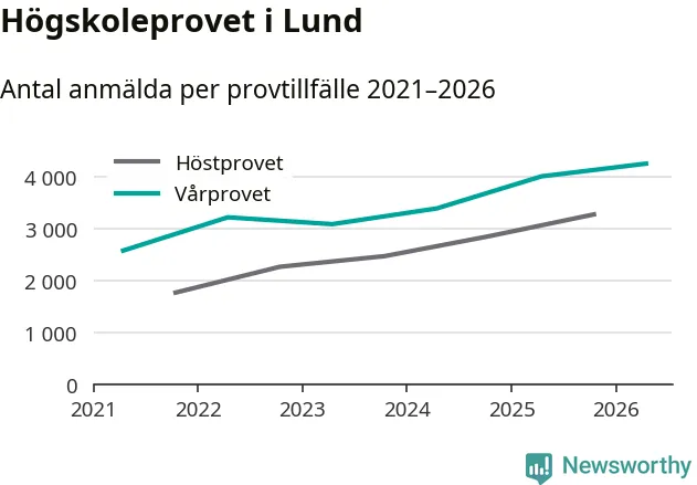 På lördag är det dags för högskoleprovet igen. Efter de begränsade provomgångarna under pandemin har antalet anmälda ökat varje år i Sverige, och i år är omkring 100 700 personer anmälda att delta någonstans i landet. För tredje året i rad ökar antalet anmälda till vårens prov i Lund. På lördag är 4 243 personer anmälda, jämfört med 3 998 personer förra våren.