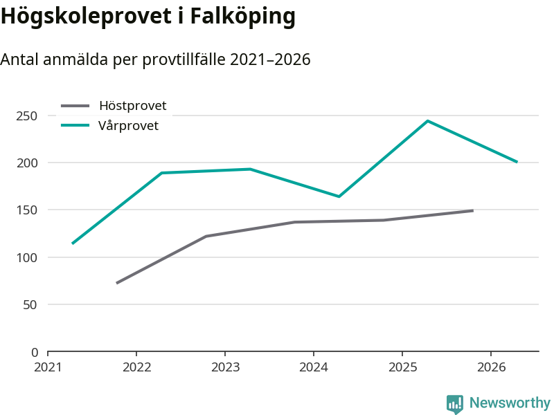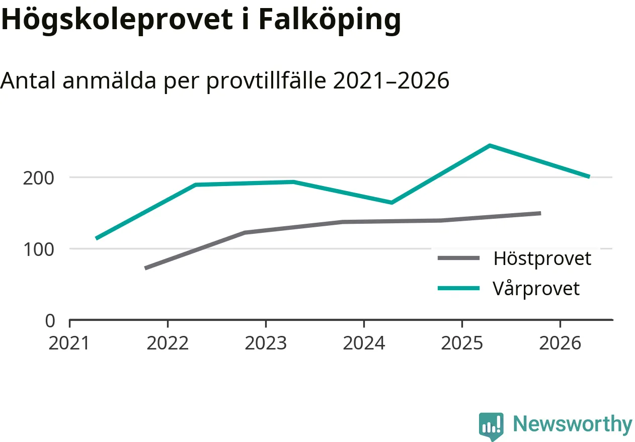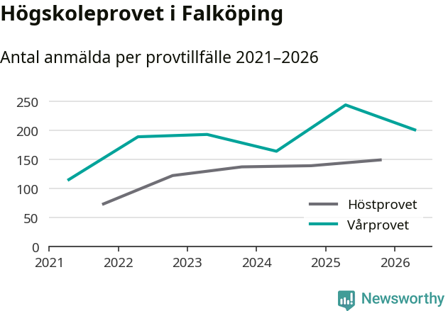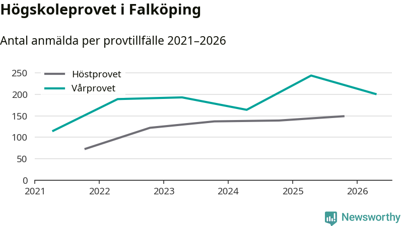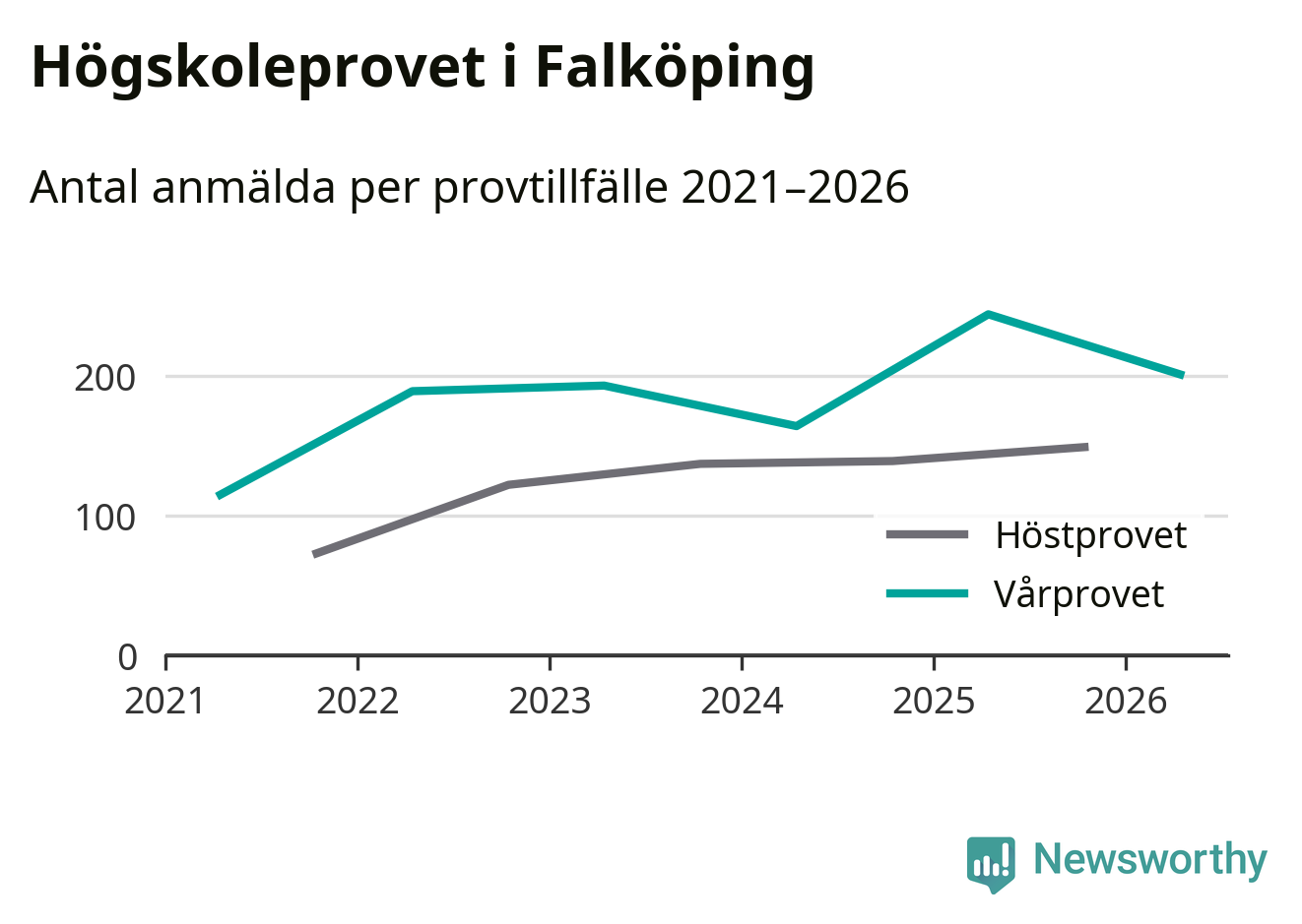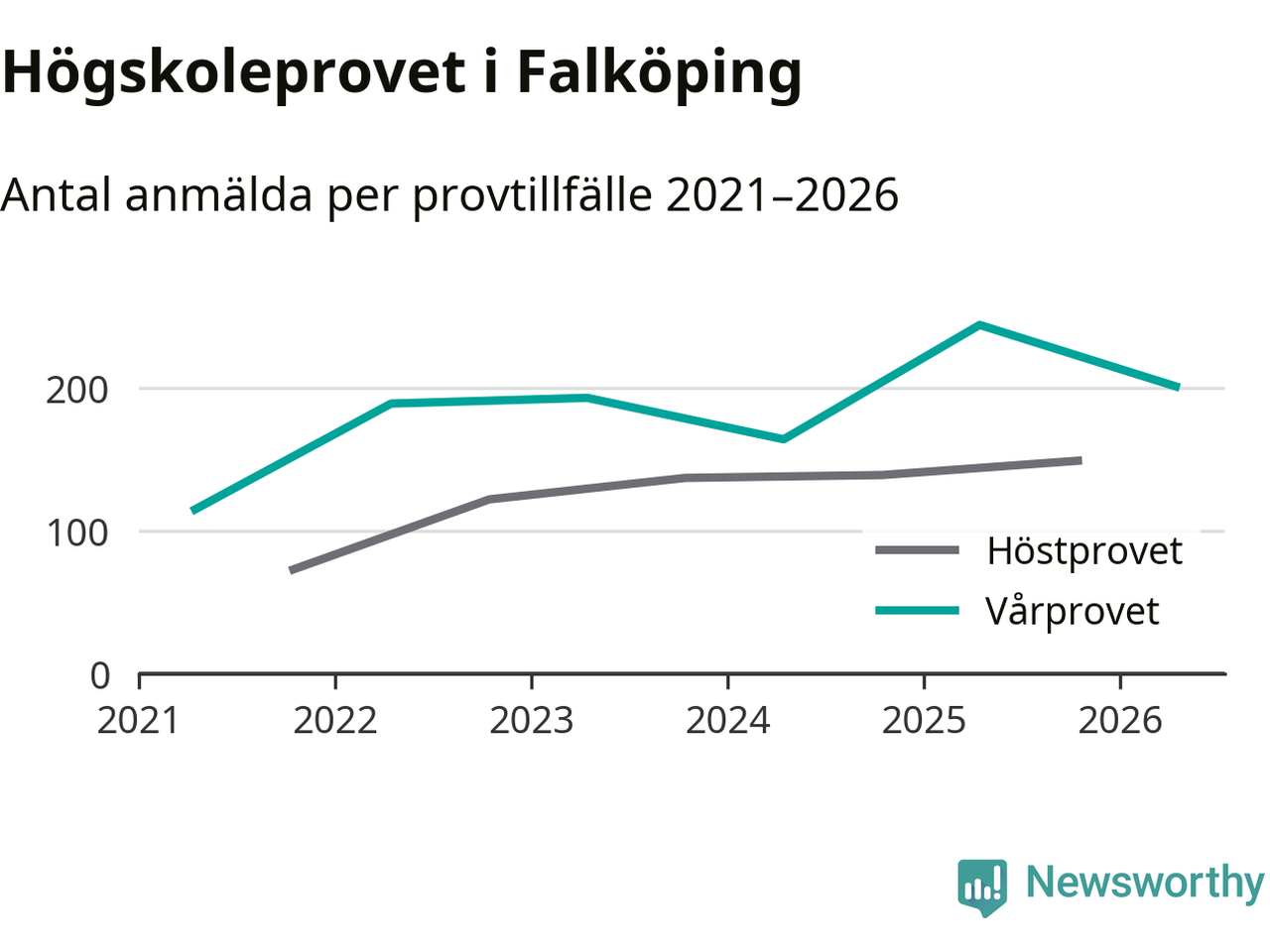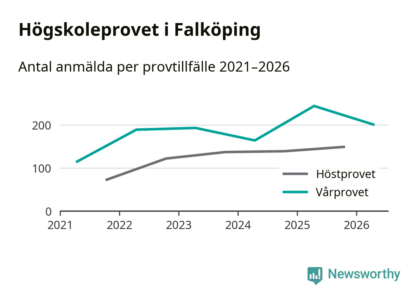 På lördag är det dags för högskoleprovet igen. Efter de begränsade provomgångarna under pandemin har antalet anmälda ökat varje år i Sverige, och i år är omkring 100 700 personer anmälda att delta någonstans i landet. På lördag är 201 personer anmälda att skriva högskoleprovet i Falköping. Förra våren var motsvarande siffra 244 personer.