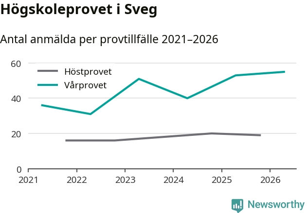 På lördag är det dags för högskoleprovet igen. Efter de begränsade provomgångarna under pandemin har antalet anmälda ökat varje år i Sverige, och i år är omkring 100 700 personer anmälda att delta någonstans i landet. På lördag är 55 personer anmälda att skriva högskoleprovet i Sveg. Förra våren var motsvarande siffra 53 personer.