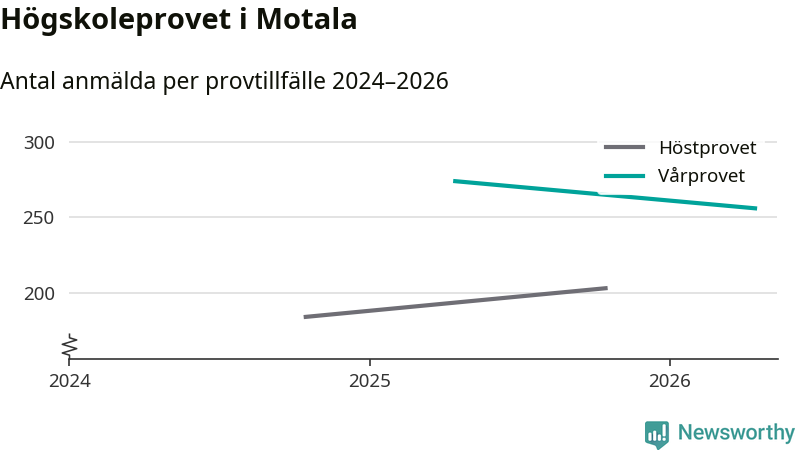 På lördag är det dags för högskoleprovet igen. Efter de begränsade provomgångarna under pandemin har antalet anmälda ökat varje år i Sverige, och i år är omkring 100 700 personer anmälda att delta någonstans i landet. På lördag är 256 personer anmälda att skriva högskoleprovet i Motala. Förra våren var motsvarande siffra 274 personer. Motala har varit provort sedan hösten 2024.