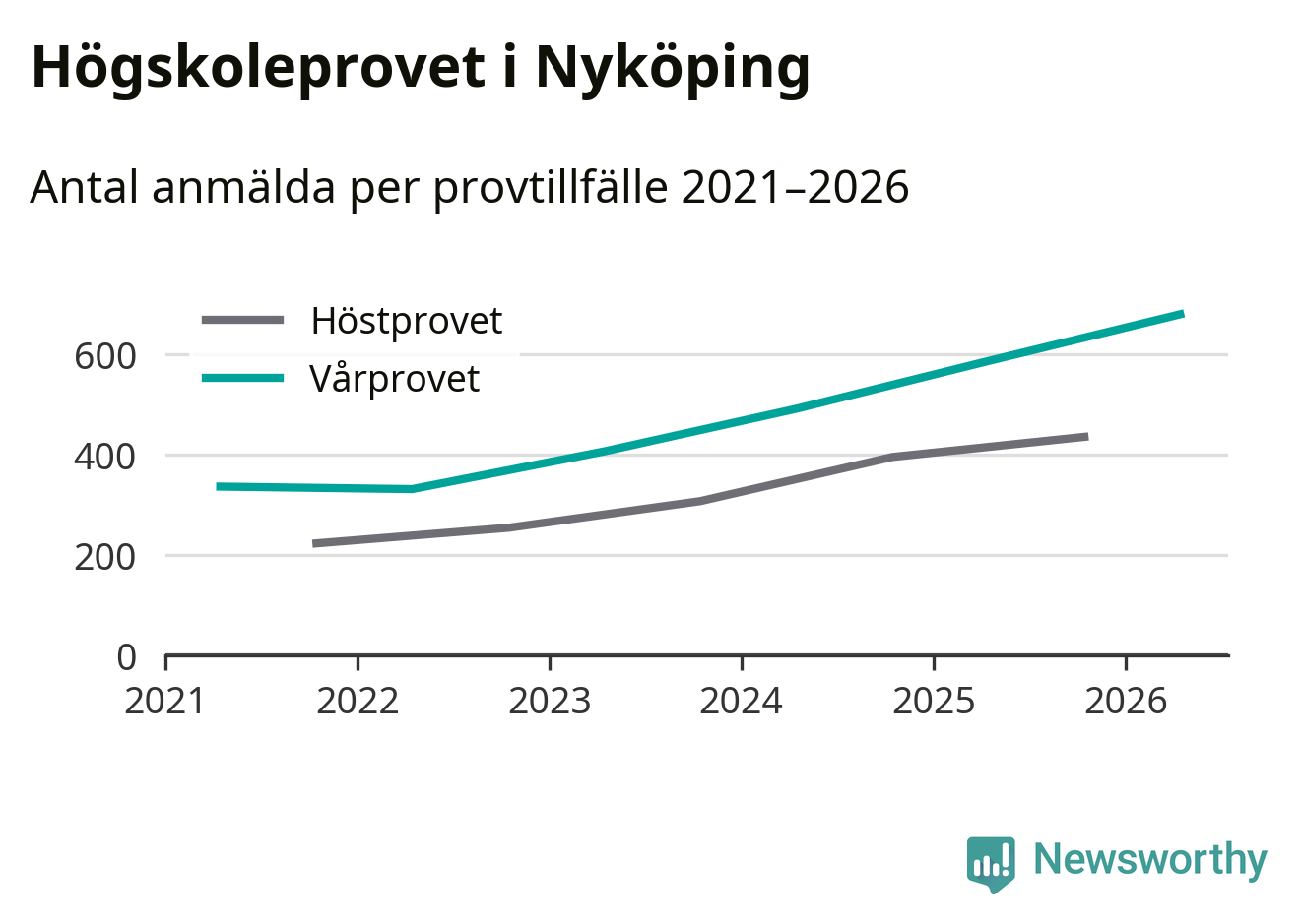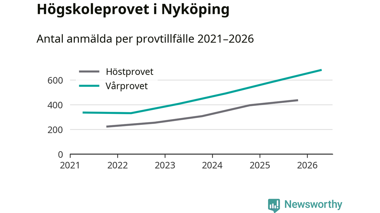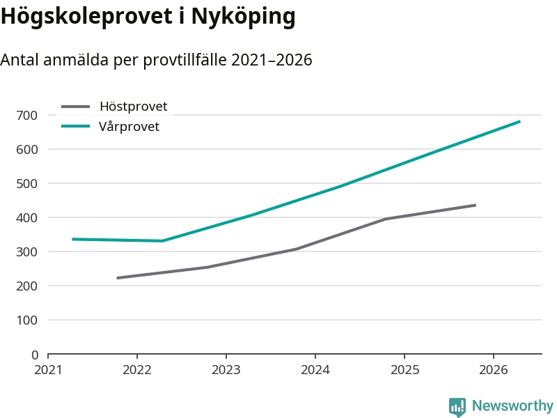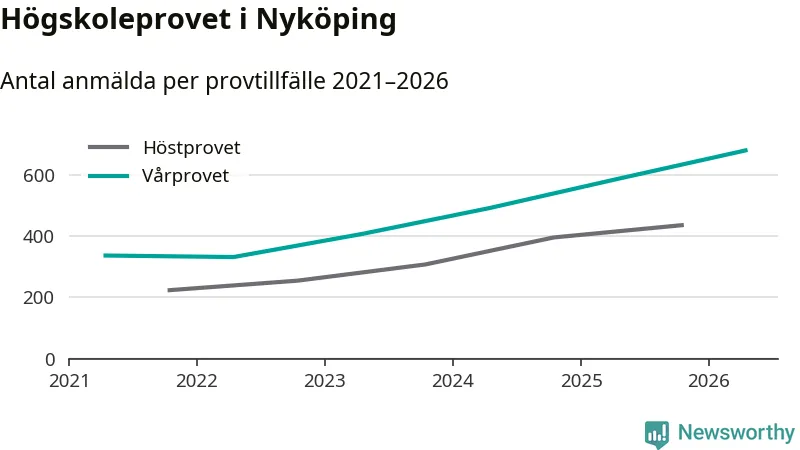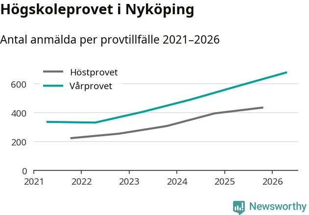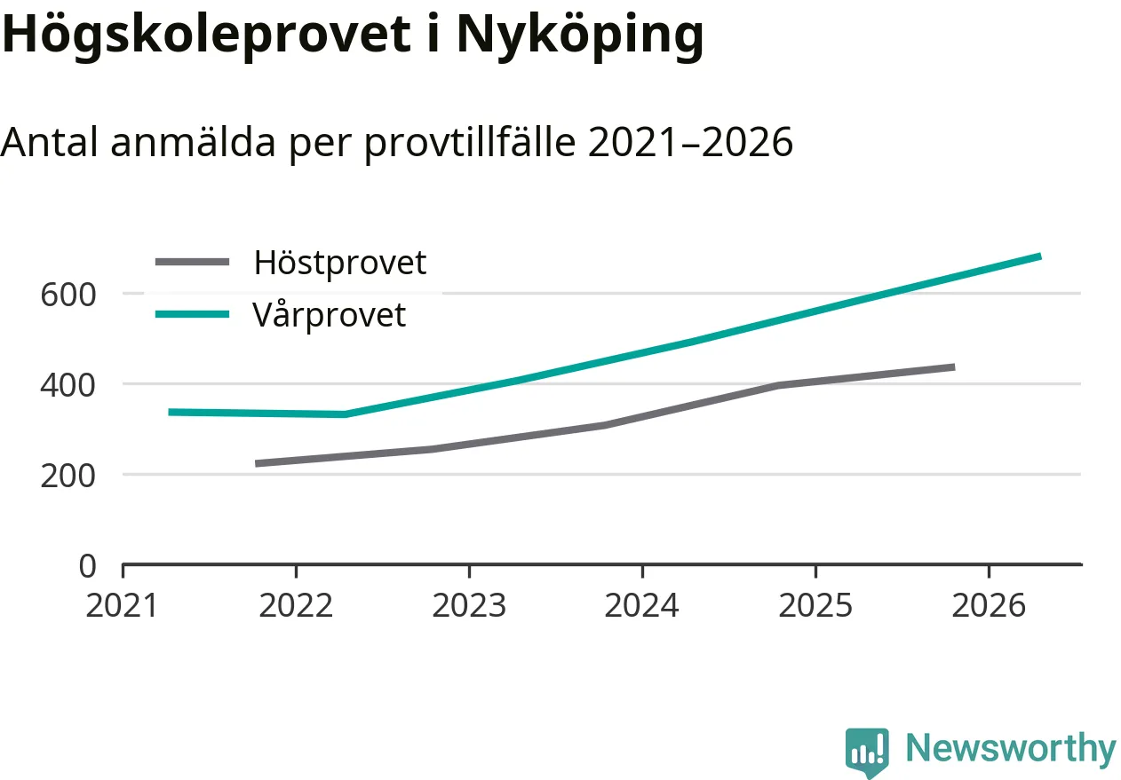 På lördag är det dags för högskoleprovet igen. Efter de begränsade provomgångarna under pandemin har antalet anmälda ökat varje år i Sverige, och i år är omkring 100 700 personer anmälda att delta någonstans i landet. För fjärde året i rad ökar antalet anmälda till vårens prov i Nyköping. På lördag är 679 personer anmälda, jämfört med 586 personer förra våren.