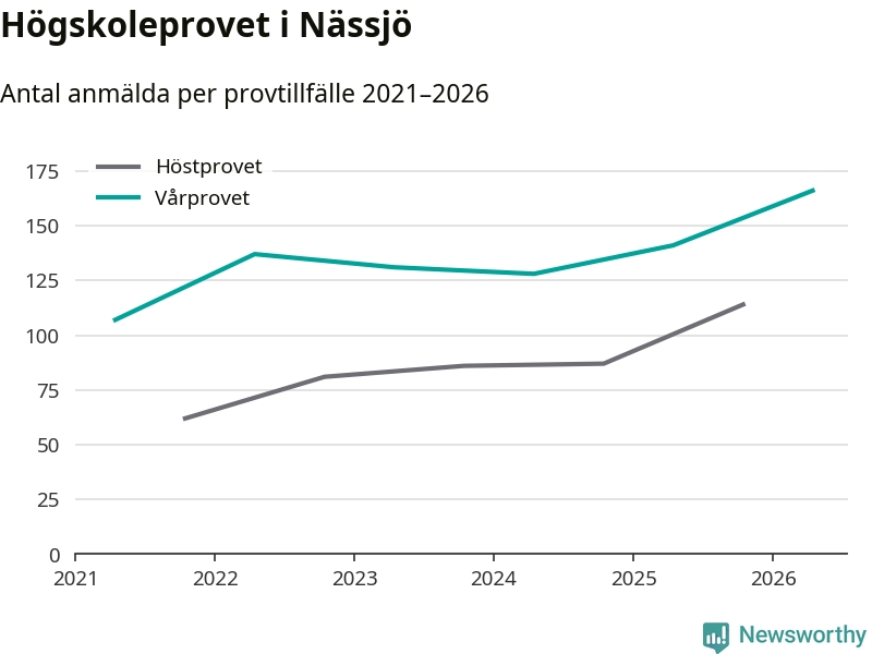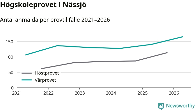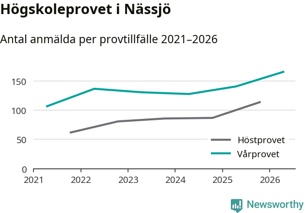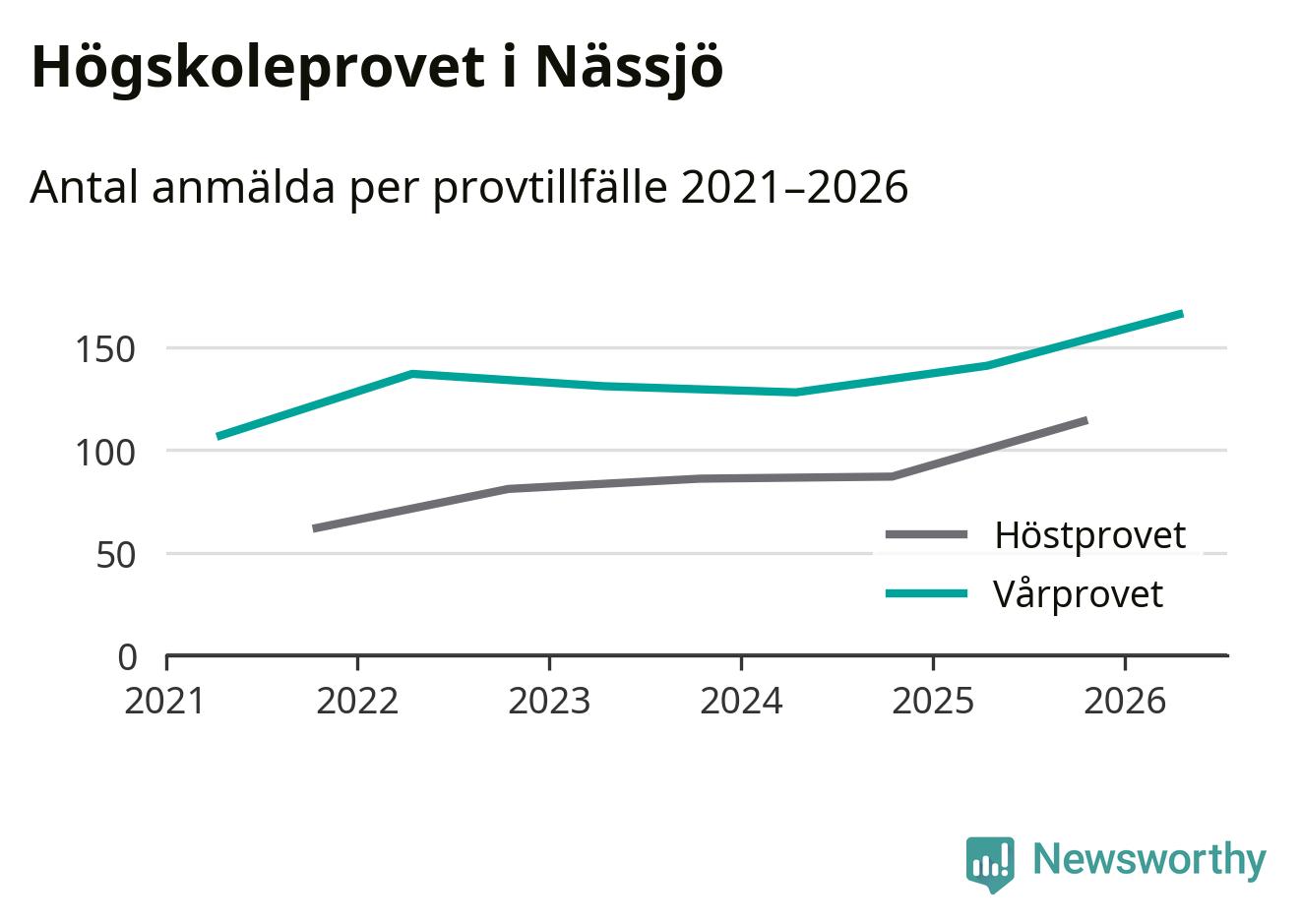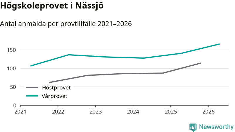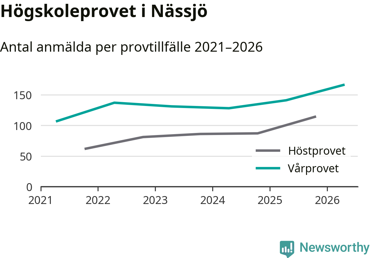 Antalet anmälda till högskoleprovet ökar stadigt. På lördag är 166 personer anmälda att skriva provet i Nässjö. Det är fler än förra våren.