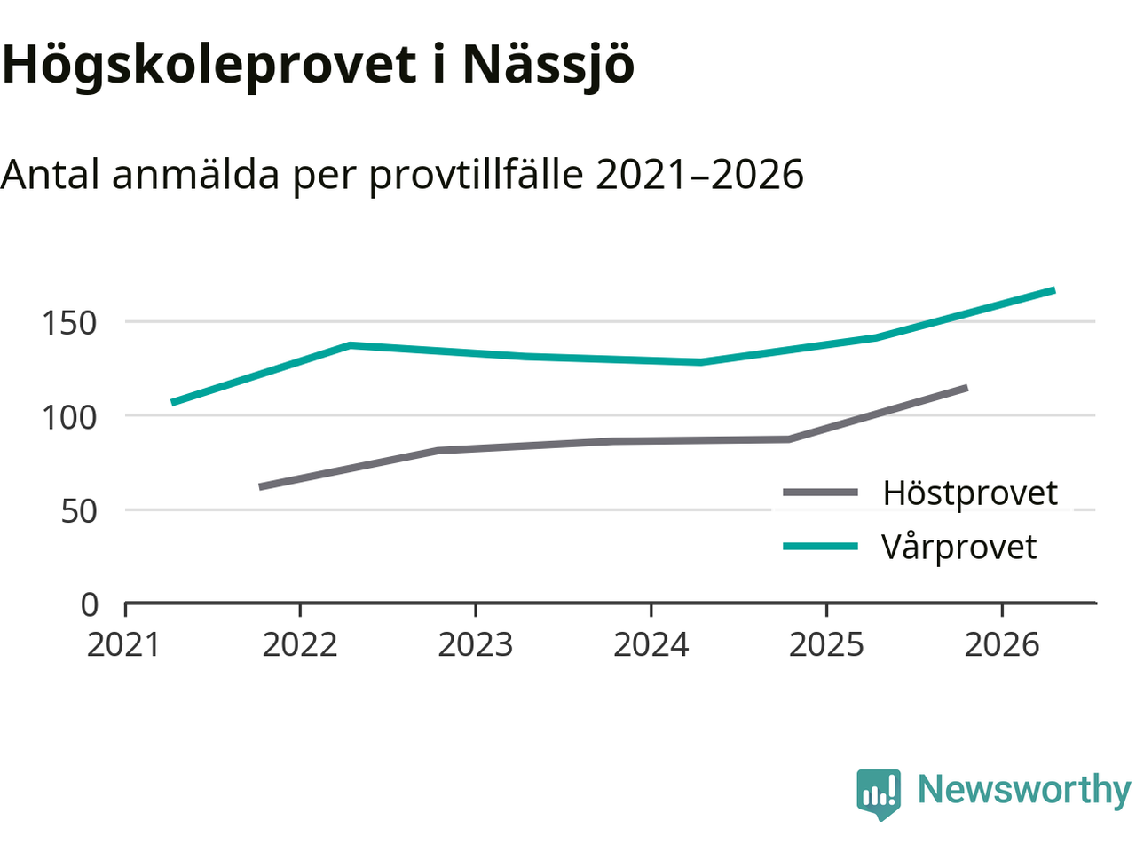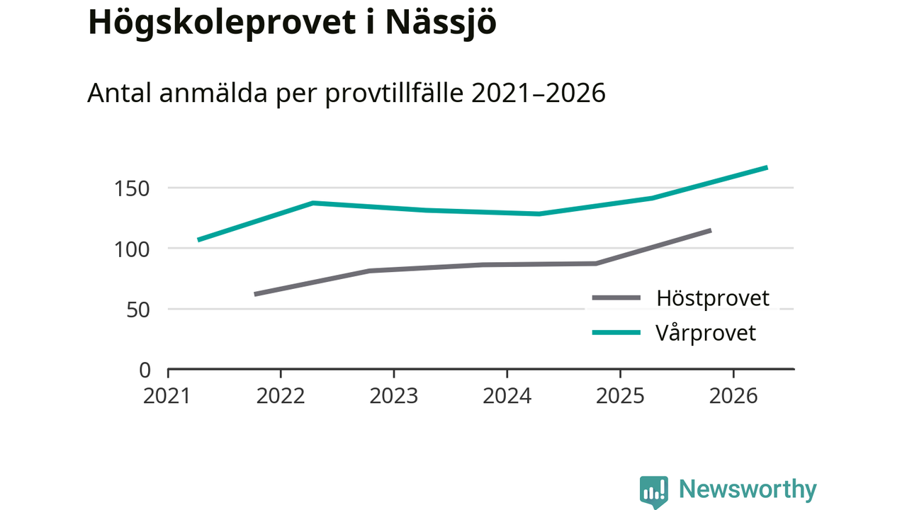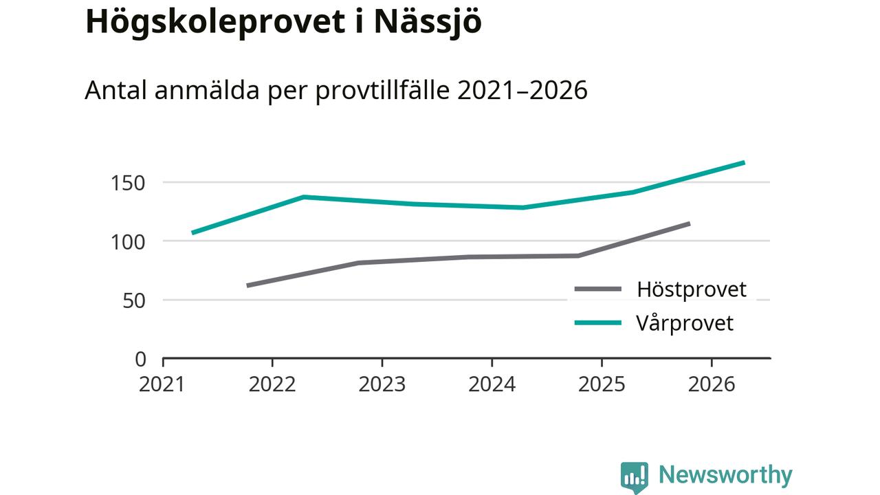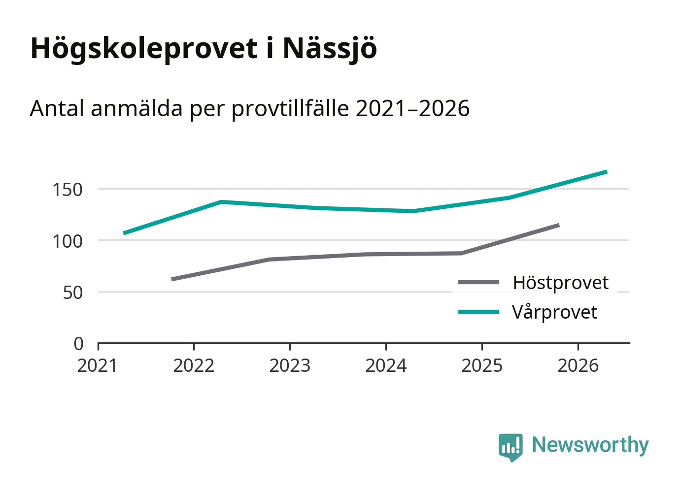 På lördag är det dags för högskoleprovet igen. Efter de begränsade provomgångarna under pandemin har antalet anmälda ökat varje år i Sverige, och i år är omkring 100 700 personer anmälda att delta någonstans i landet. På lördag är 166 personer anmälda att skriva högskoleprovet i Nässjö. Förra våren var motsvarande siffra 141 personer.