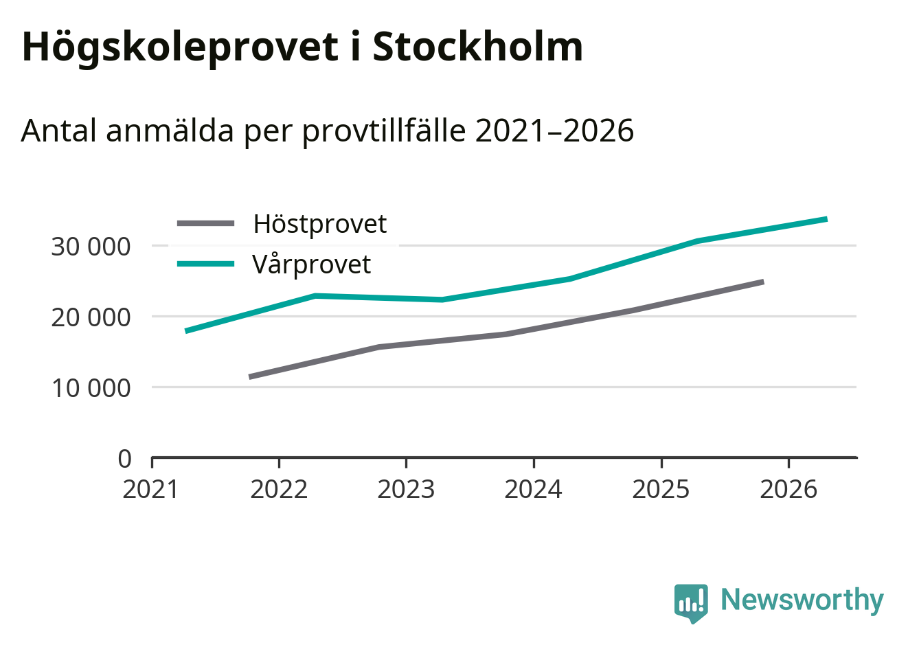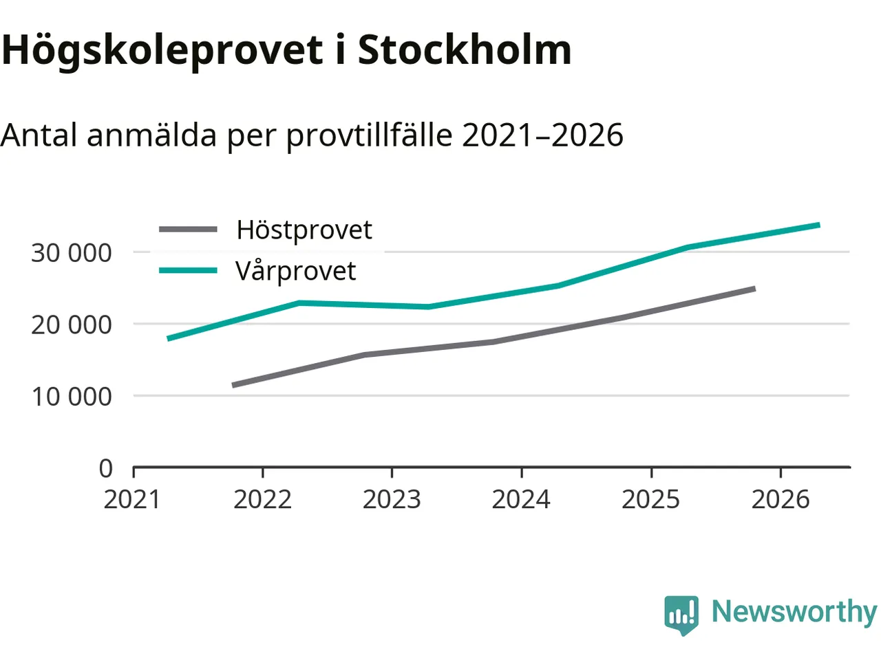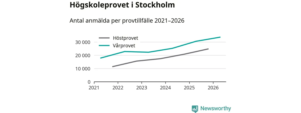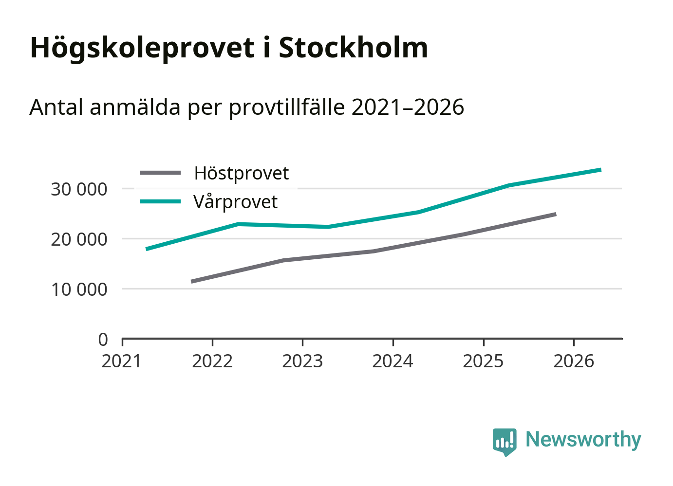 På lördag är det dags för högskoleprovet igen. Efter de begränsade provomgångarna under pandemin har antalet anmälda ökat varje år i Sverige, och i år är omkring 100 700 personer anmälda att delta någonstans i landet. För tredje året i rad ökar antalet anmälda till vårens prov vid Stockholms universitet. På lördag är 33 637 personer anmälda, jämfört med 30 570 personer förra våren.