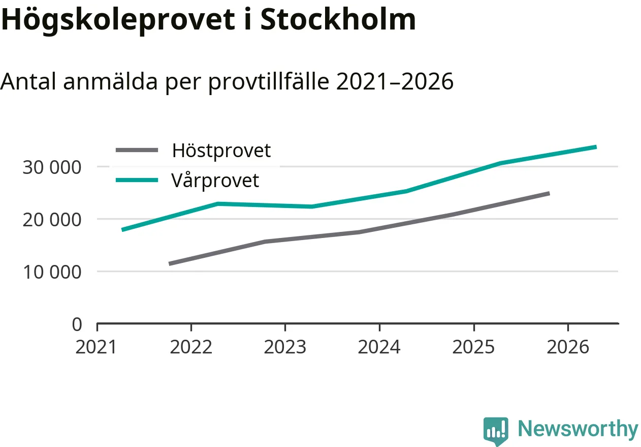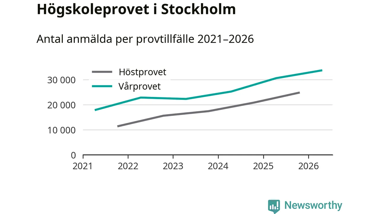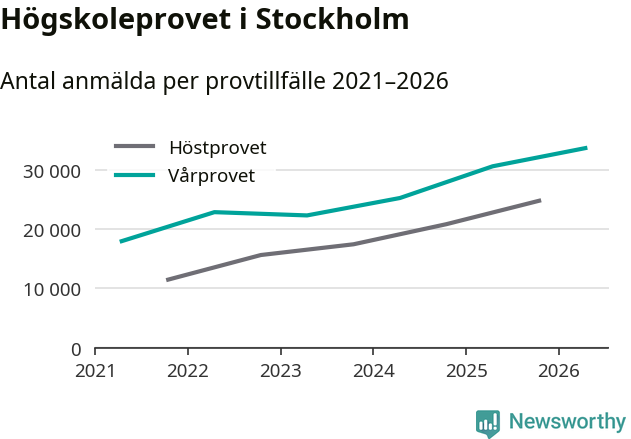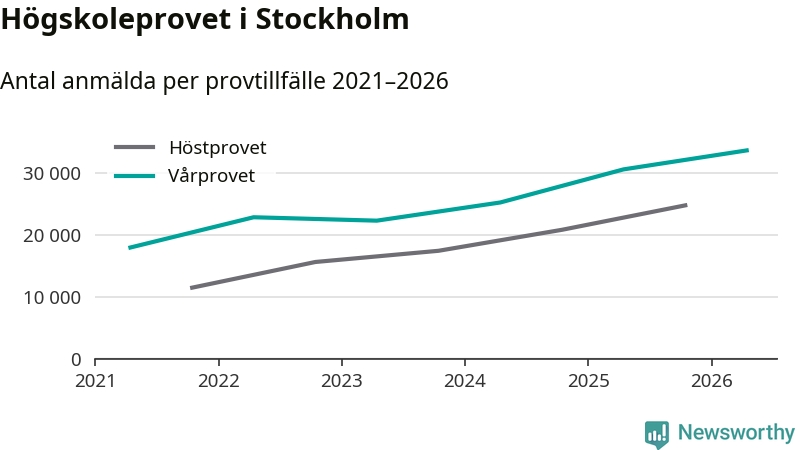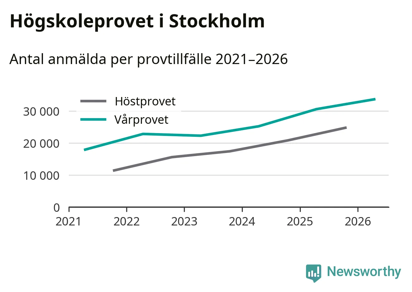 På lördag är det dags för högskoleprovet igen. Efter de begränsade provomgångarna under pandemin har antalet anmälda ökat varje år i Sverige, och i år är omkring 100 700 personer anmälda att delta någonstans i landet. För tredje året i rad ökar antalet anmälda till vårens prov vid Stockholms universitet. På lördag är 33 637 personer anmälda, jämfört med 30 570 personer förra våren.