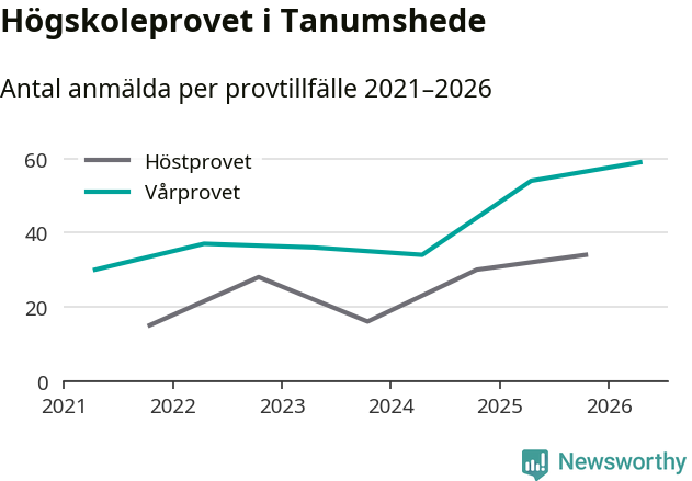På lördag är det dags för högskoleprovet igen. Efter de begränsade provomgångarna under pandemin har antalet anmälda ökat varje år i Sverige, och i år är omkring 100 700 personer anmälda att delta någonstans i landet. På lördag är 59 personer anmälda att skriva högskoleprovet i Tanumshede. Förra våren var motsvarande siffra 54 personer.