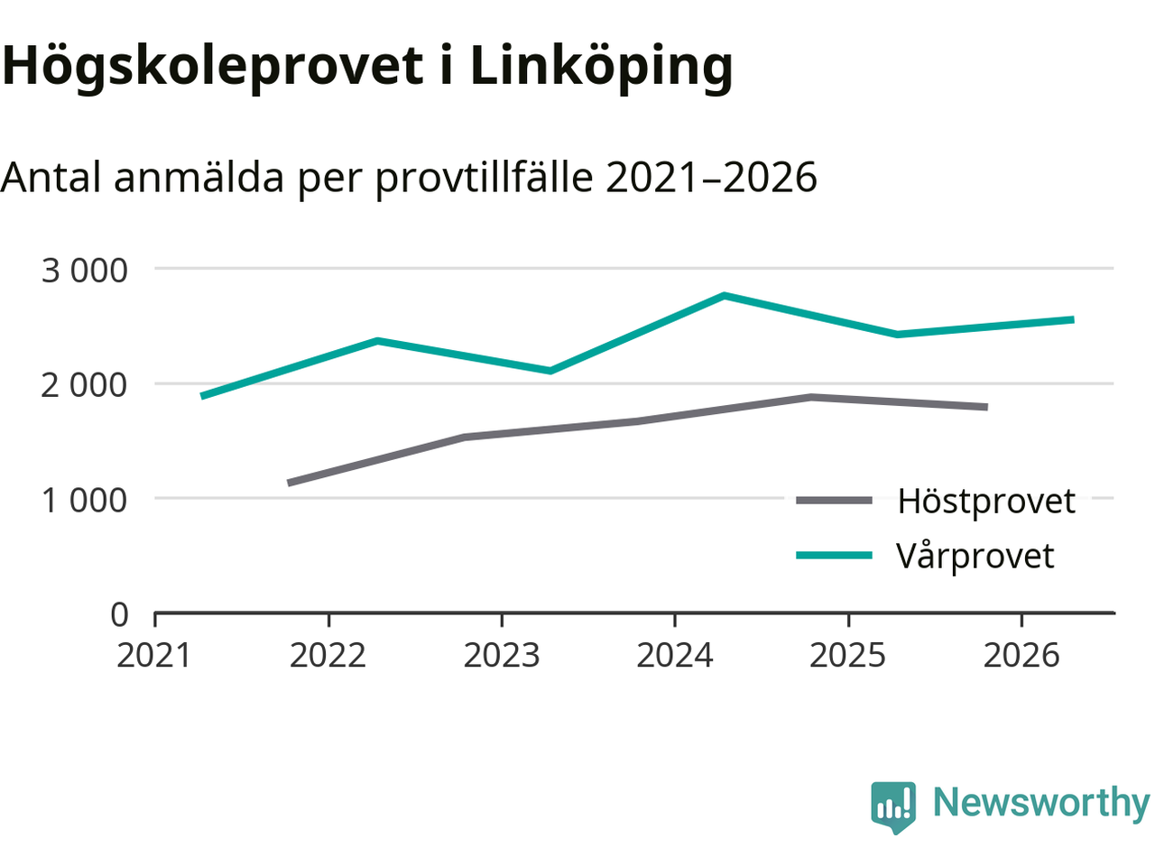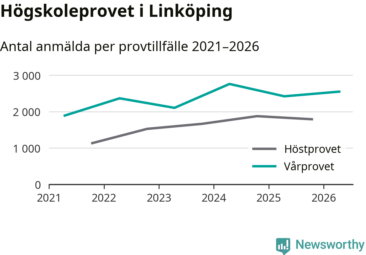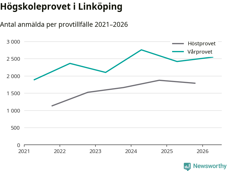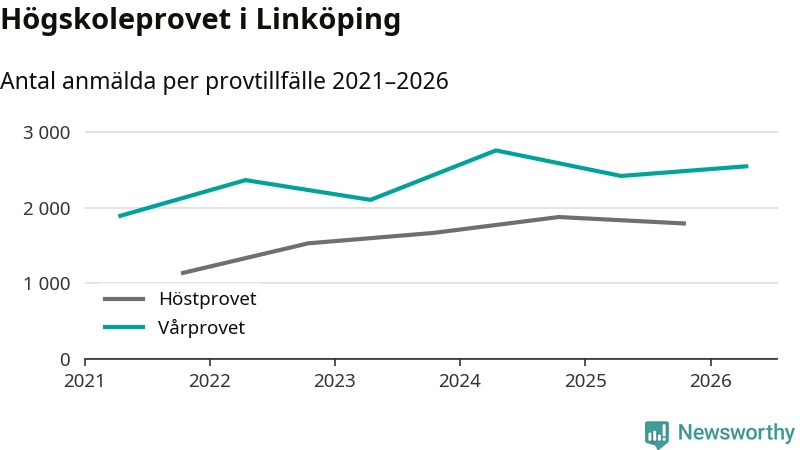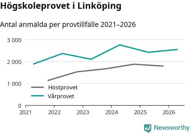 Antalet anmälda till högskoleprovet ökar stadigt. På lördag är 2 550 personer anmälda att skriva provet i Linköping. Det är fler än förra våren.
