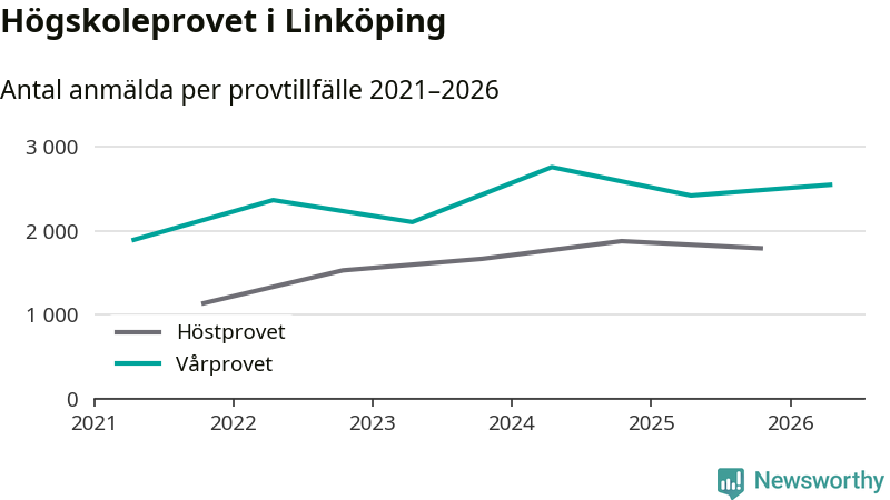 På lördag är det dags för högskoleprovet igen. Efter de begränsade provomgångarna under pandemin har antalet anmälda ökat varje år i Sverige, och i år är omkring 100 700 personer anmälda att delta någonstans i landet. På lördag är 2 550 personer anmälda att skriva högskoleprovet i Linköping. Förra våren var motsvarande siffra 2 422 personer.