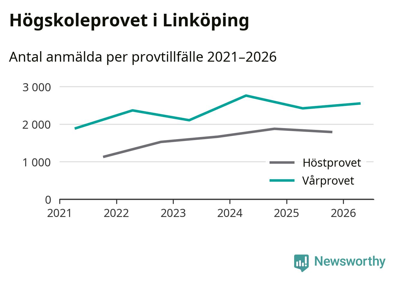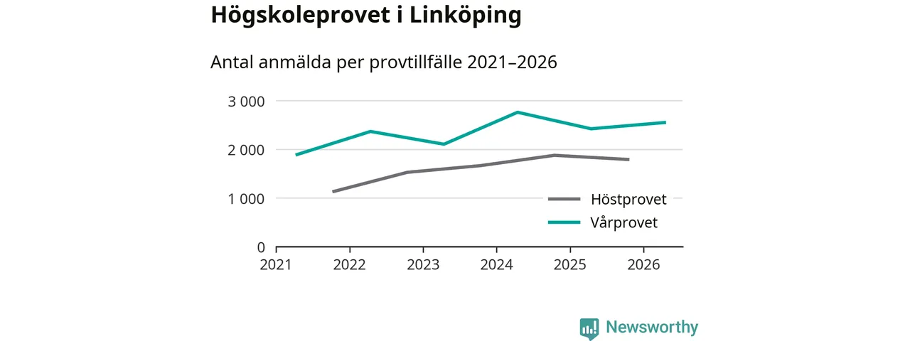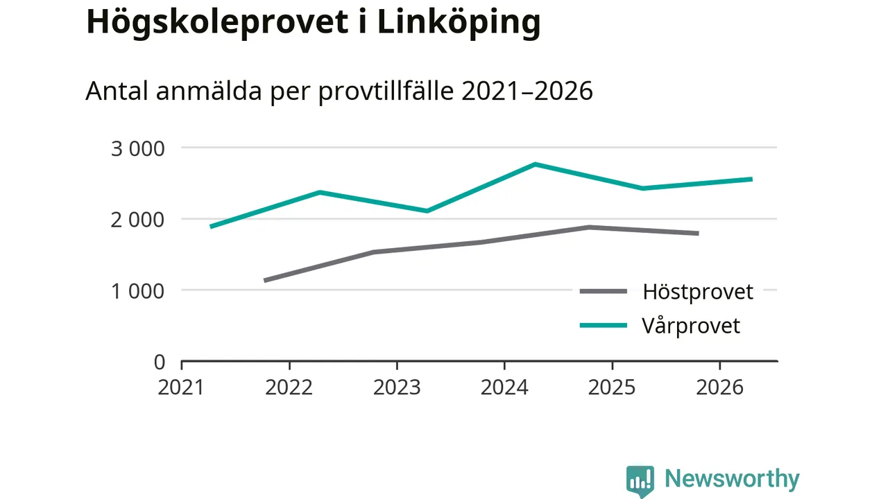 Anmälda till högskoleprovet i Östergötlands län våren 2026