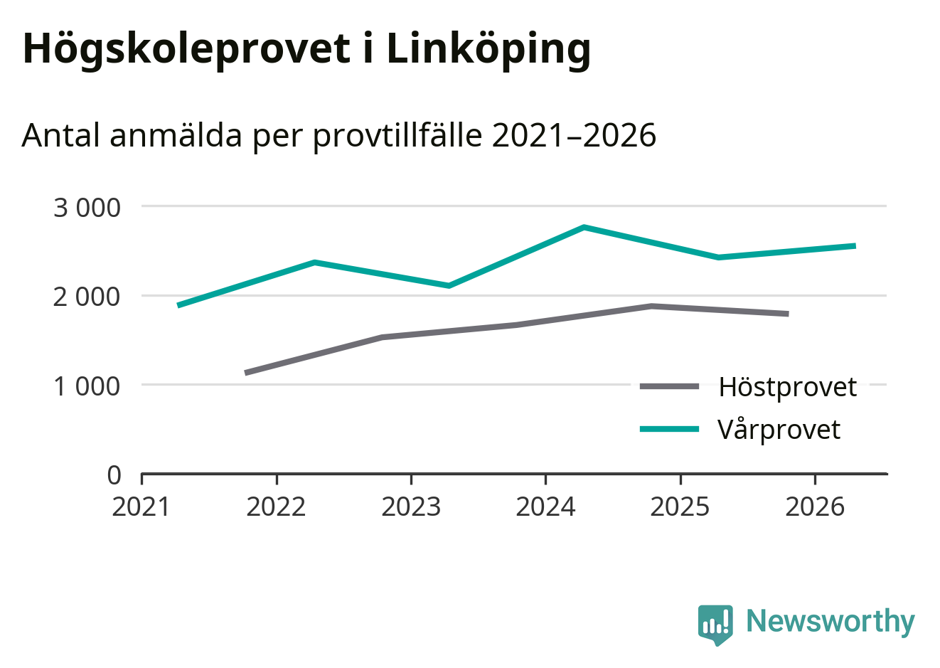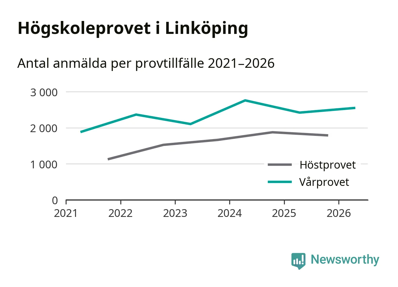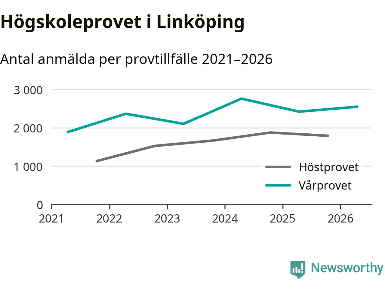 Anmälda till högskoleprovet i Östergötlands län våren 2026