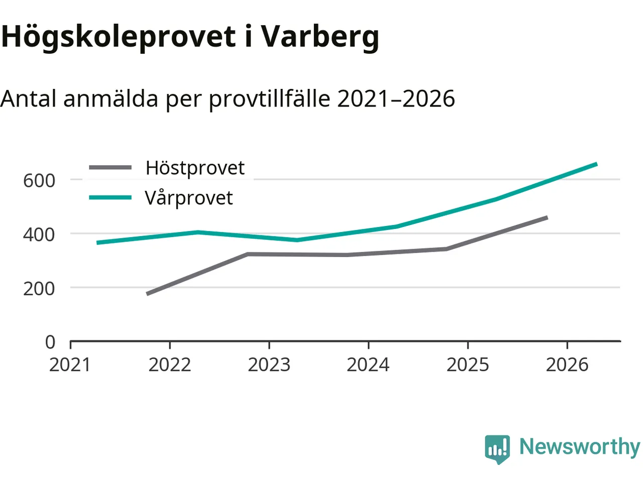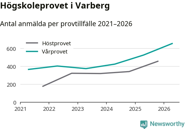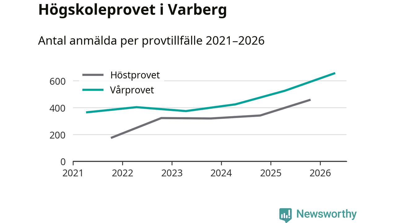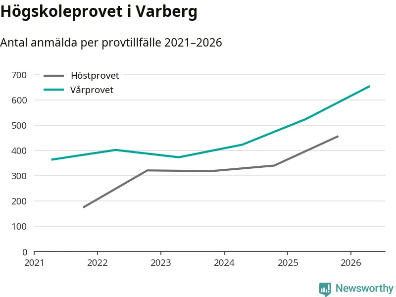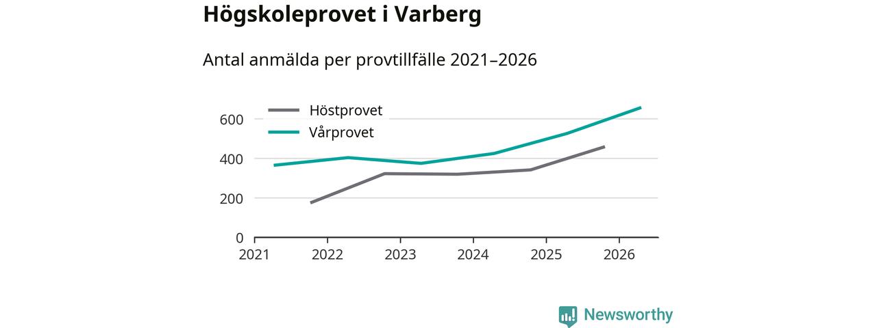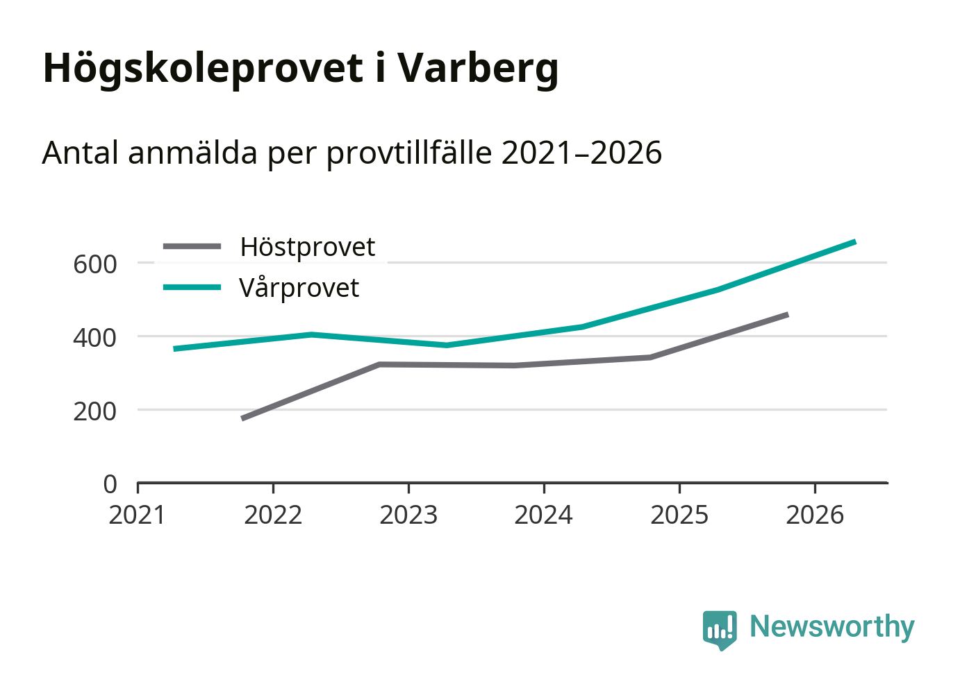 På lördag är det dags för högskoleprovet igen. Efter de begränsade provomgångarna under pandemin har antalet anmälda ökat varje år i Sverige, och i år är omkring 100 700 personer anmälda att delta någonstans i landet. För tredje året i rad ökar antalet anmälda till vårens prov i Varberg. På lördag är 654 personer anmälda, jämfört med 525 personer förra våren.