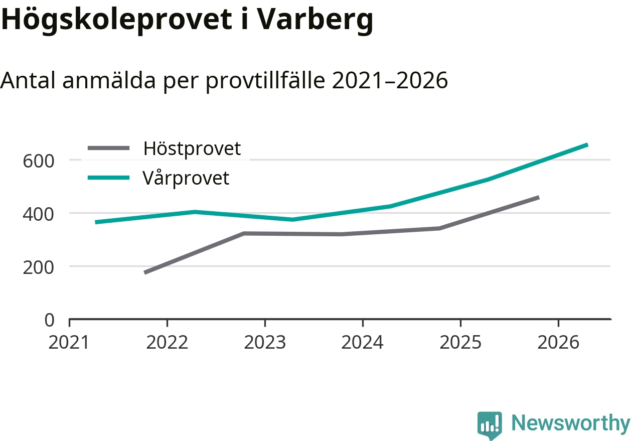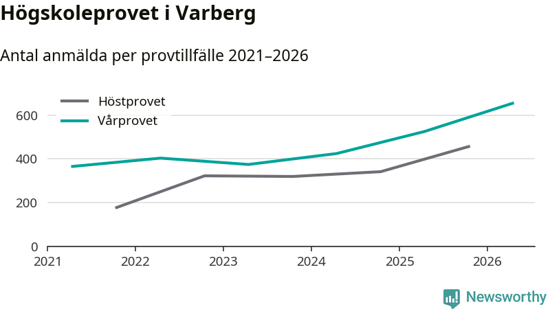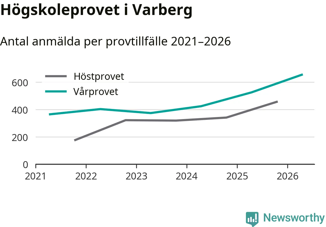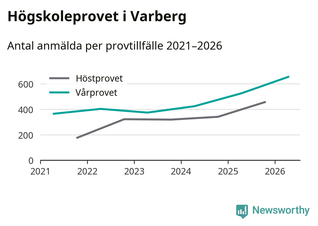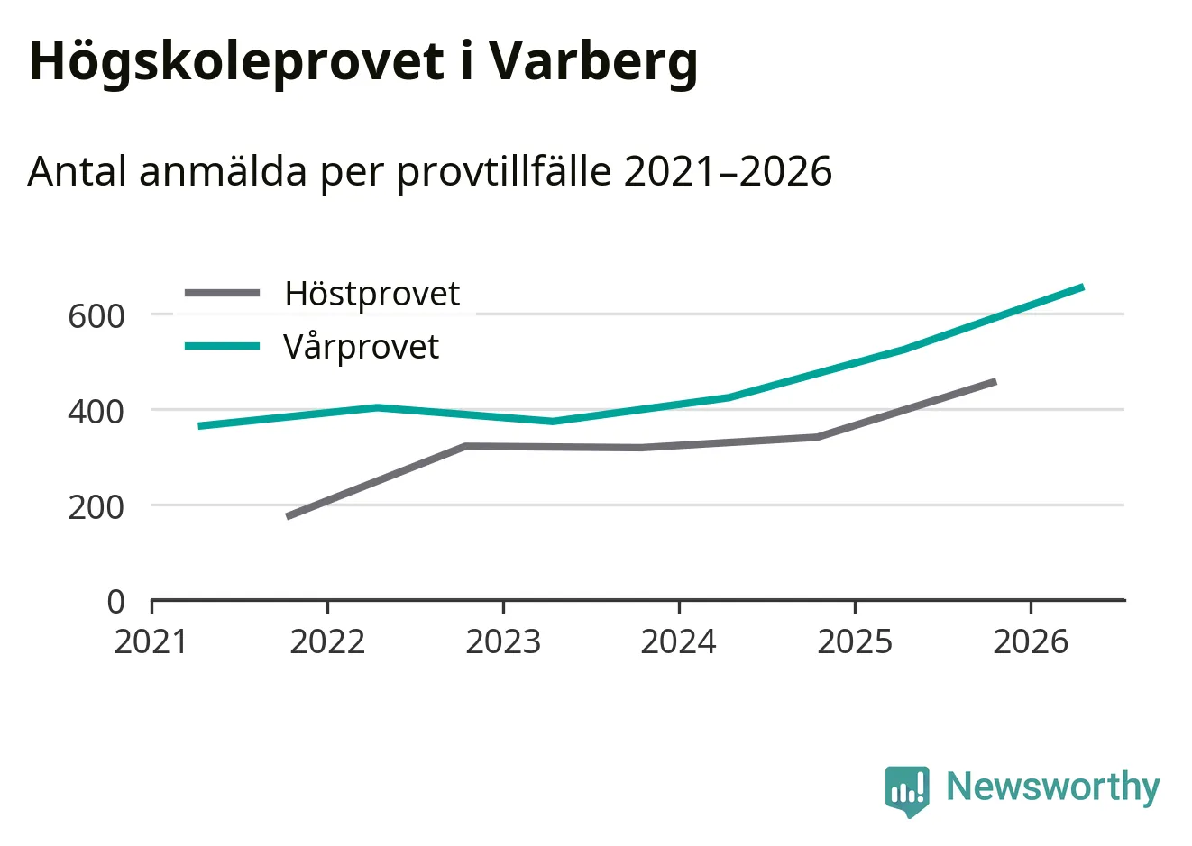 På lördag är det dags för högskoleprovet igen. Efter de begränsade provomgångarna under pandemin har antalet anmälda ökat varje år i Sverige, och i år är omkring 100 700 personer anmälda att delta någonstans i landet. För tredje året i rad ökar antalet anmälda till vårens prov i Varberg. På lördag är 654 personer anmälda, jämfört med 525 personer förra våren.