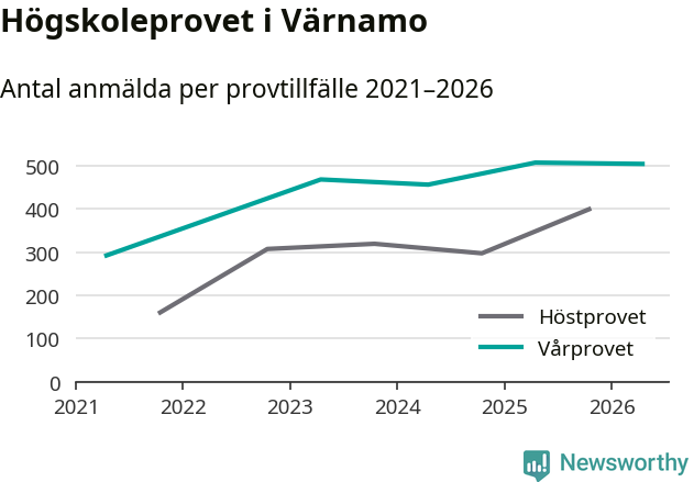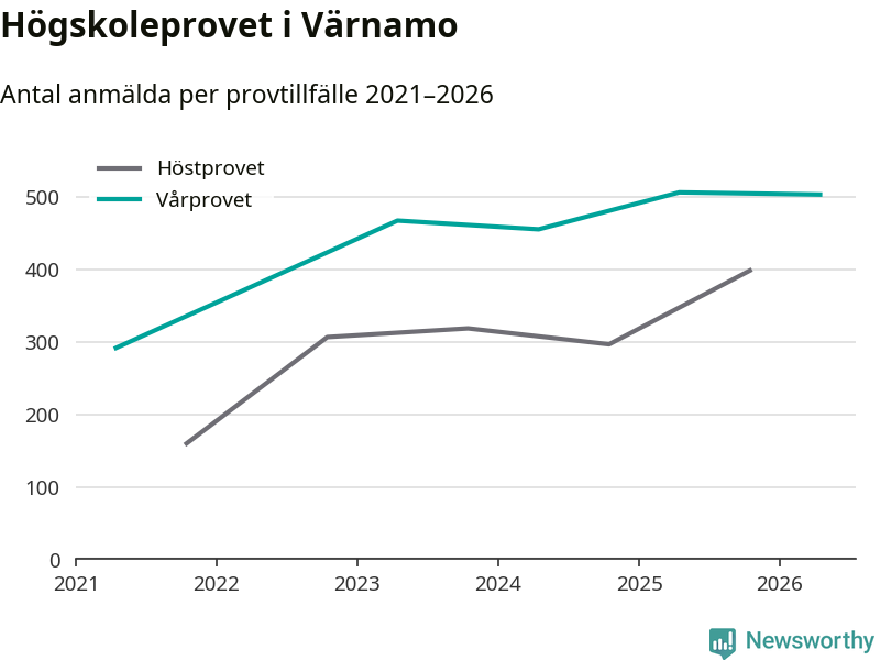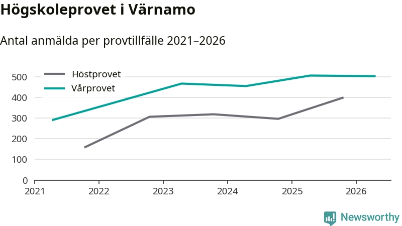 På lördag är det dags för högskoleprovet igen. Efter de begränsade provomgångarna under pandemin har antalet anmälda ökat varje år i Sverige, och i år är omkring 100 700 personer anmälda att delta någonstans i landet. På lördag är 504 personer anmälda att skriva högskoleprovet i Värnamo. Förra våren var motsvarande siffra 507 personer.