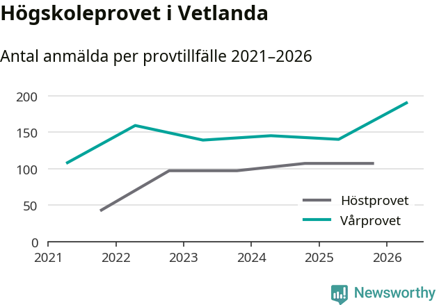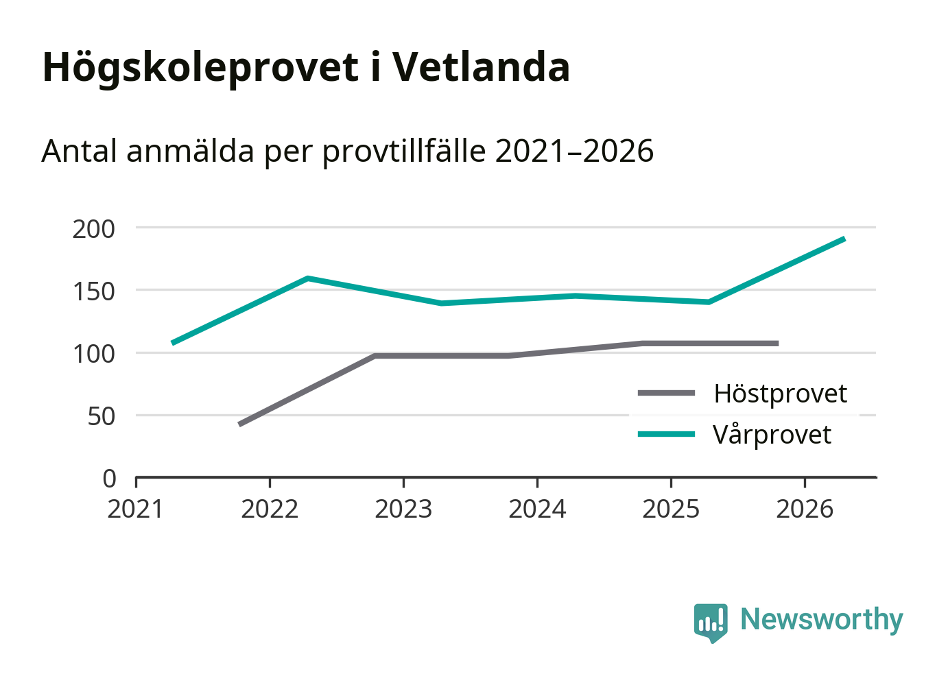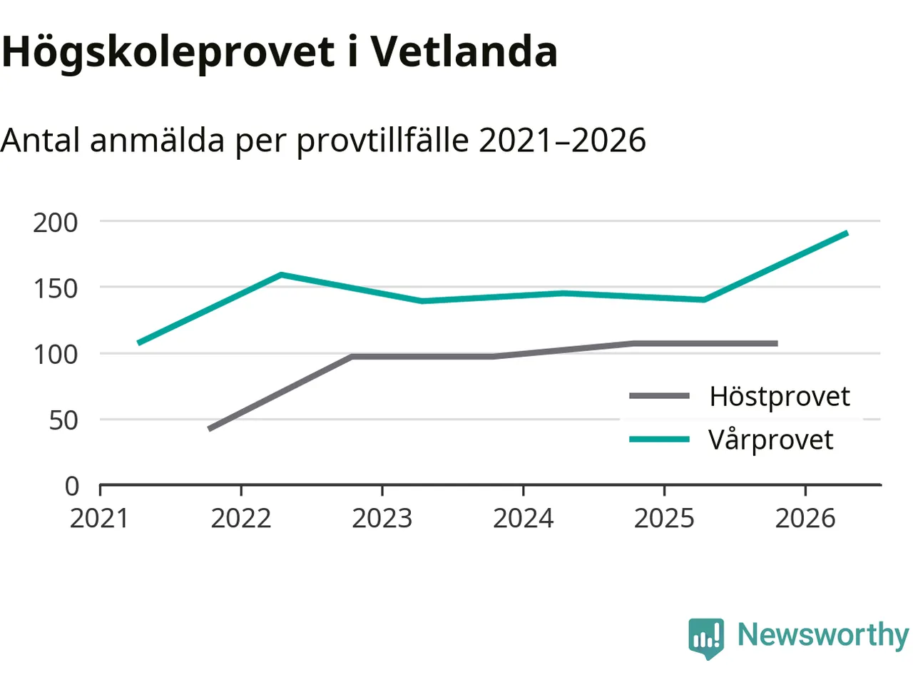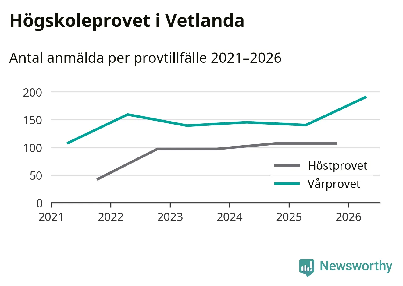 På lördag är det dags för högskoleprovet igen. Efter de begränsade provomgångarna under pandemin har antalet anmälda ökat varje år i Sverige, och i år är omkring 100 700 personer anmälda att delta någonstans i landet. På lördag är 190 personer anmälda att skriva högskoleprovet i Vetlanda. Förra våren var motsvarande siffra 140 personer.