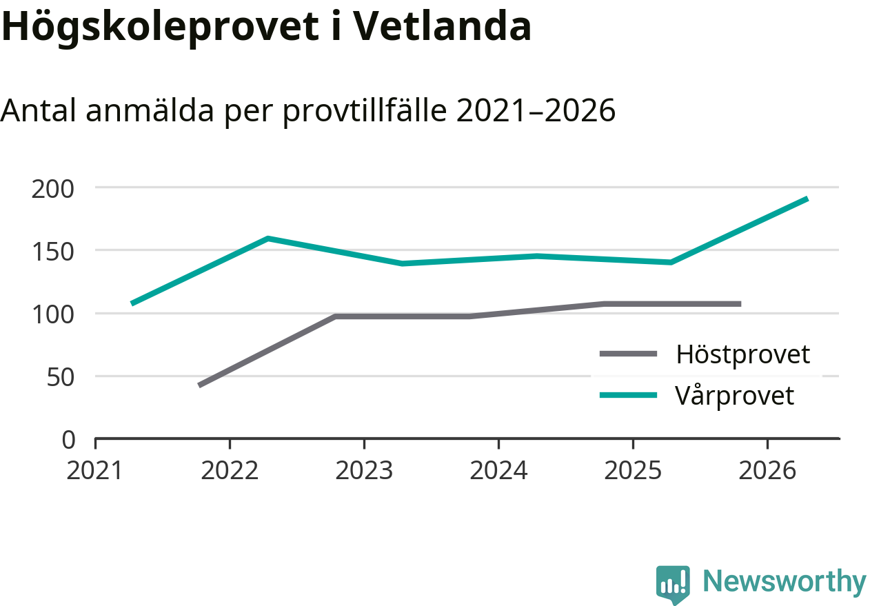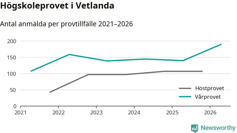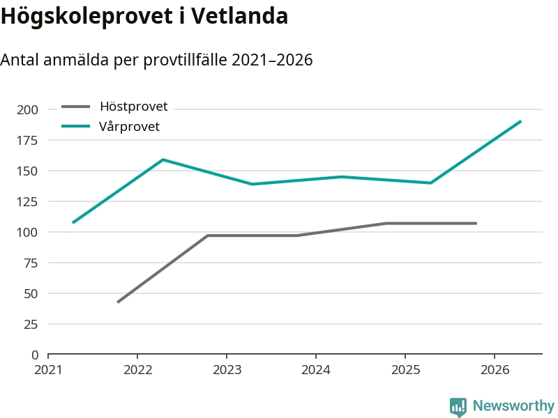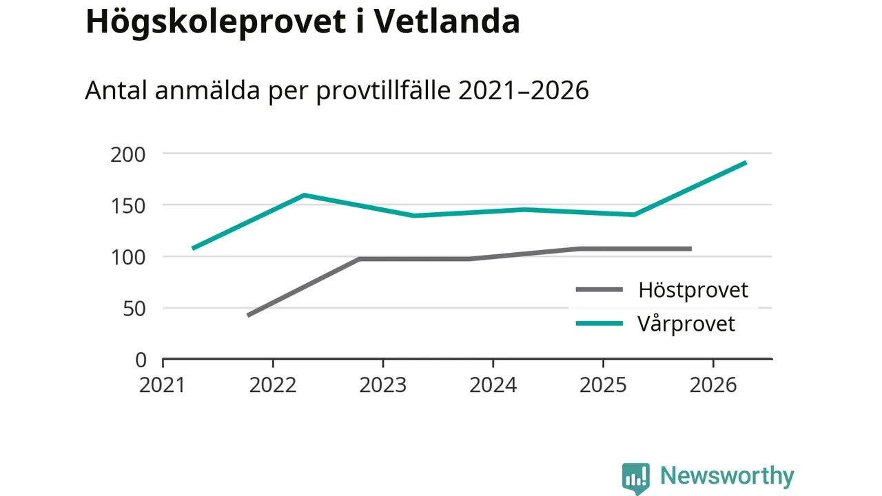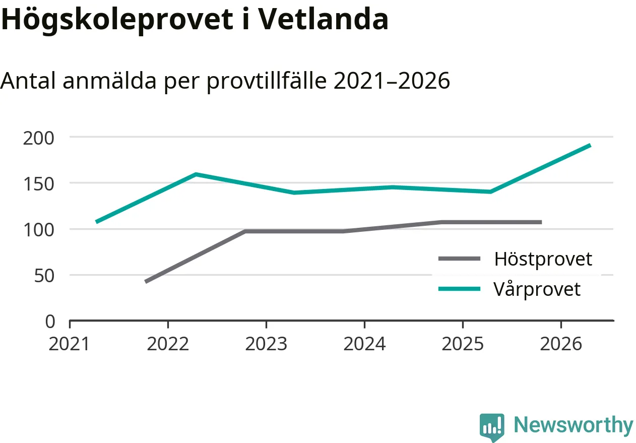 På lördag är det dags för högskoleprovet igen. Efter de begränsade provomgångarna under pandemin har antalet anmälda ökat varje år i Sverige, och i år är omkring 100 700 personer anmälda att delta någonstans i landet. På lördag är 190 personer anmälda att skriva högskoleprovet i Vetlanda. Förra våren var motsvarande siffra 140 personer.