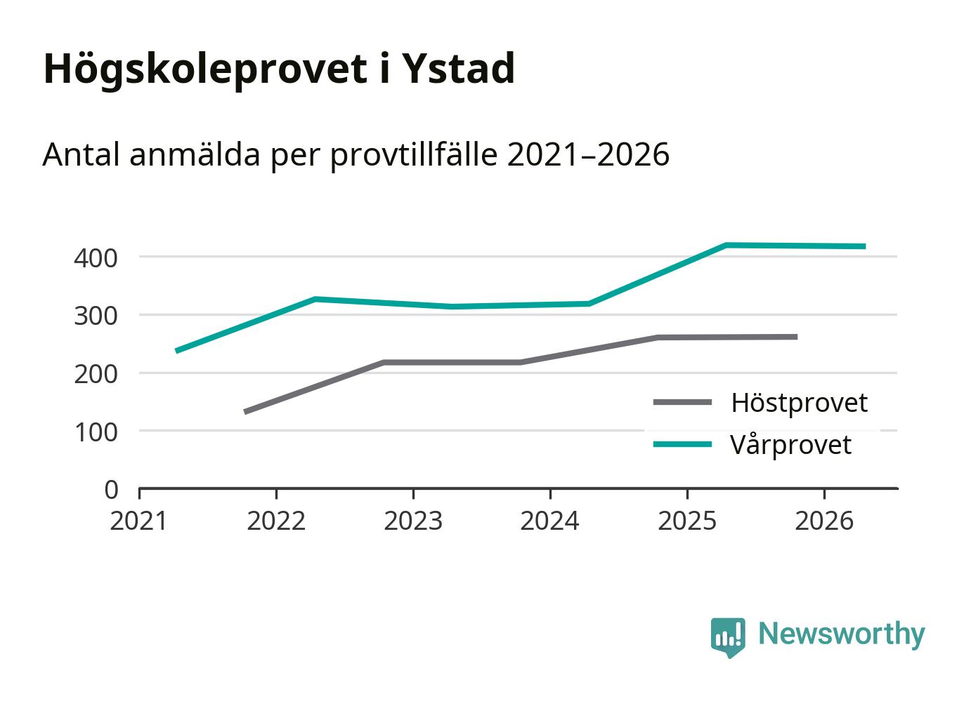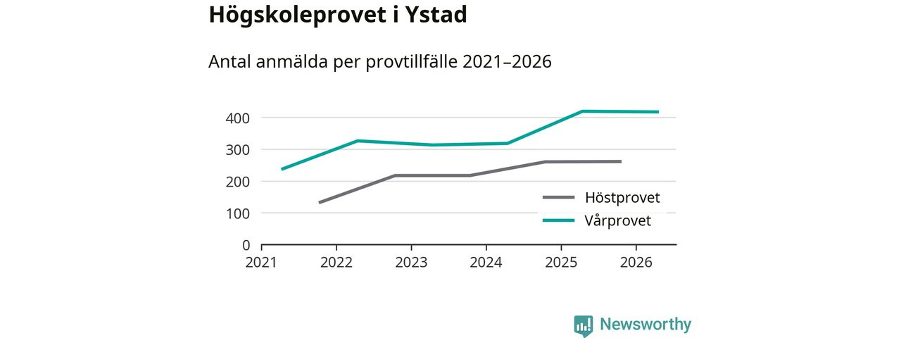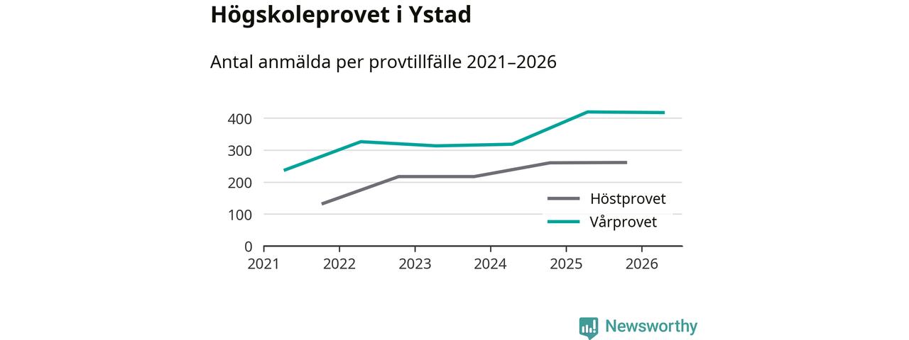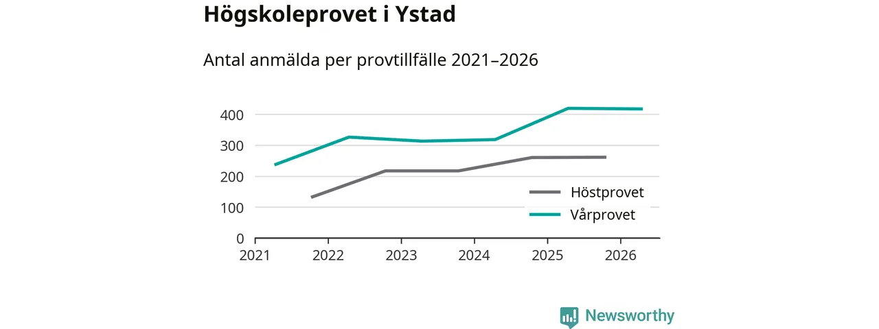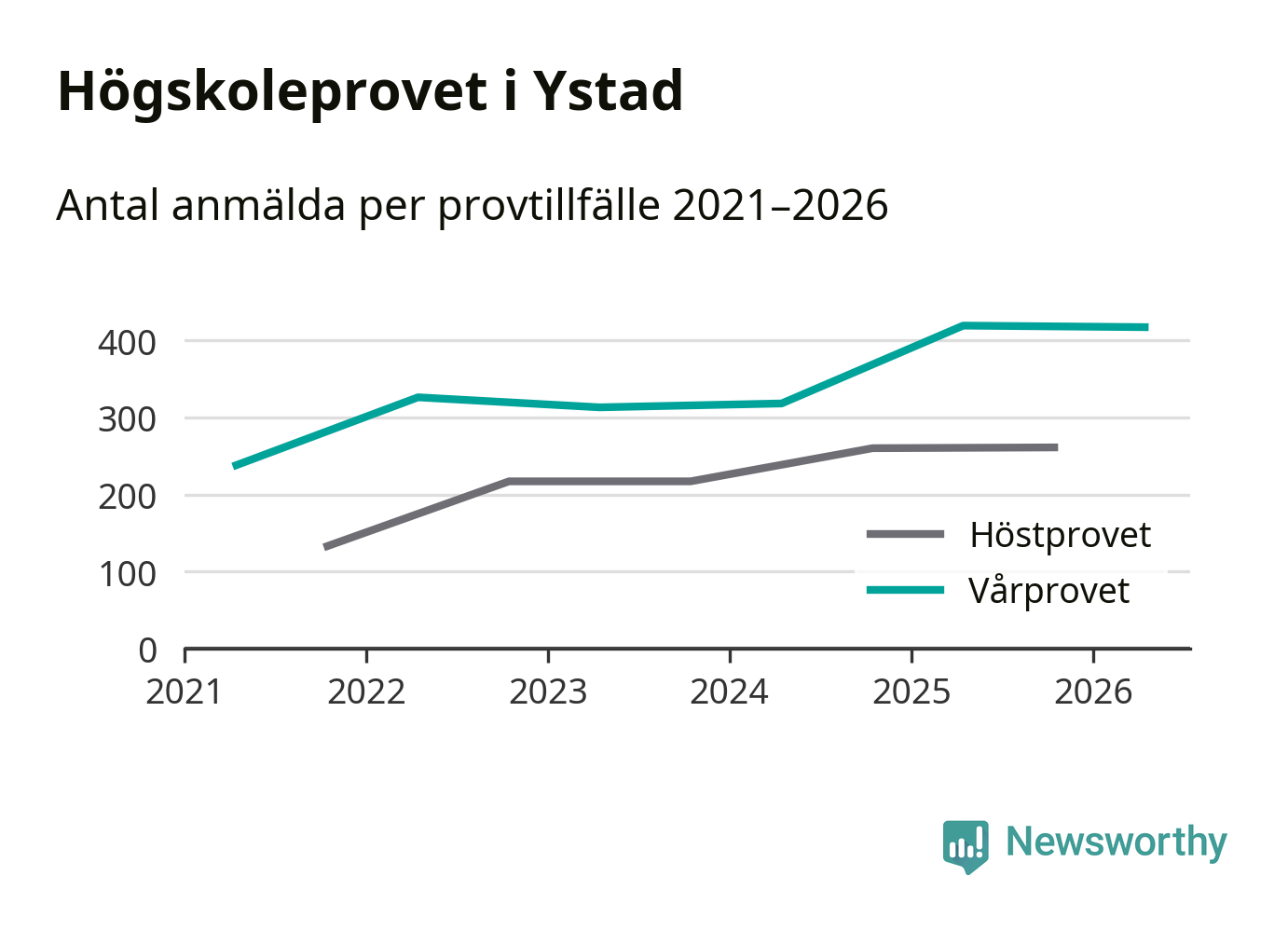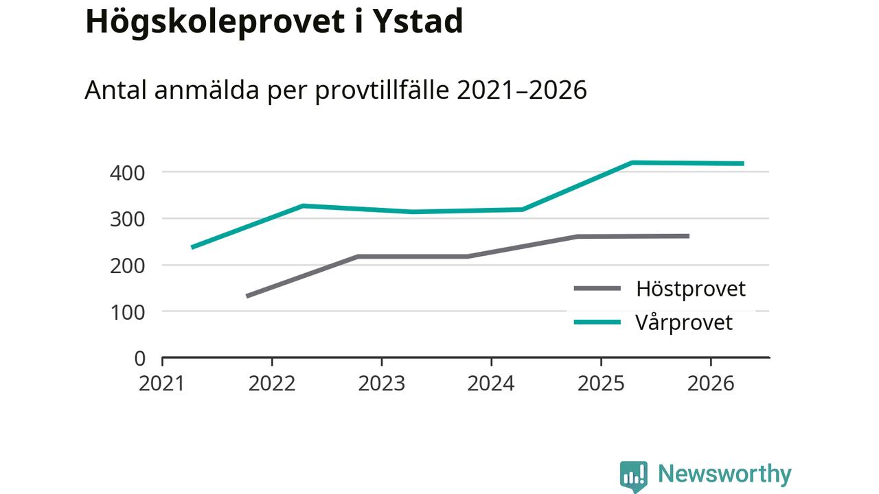 På lördag är det dags för högskoleprovet igen. Efter de begränsade provomgångarna under pandemin har antalet anmälda ökat varje år i Sverige, och i år är omkring 100 700 personer anmälda att delta någonstans i landet. På lördag är 417 personer anmälda att skriva högskoleprovet i Ystad. Förra våren var motsvarande siffra 419 personer.