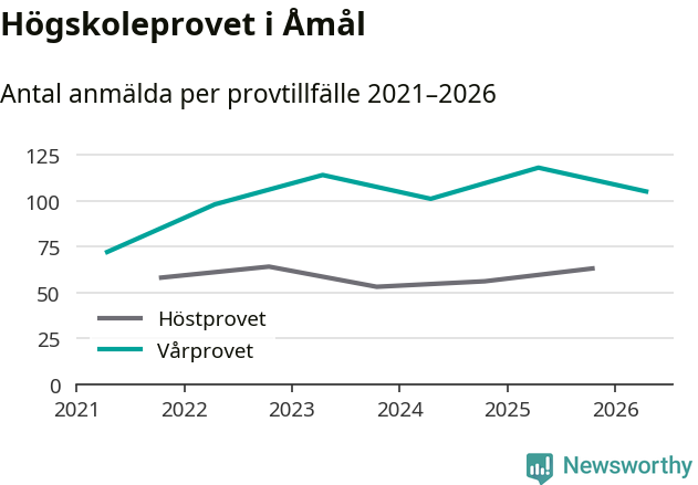 På lördag är det dags för högskoleprovet igen. Efter de begränsade provomgångarna under pandemin har antalet anmälda ökat varje år i Sverige, och i år är omkring 100 700 personer anmälda att delta någonstans i landet. På lördag är 105 personer anmälda att skriva högskoleprovet i Åmål. Förra våren var motsvarande siffra 118 personer.