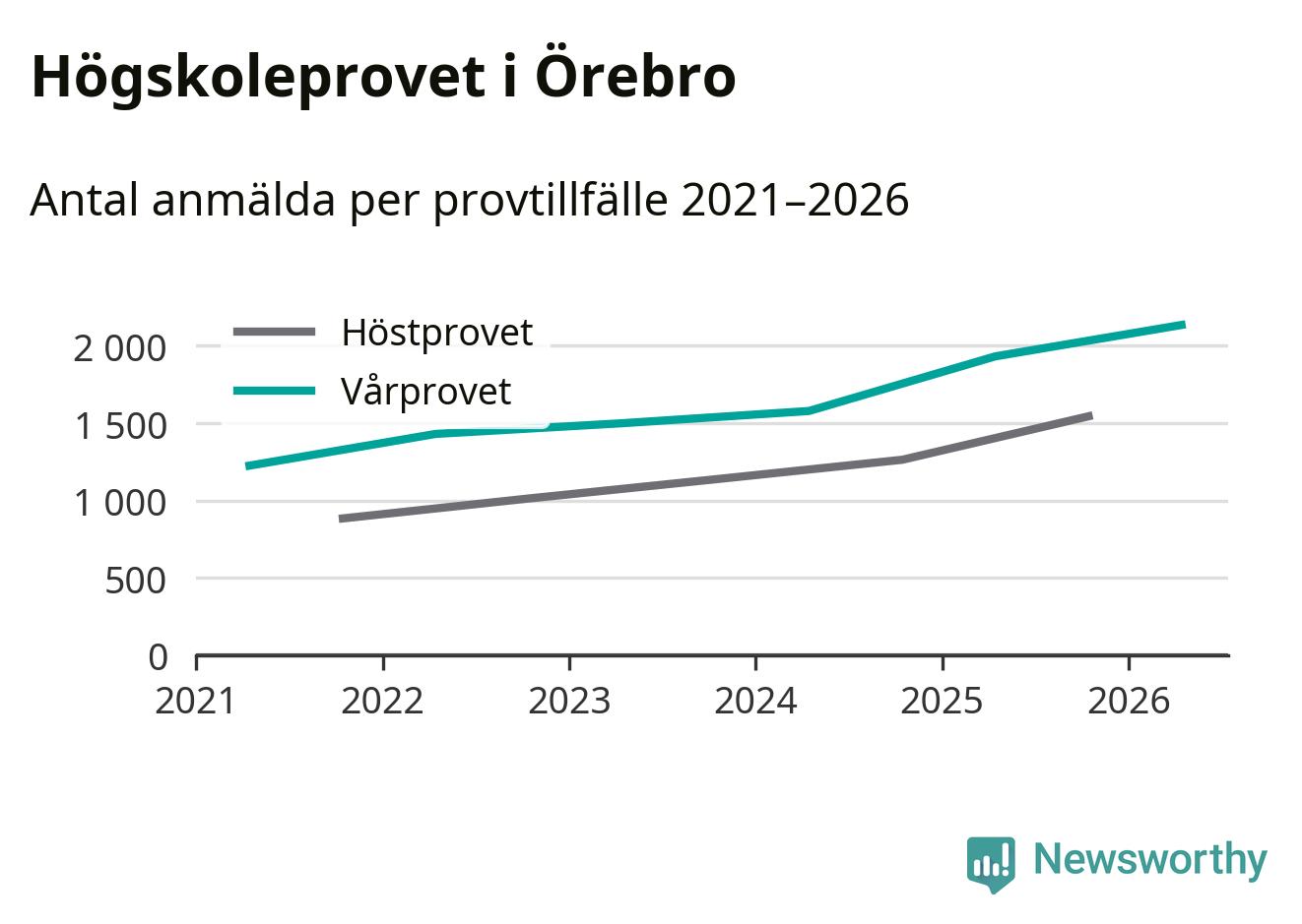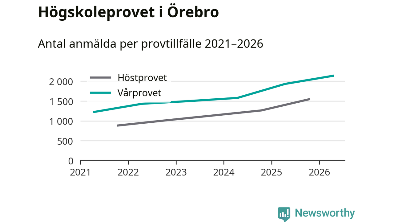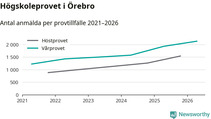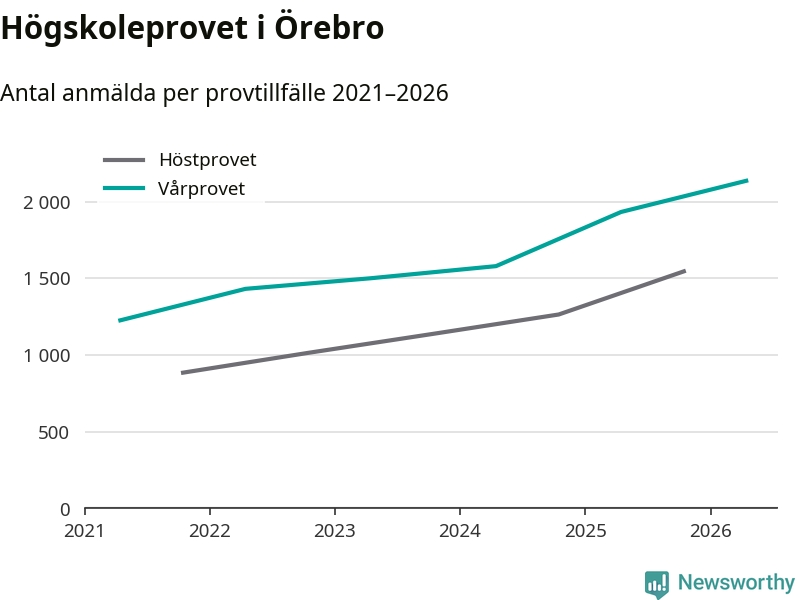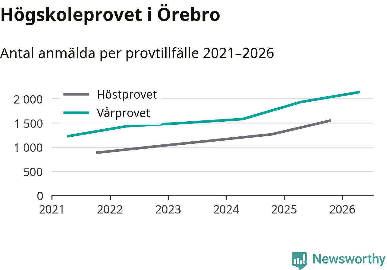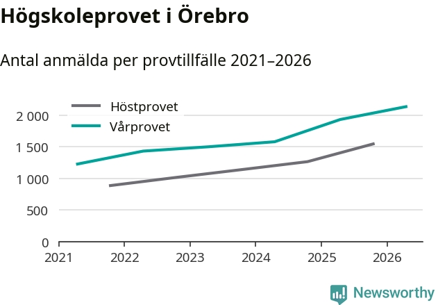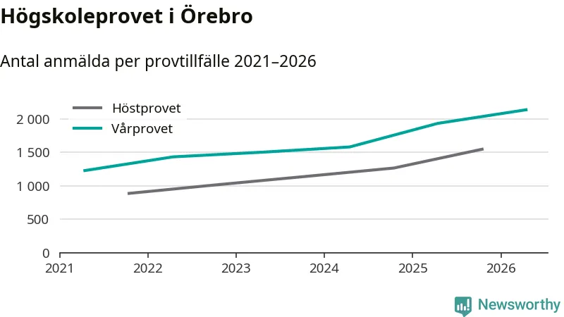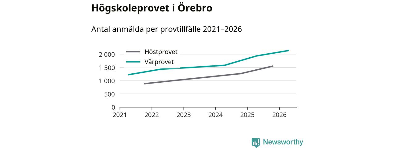 På lördag är det dags för högskoleprovet igen. Efter de begränsade provomgångarna under pandemin har antalet anmälda ökat varje år i Sverige, och i år är omkring 100 700 personer anmälda att delta någonstans i landet. För femte året i rad ökar antalet anmälda till vårens prov i Örebro. På lördag är 2 135 personer anmälda, jämfört med 1 932 personer förra våren.