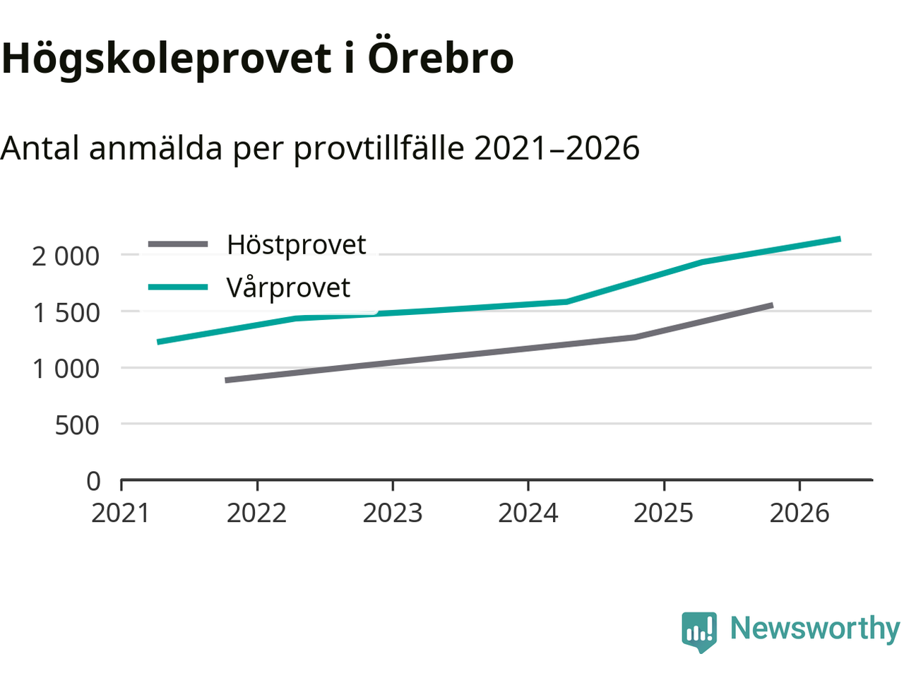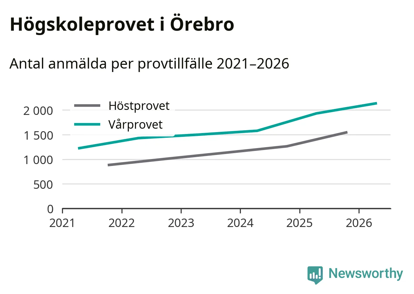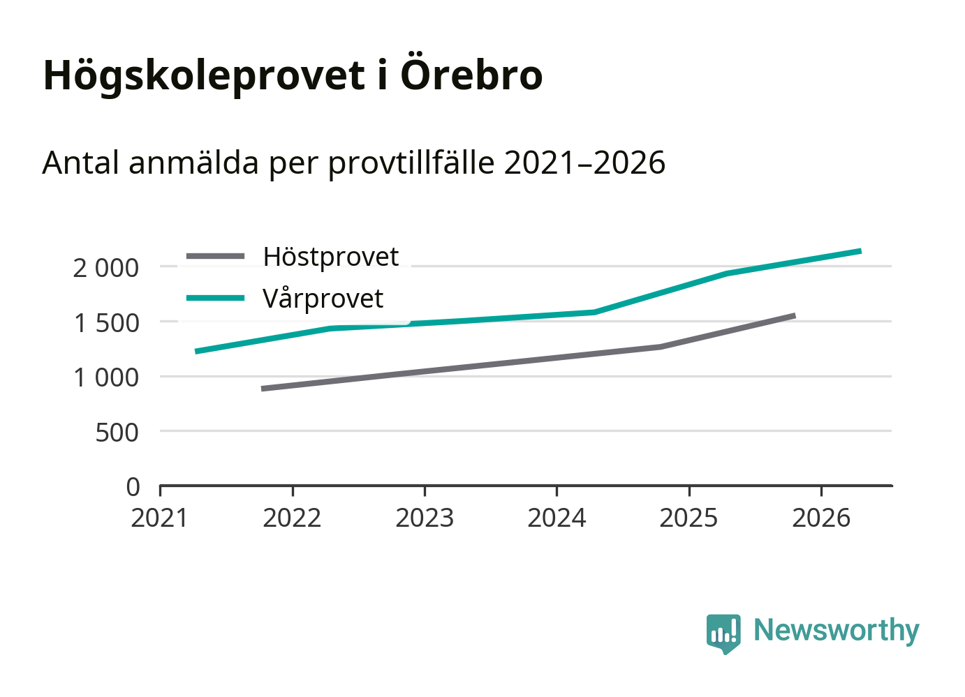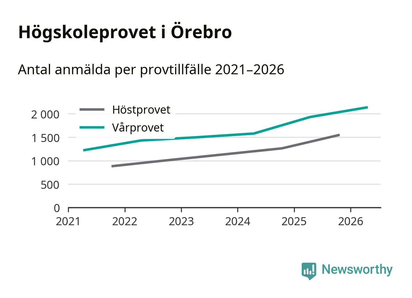 På lördag är det dags för högskoleprovet igen. Efter de begränsade provomgångarna under pandemin har antalet anmälda ökat varje år i Sverige, och i år är omkring 100 700 personer anmälda att delta någonstans i landet. För femte året i rad ökar antalet anmälda till vårens prov i Örebro. På lördag är 2 135 personer anmälda, jämfört med 1 932 personer förra våren.