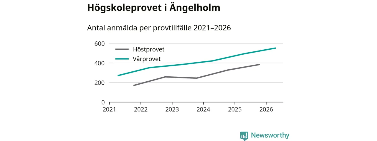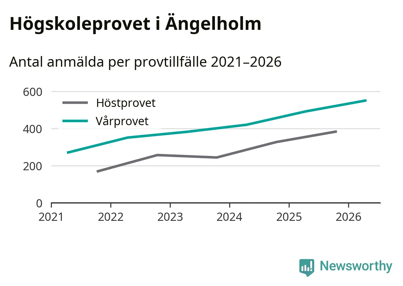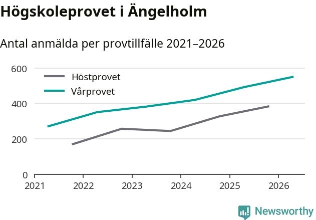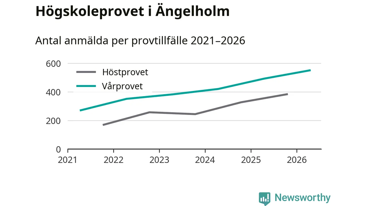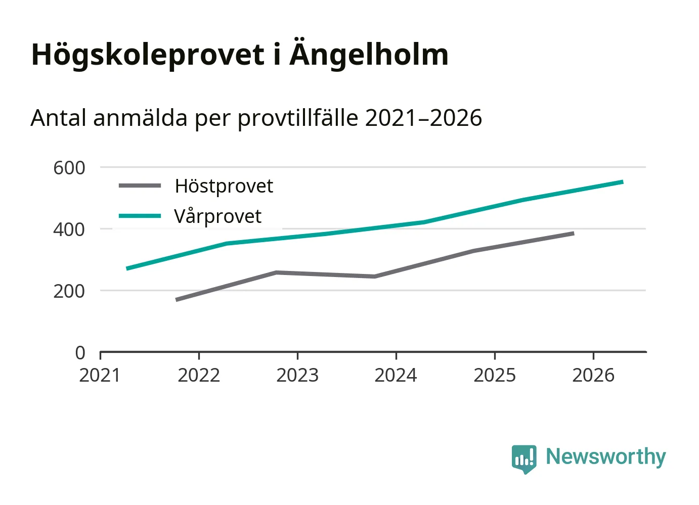 På lördag är det dags för högskoleprovet igen. Efter de begränsade provomgångarna under pandemin har antalet anmälda ökat varje år i Sverige, och i år är omkring 100 700 personer anmälda att delta någonstans i landet. För femte året i rad ökar antalet anmälda till vårens prov i Ängelholm. På lördag är 550 personer anmälda, jämfört med 492 personer förra våren.
