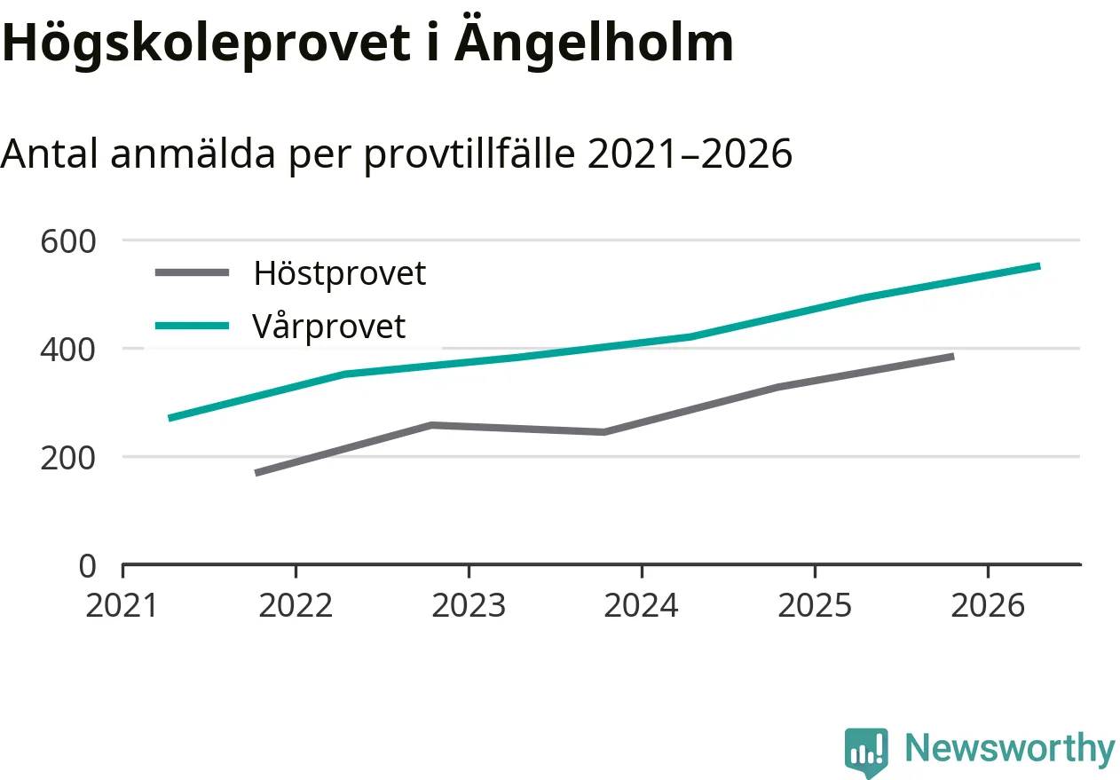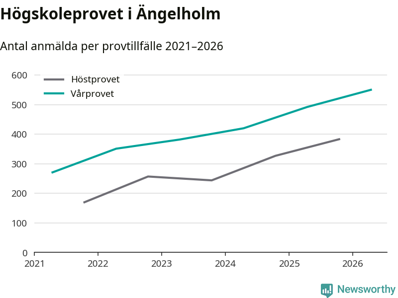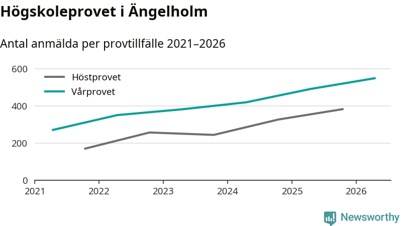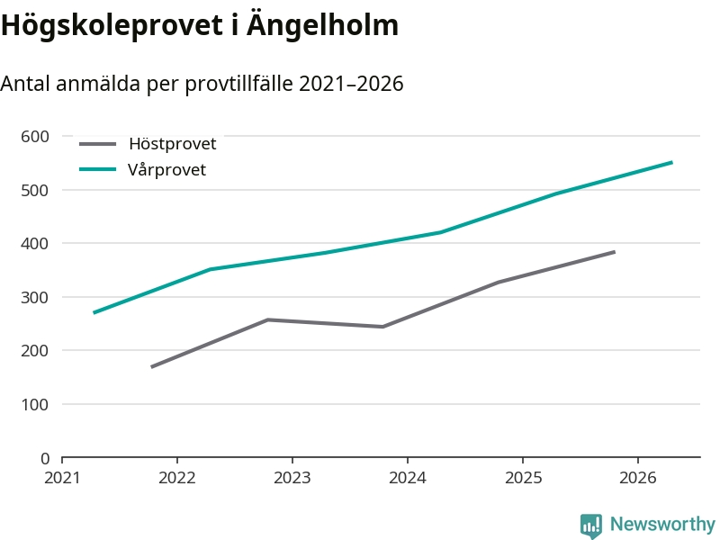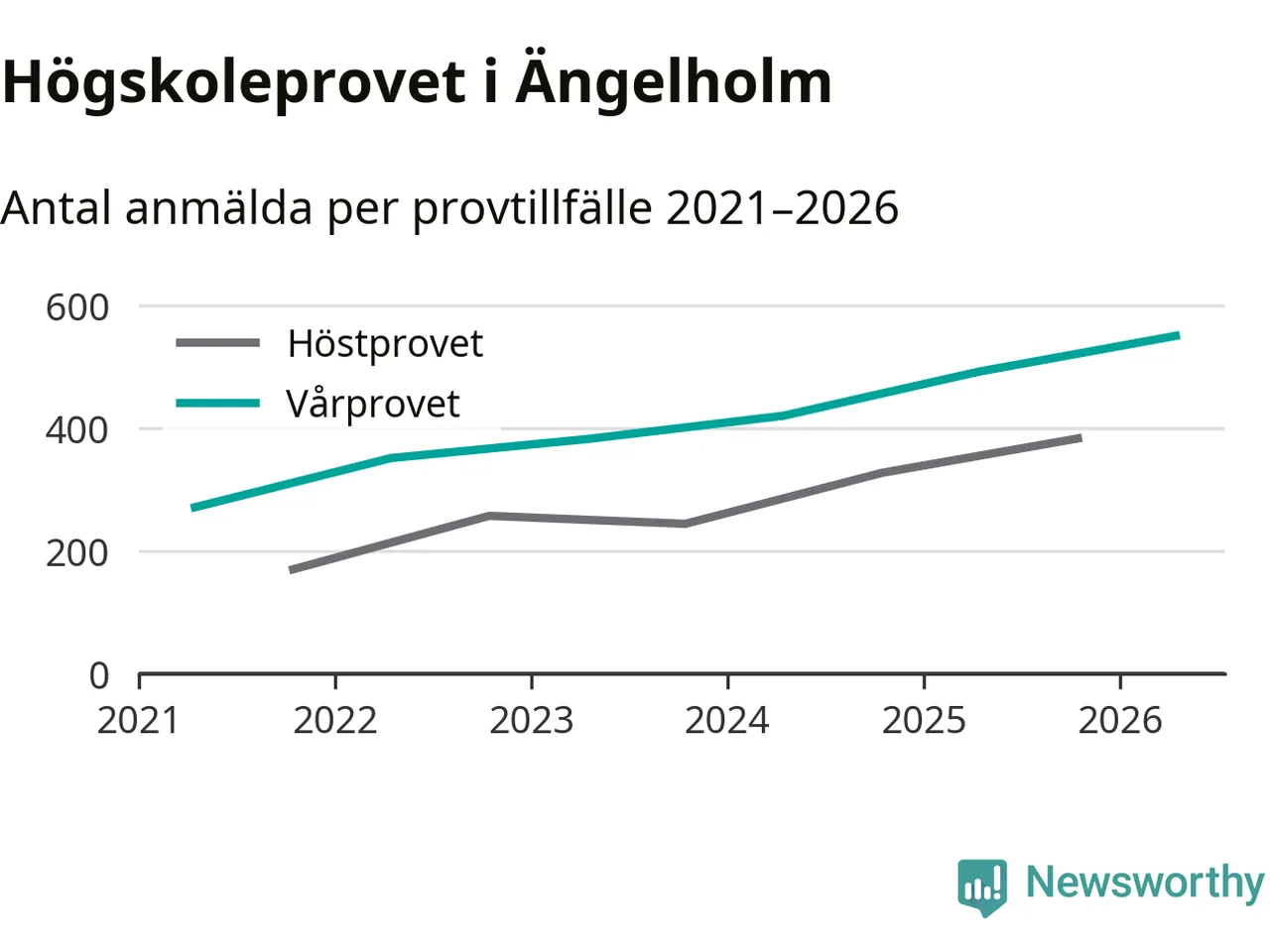 På lördag är det dags för högskoleprovet igen. Efter de begränsade provomgångarna under pandemin har antalet anmälda ökat varje år i Sverige, och i år är omkring 100 700 personer anmälda att delta någonstans i landet. För femte året i rad ökar antalet anmälda till vårens prov i Ängelholm. På lördag är 550 personer anmälda, jämfört med 492 personer förra våren.