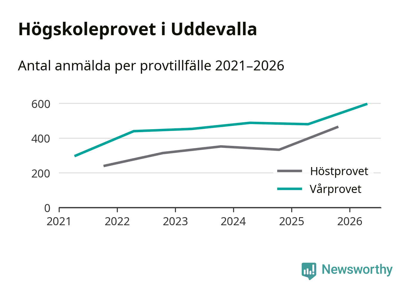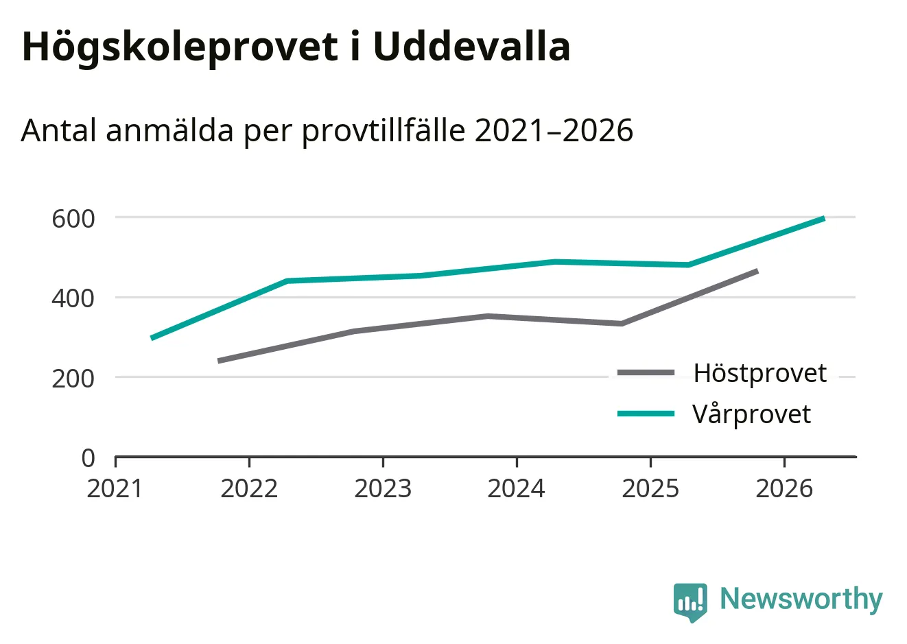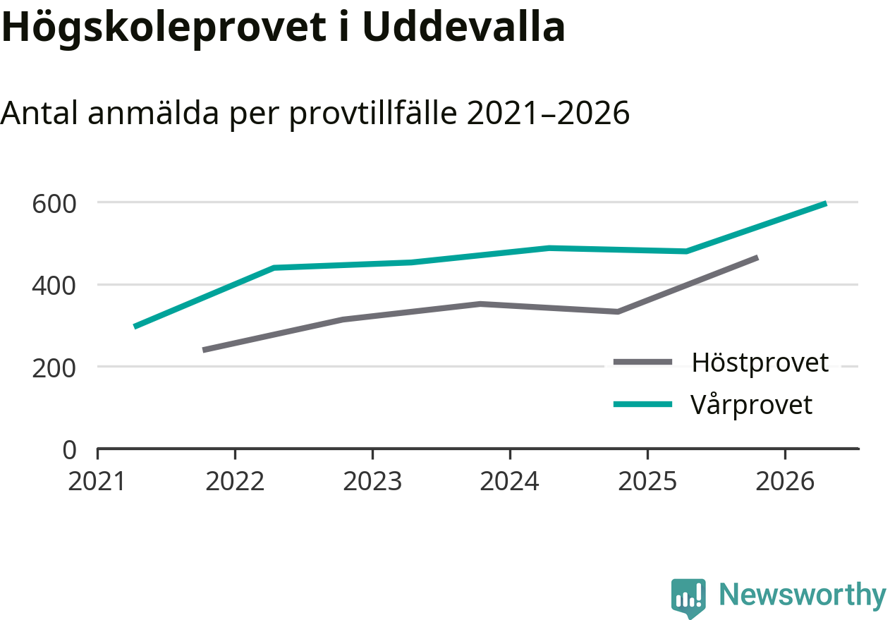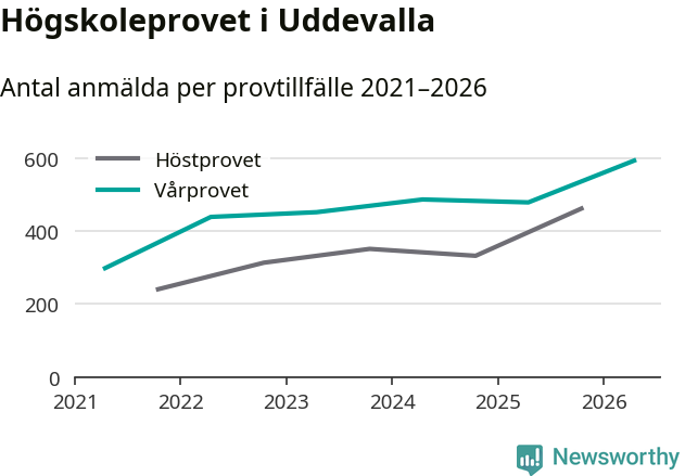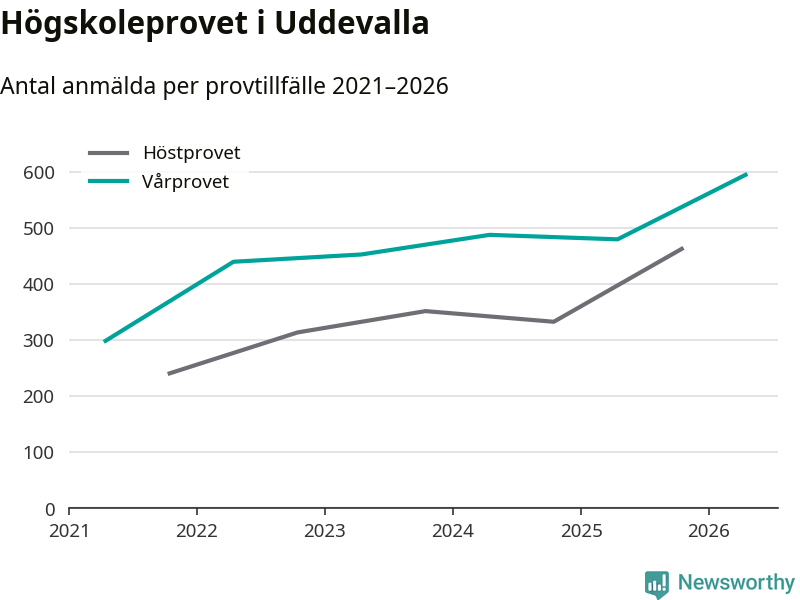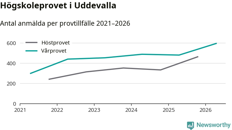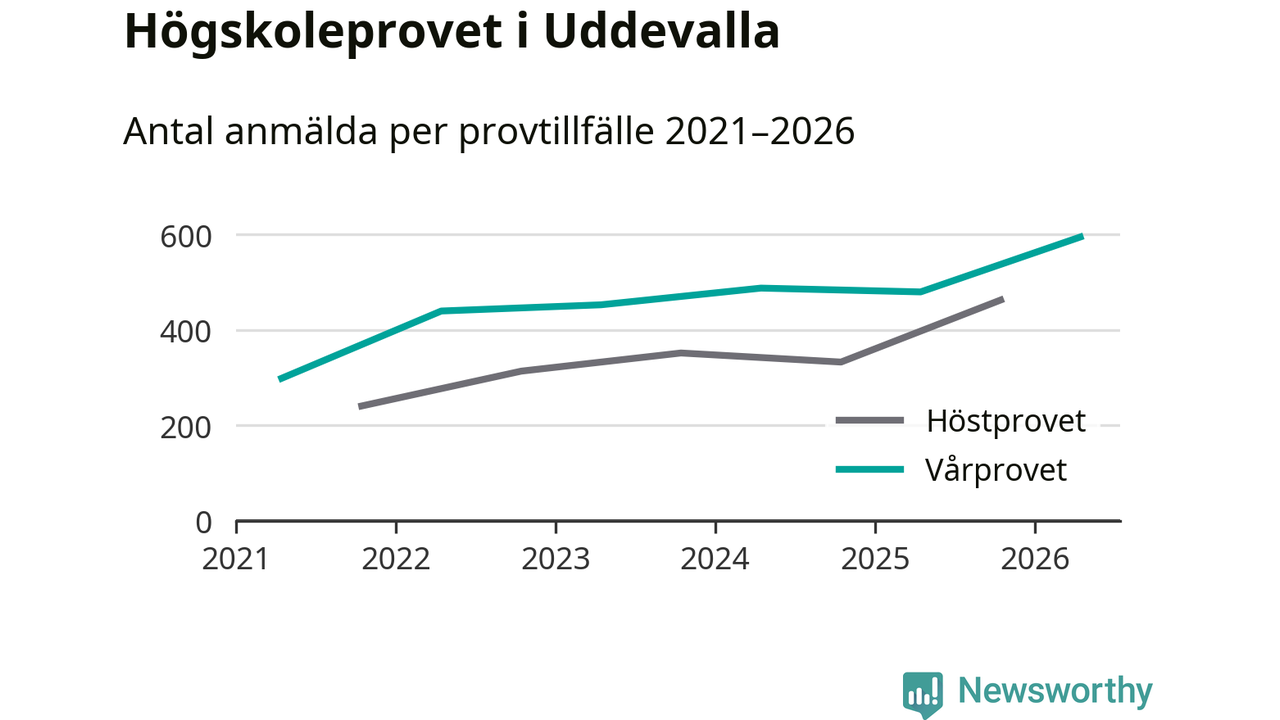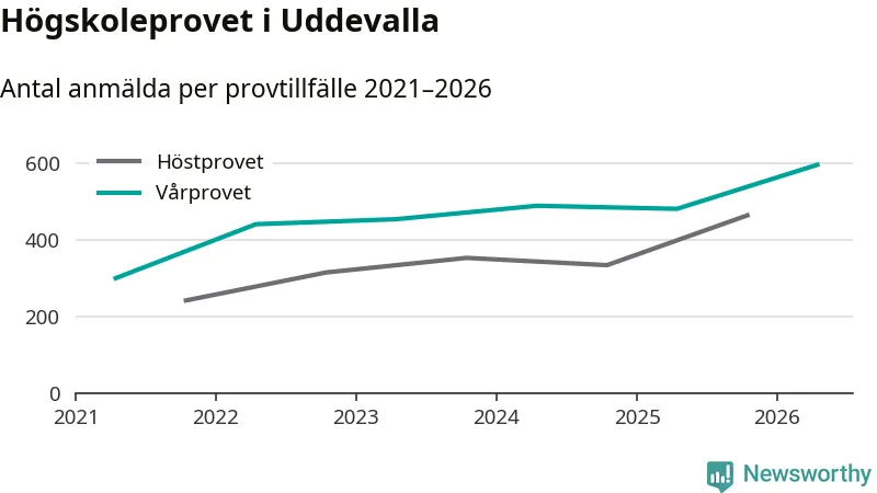 På lördag är det dags för högskoleprovet igen. Efter de begränsade provomgångarna under pandemin har antalet anmälda ökat varje år i Sverige, och i år är omkring 100 700 personer anmälda att delta någonstans i landet. På lördag är 595 personer anmälda att skriva högskoleprovet i Uddevalla. Förra våren var motsvarande siffra 480 personer.