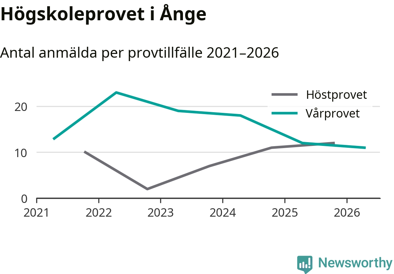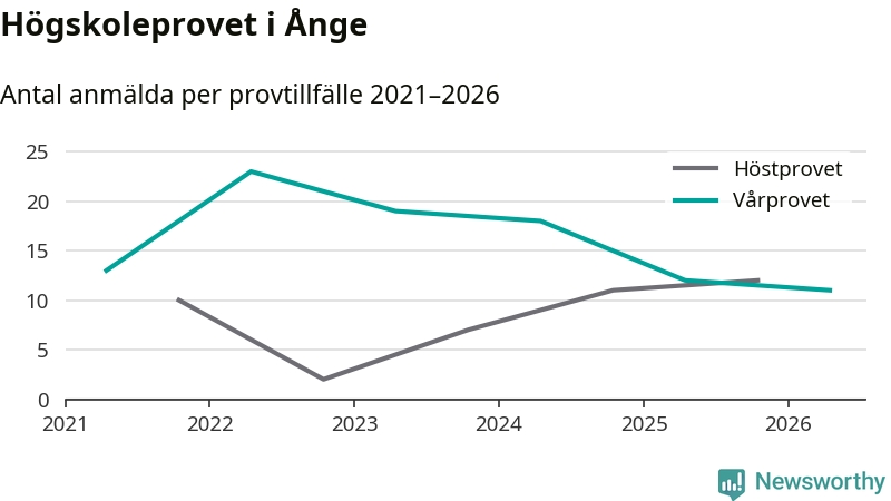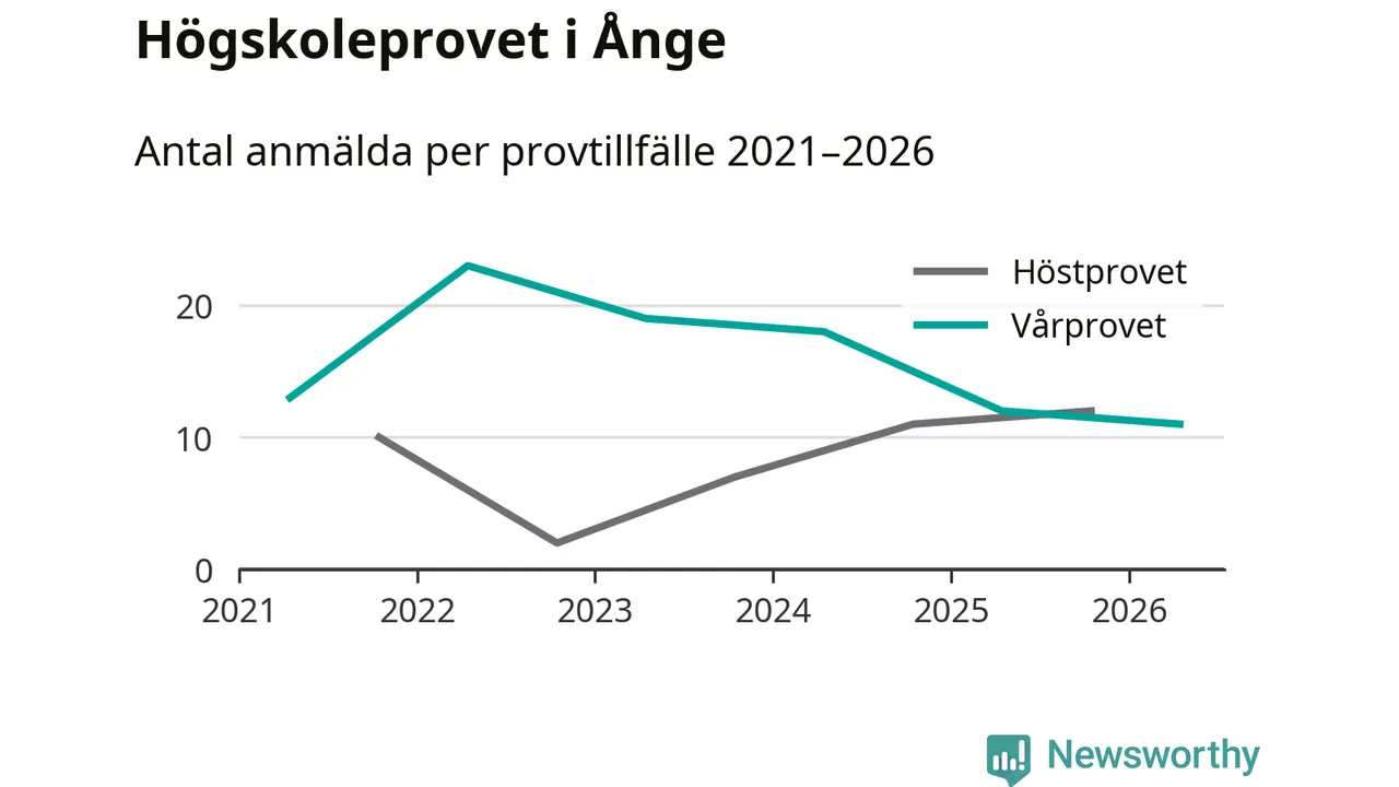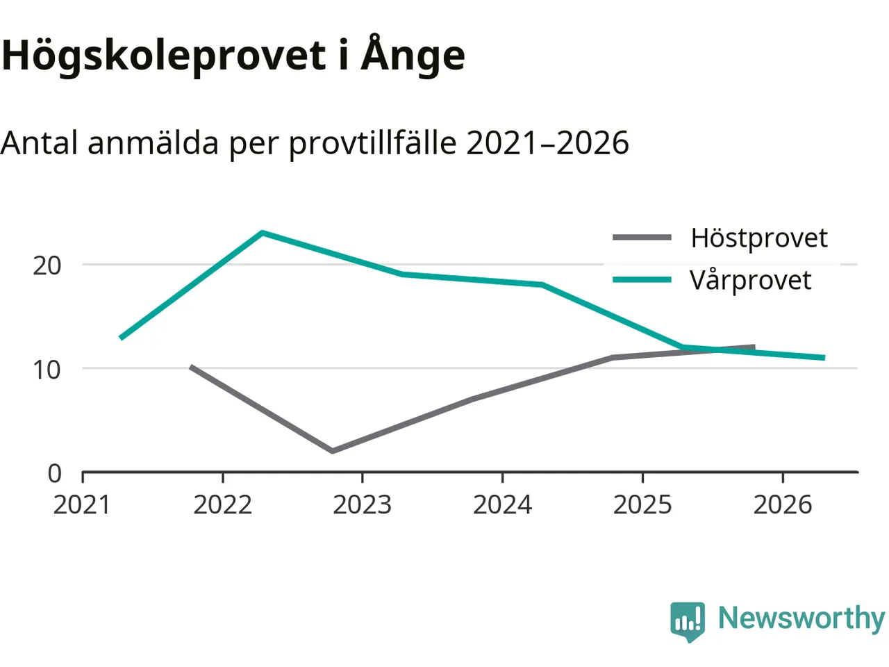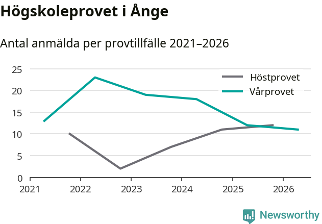 På lördag är det dags för högskoleprovet igen. Efter de begränsade provomgångarna under pandemin har antalet anmälda ökat varje år i Sverige, och i år är omkring 100 700 personer anmälda att delta någonstans i landet. För fjärde året i rad minskar antalet anmälda till vårens prov i Ånge. På lördag är elva personer anmälda, jämfört med tolv personer förra våren.