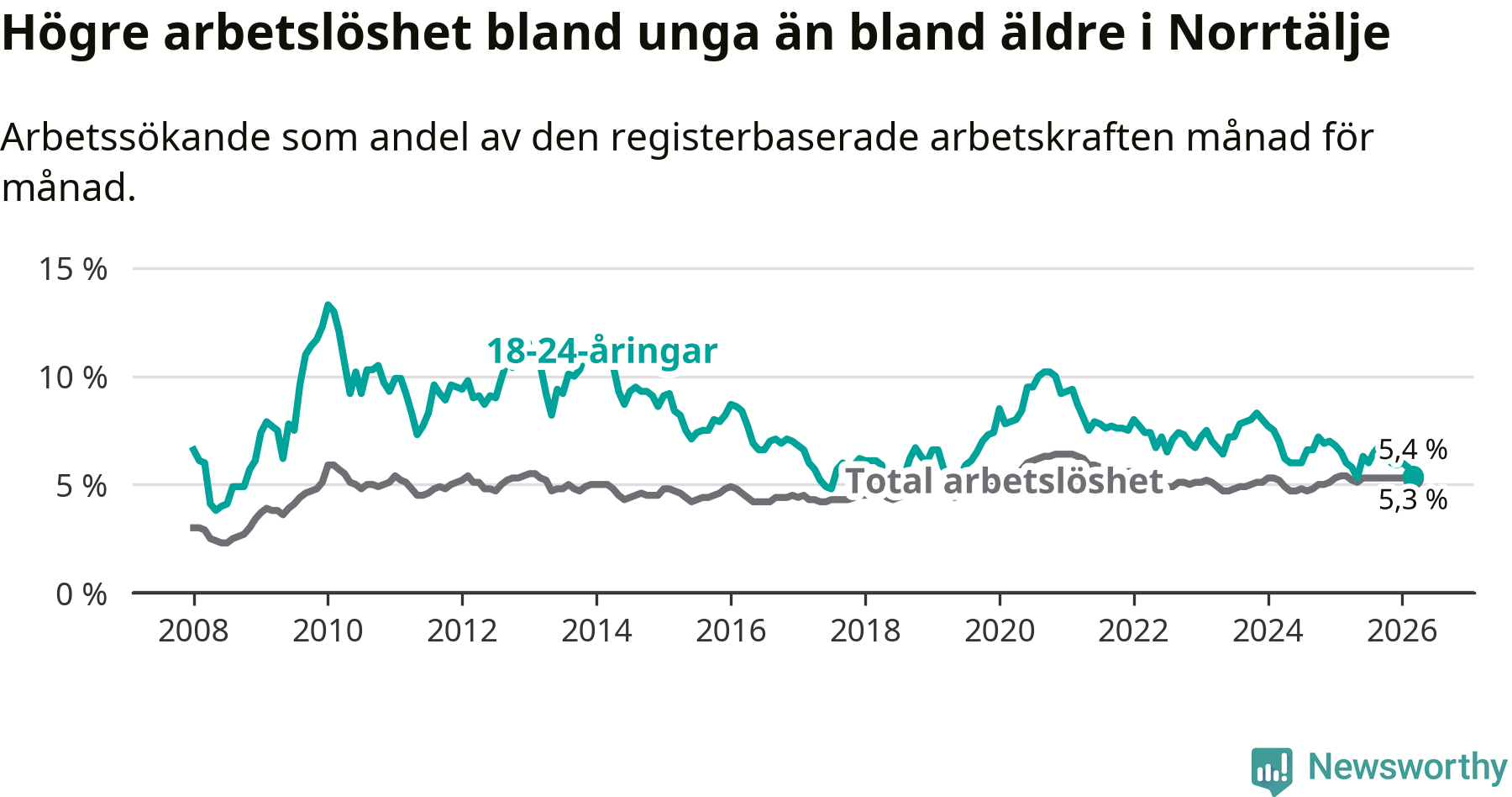 | Bland ungdomar | 5,4 % | −0,6 % ▼ | 6,7 % | −0,1 % ▼ | 7,1 % | −0,6 % ▼ |