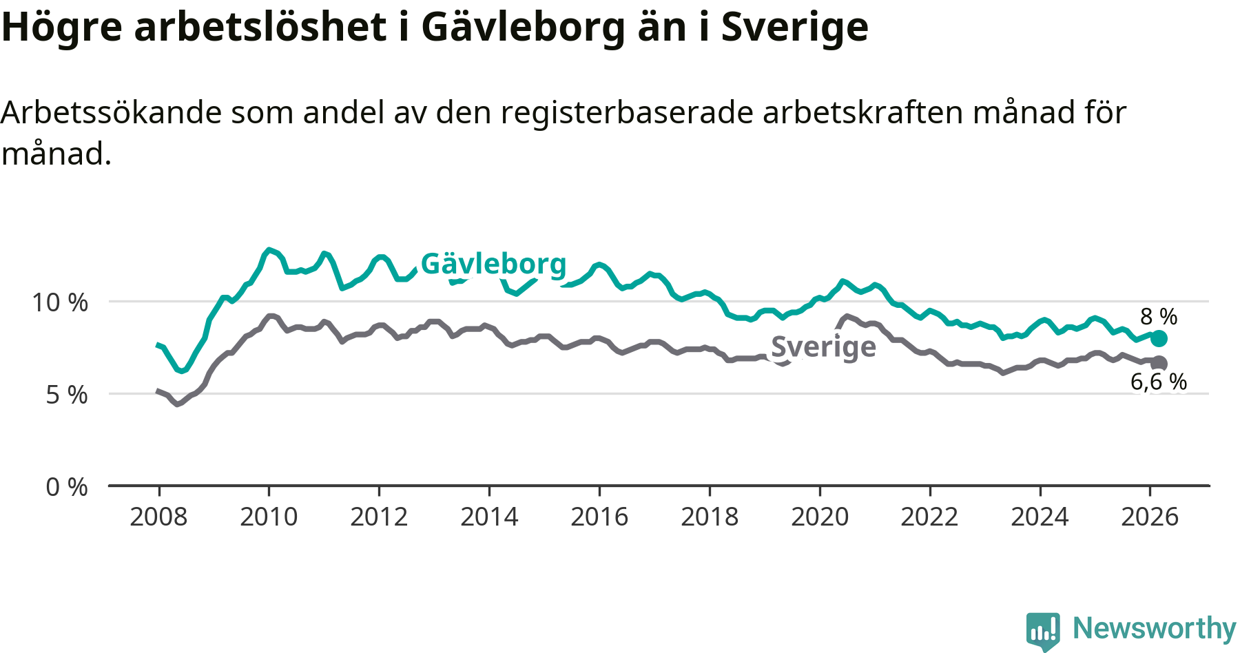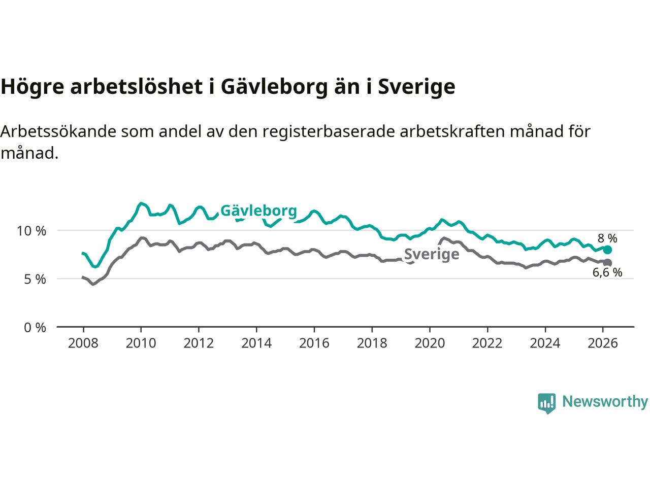 Graf: Arbetslöshet i Gävleborgs län och Sverige
