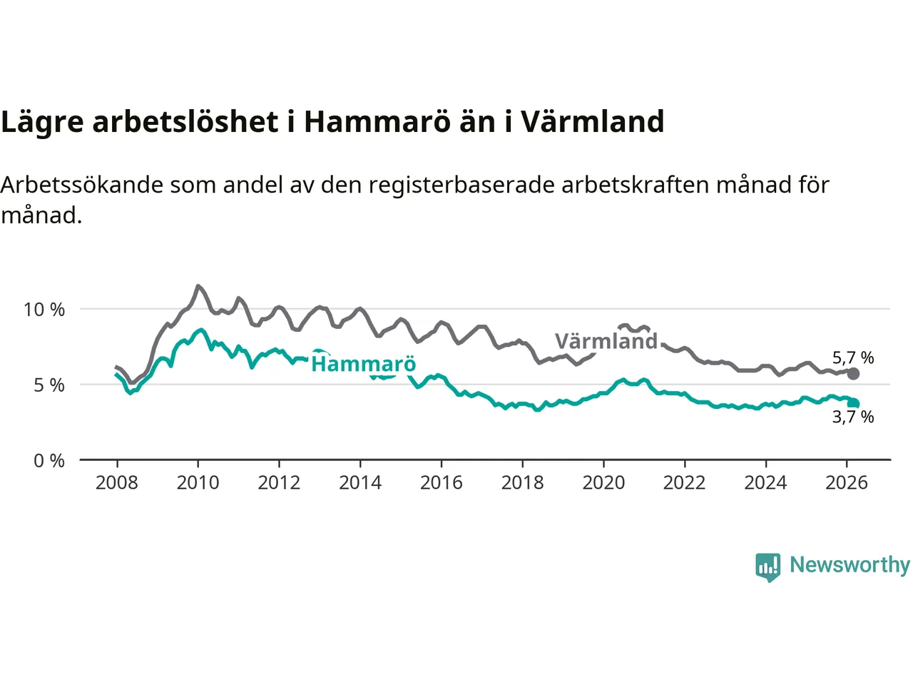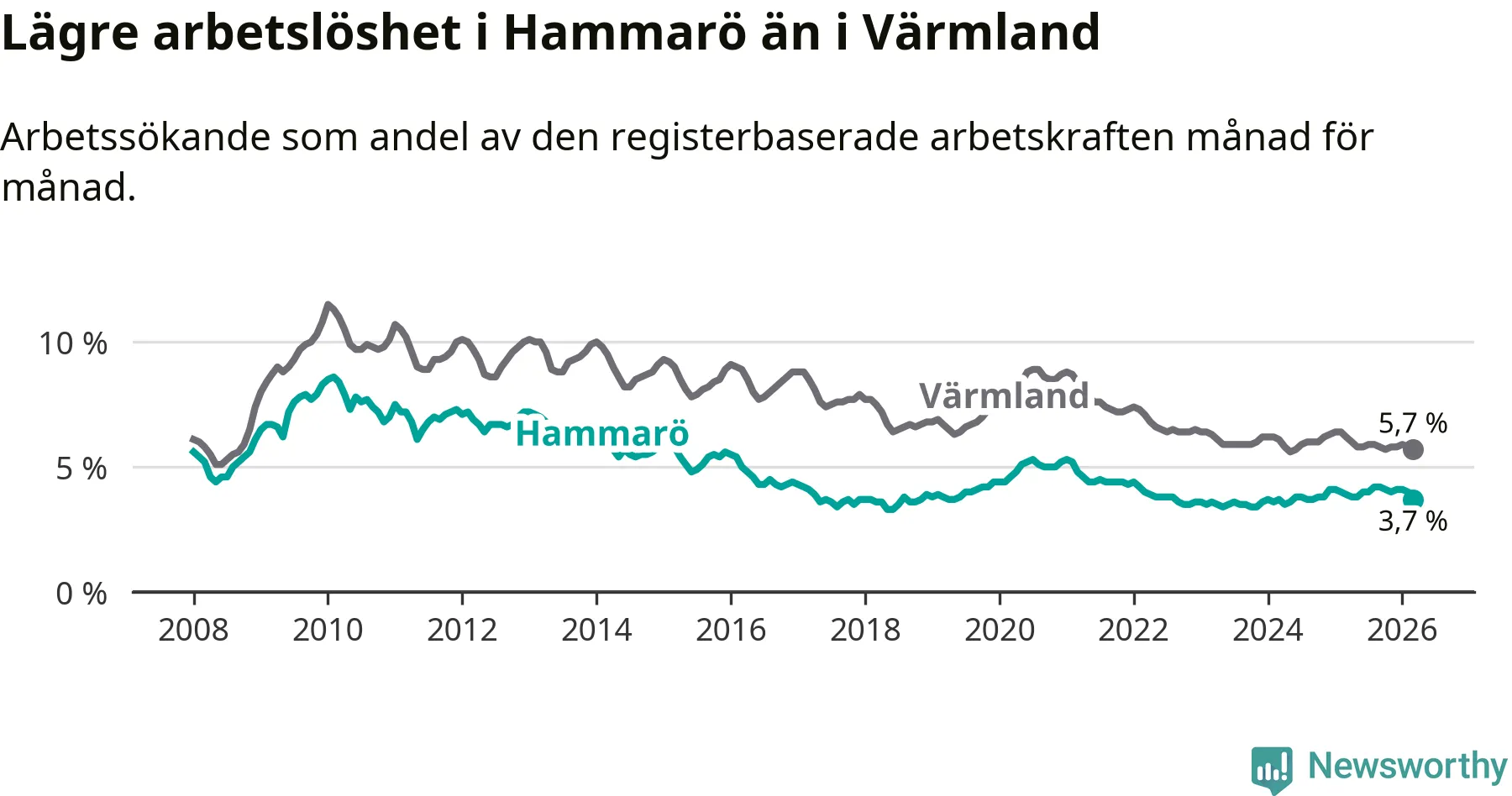 Graf: Arbetslöshet i Hammarö kommun och Värmlands län