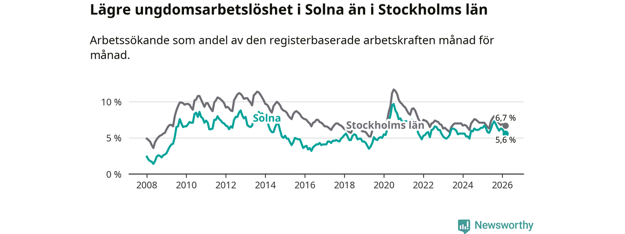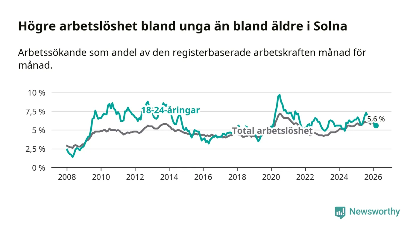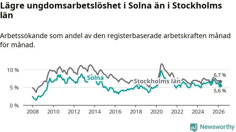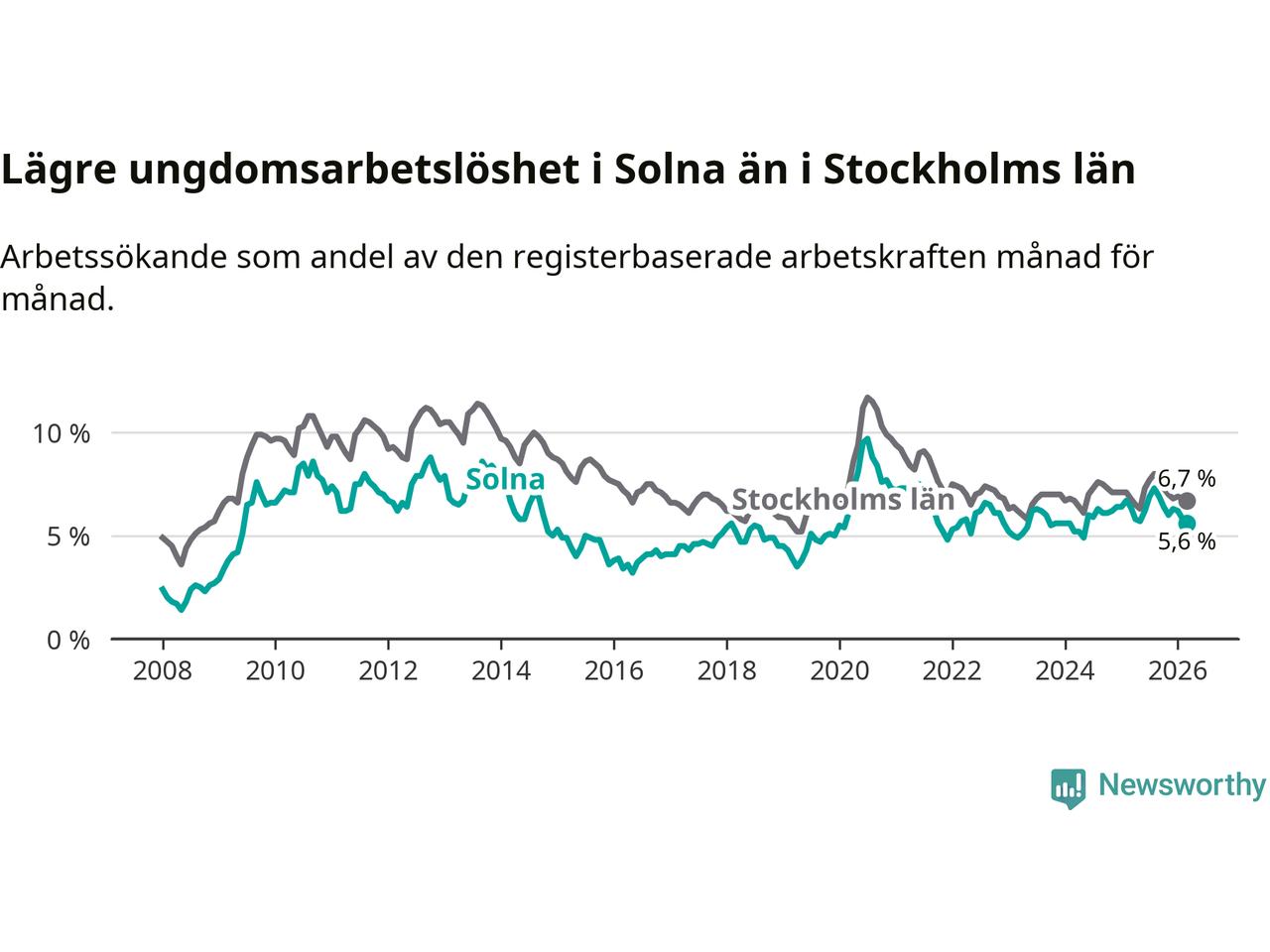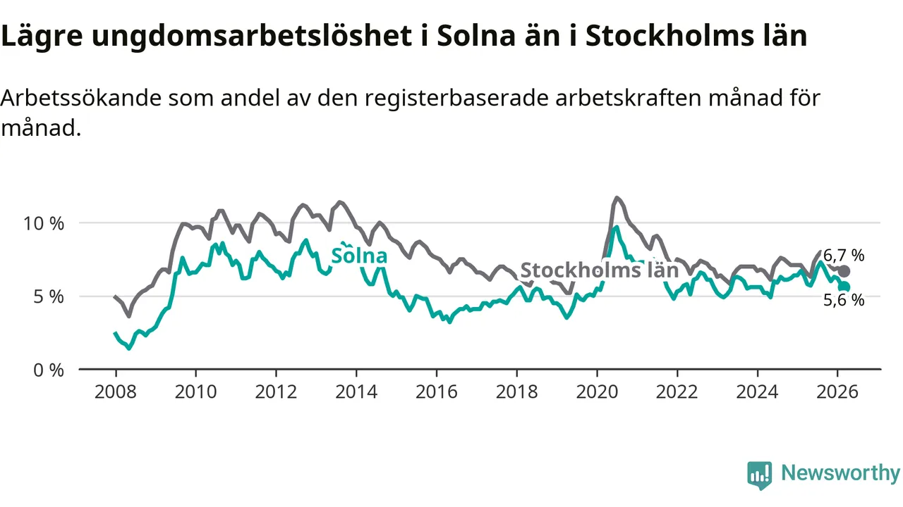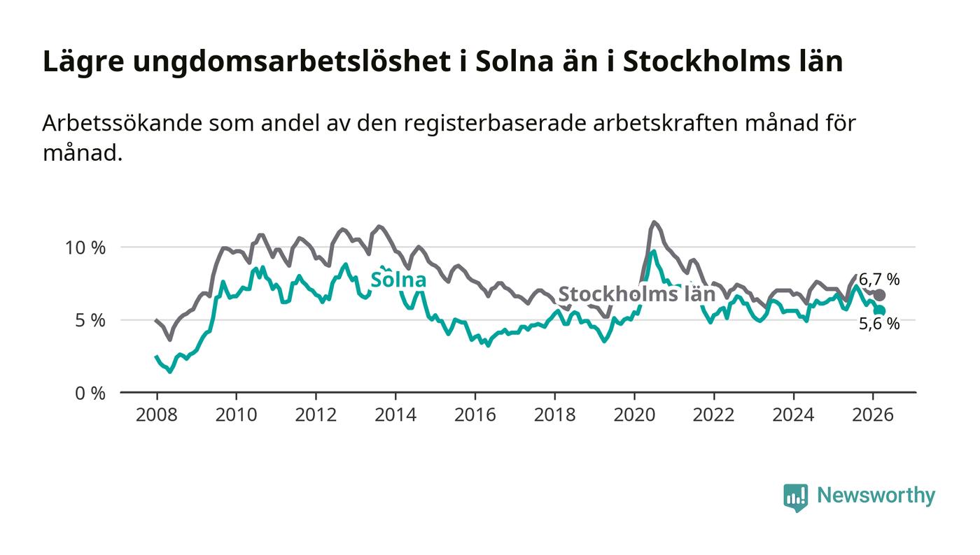 Graf: Arbetslöshet bland unga i Solna kommun och Stockholms län