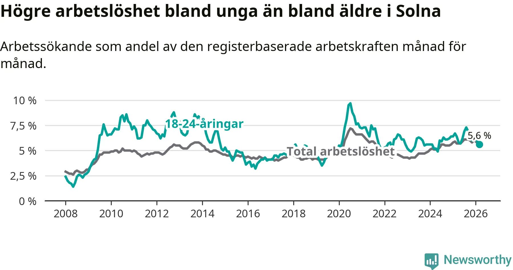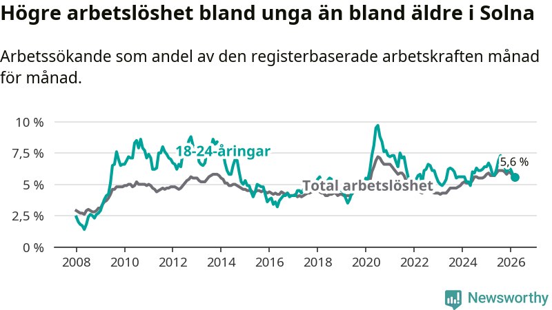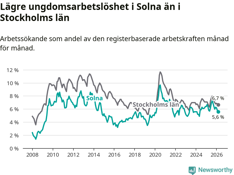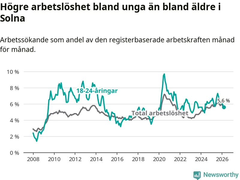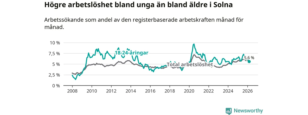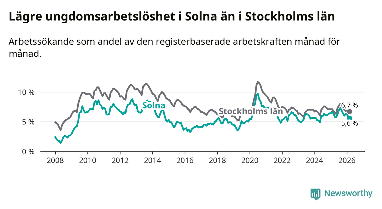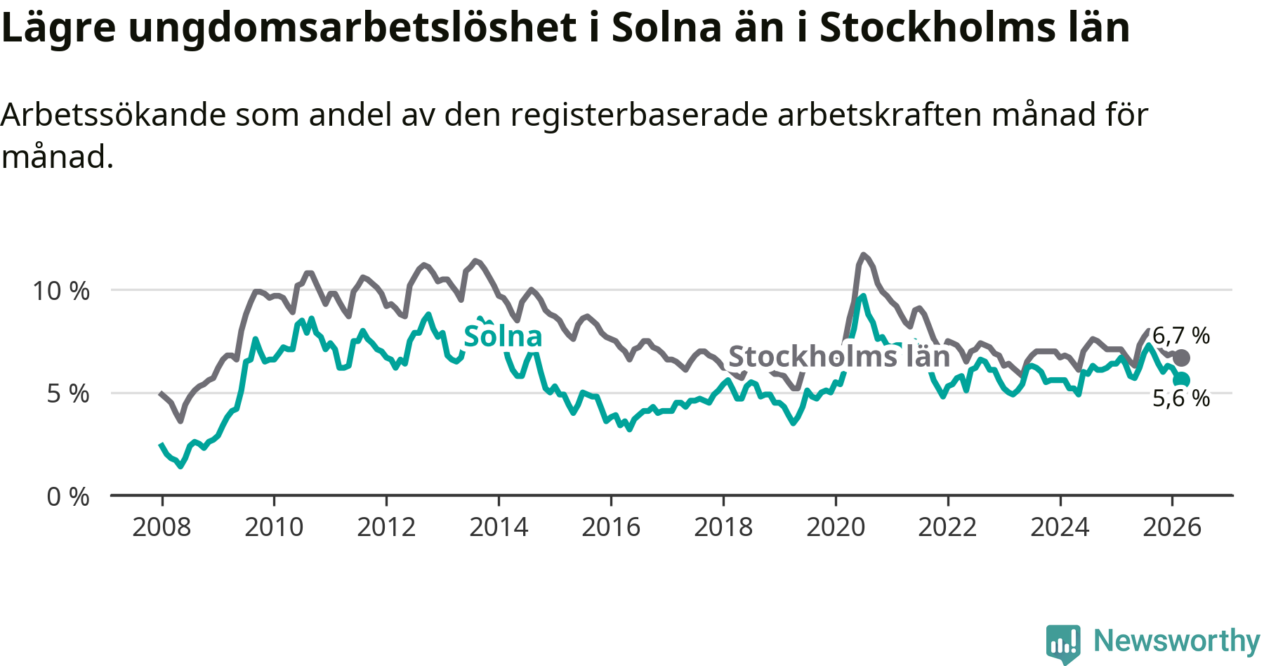 Graf: Arbetslöshet bland unga i Solna kommun och Stockholms län