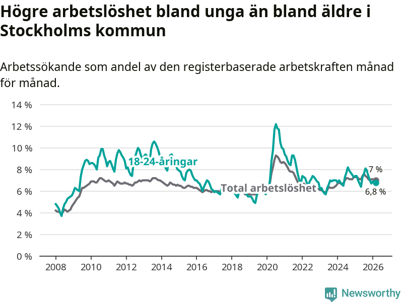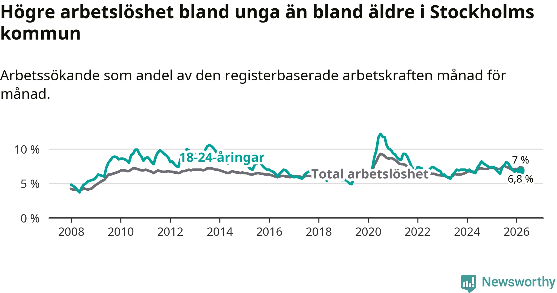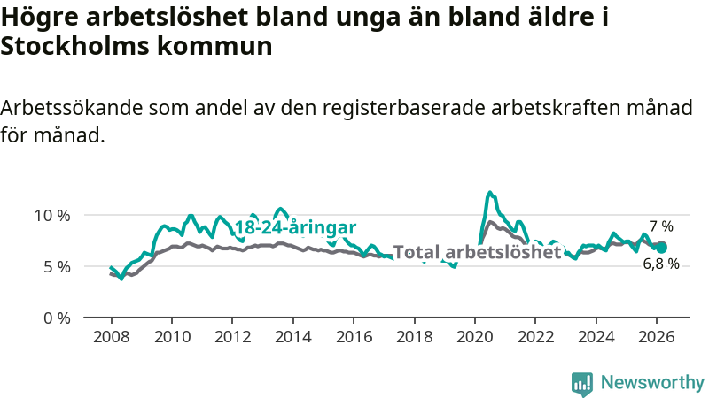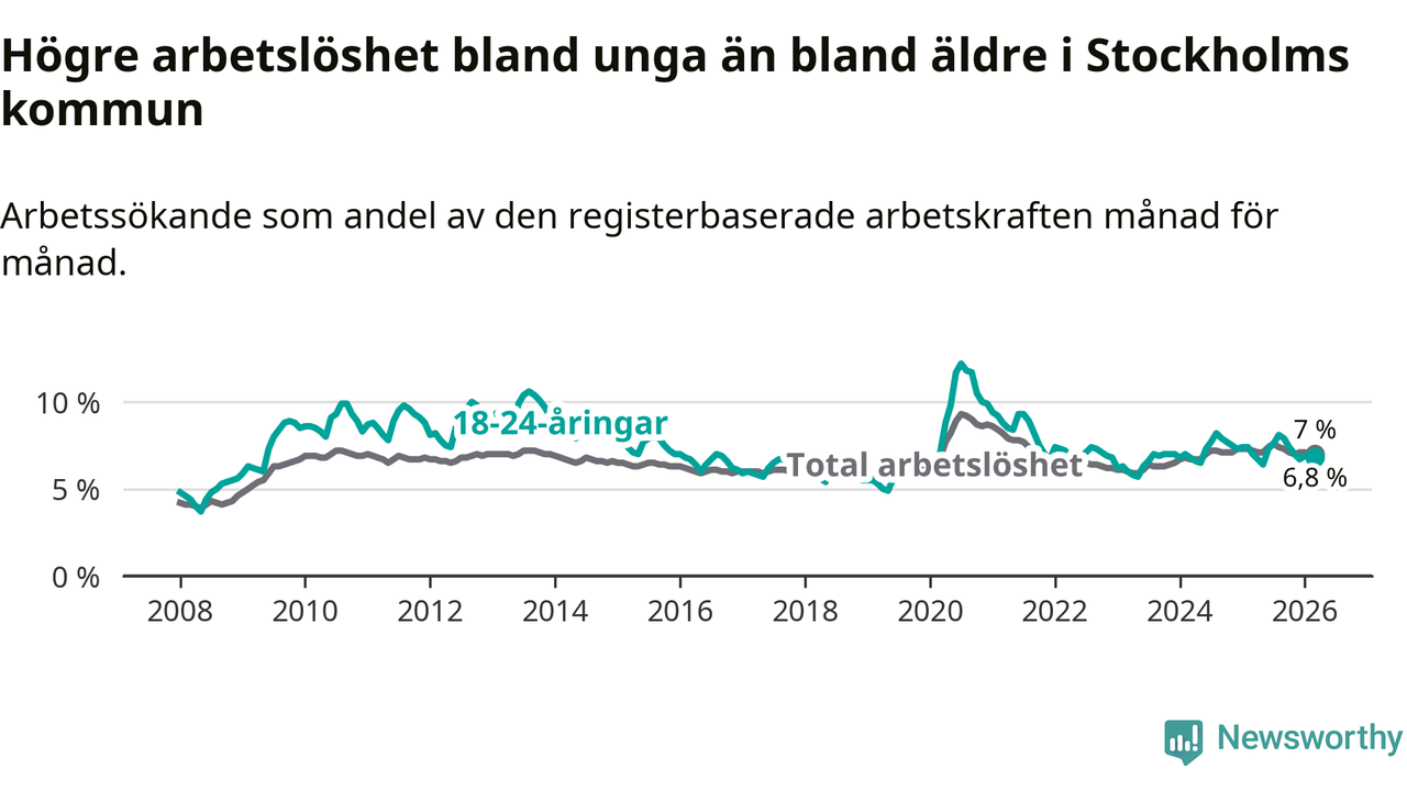 | Bland ungdomar | 6,8 % | −0,2 % ▼ | 6,7 % | −0,1 % ▼ | 7,1 % | −0,6 % ▼ |
