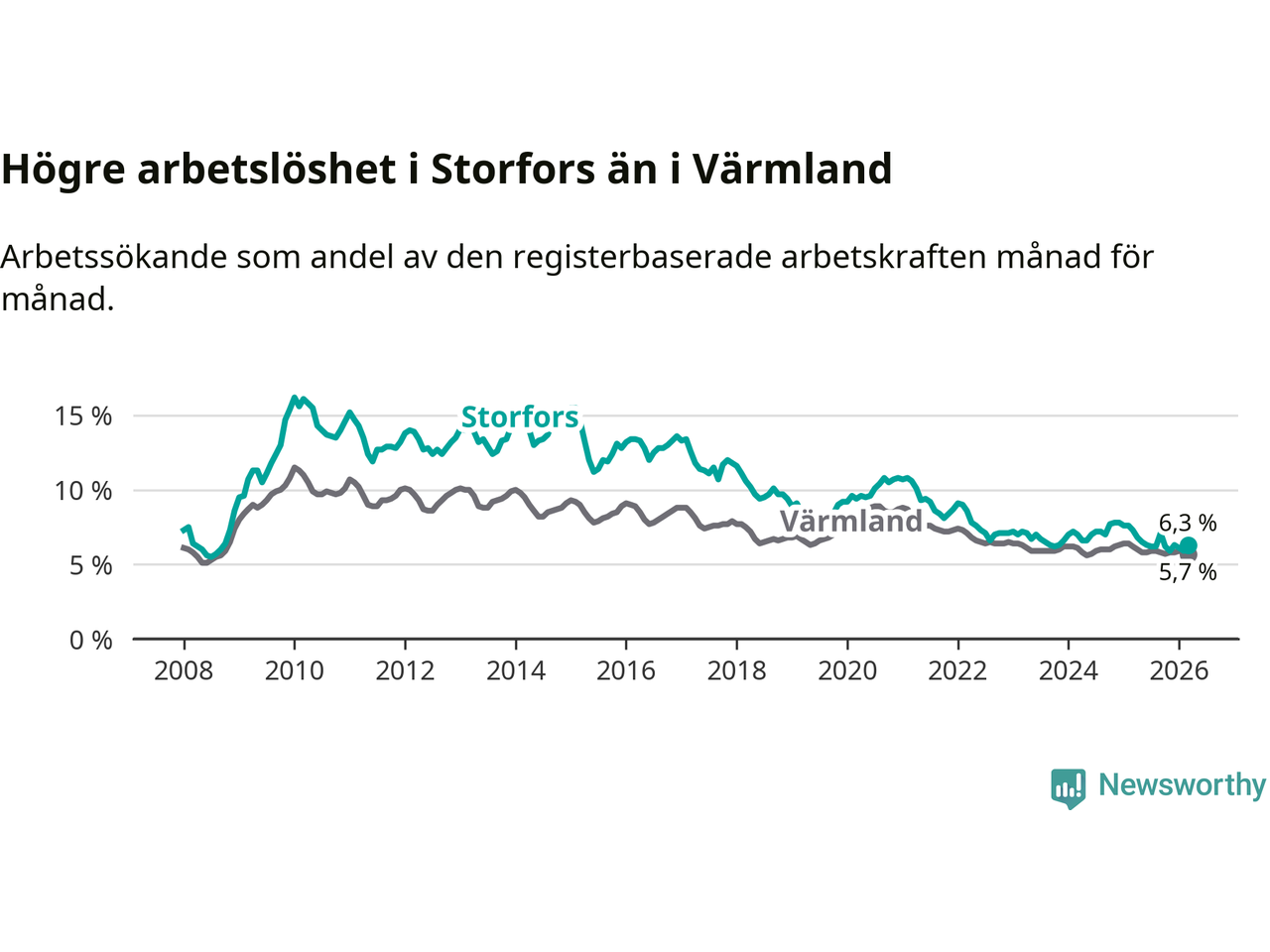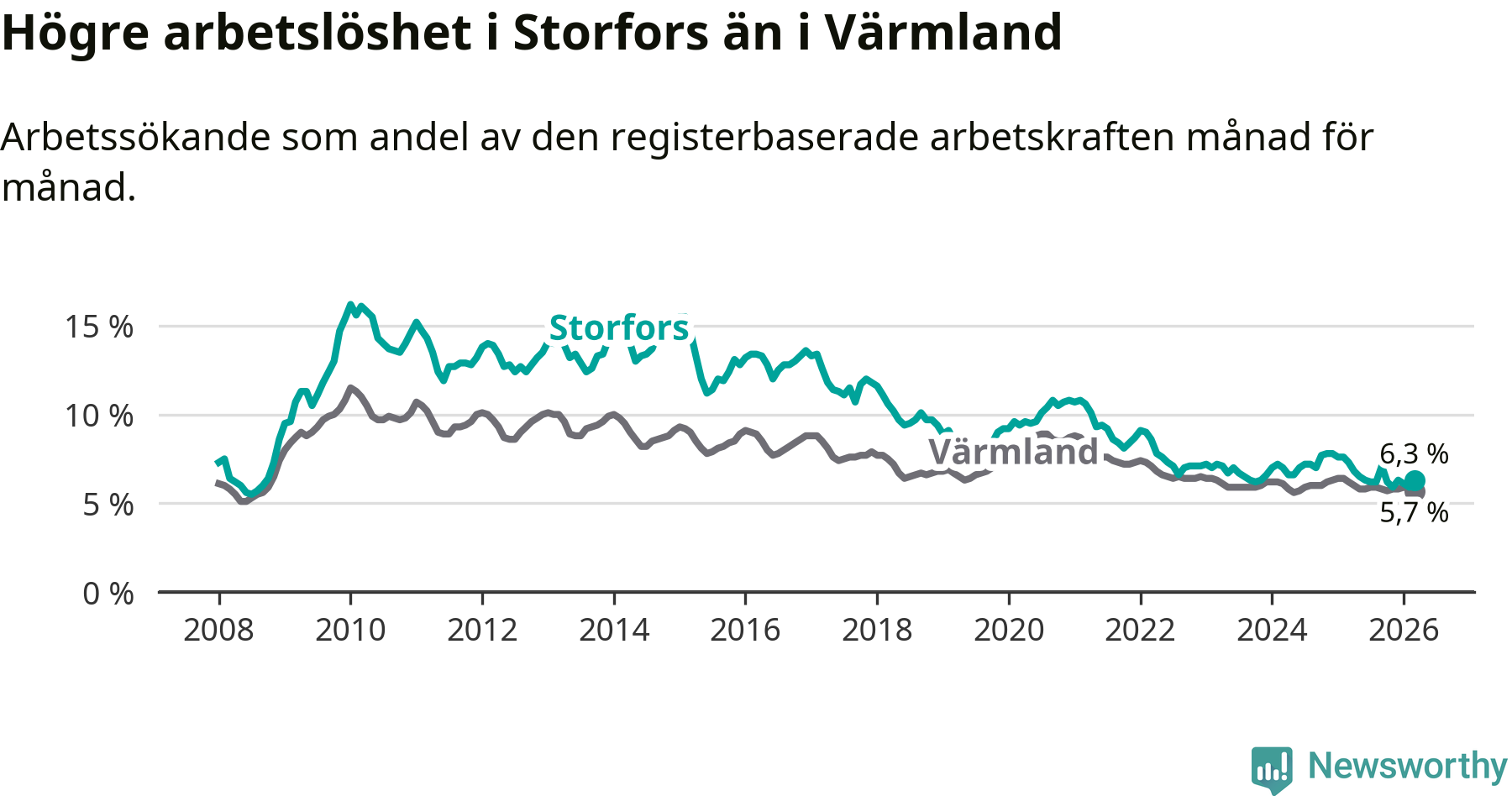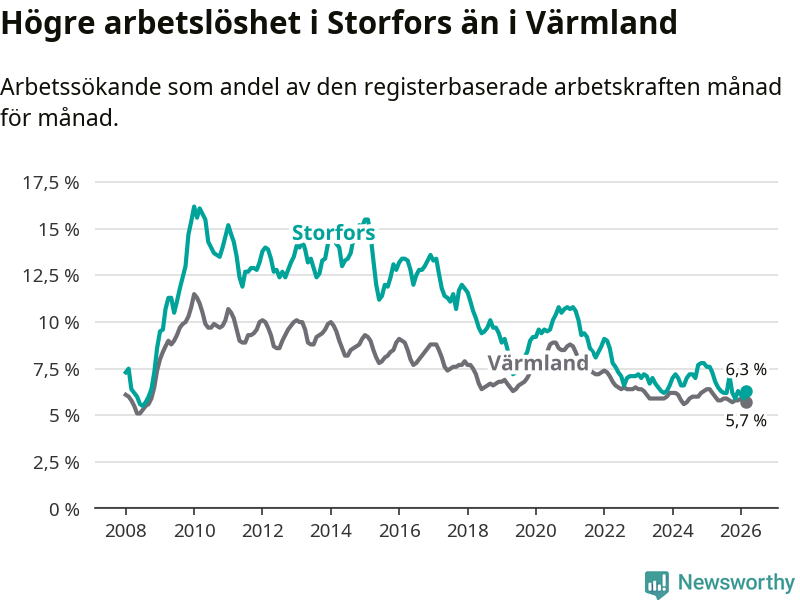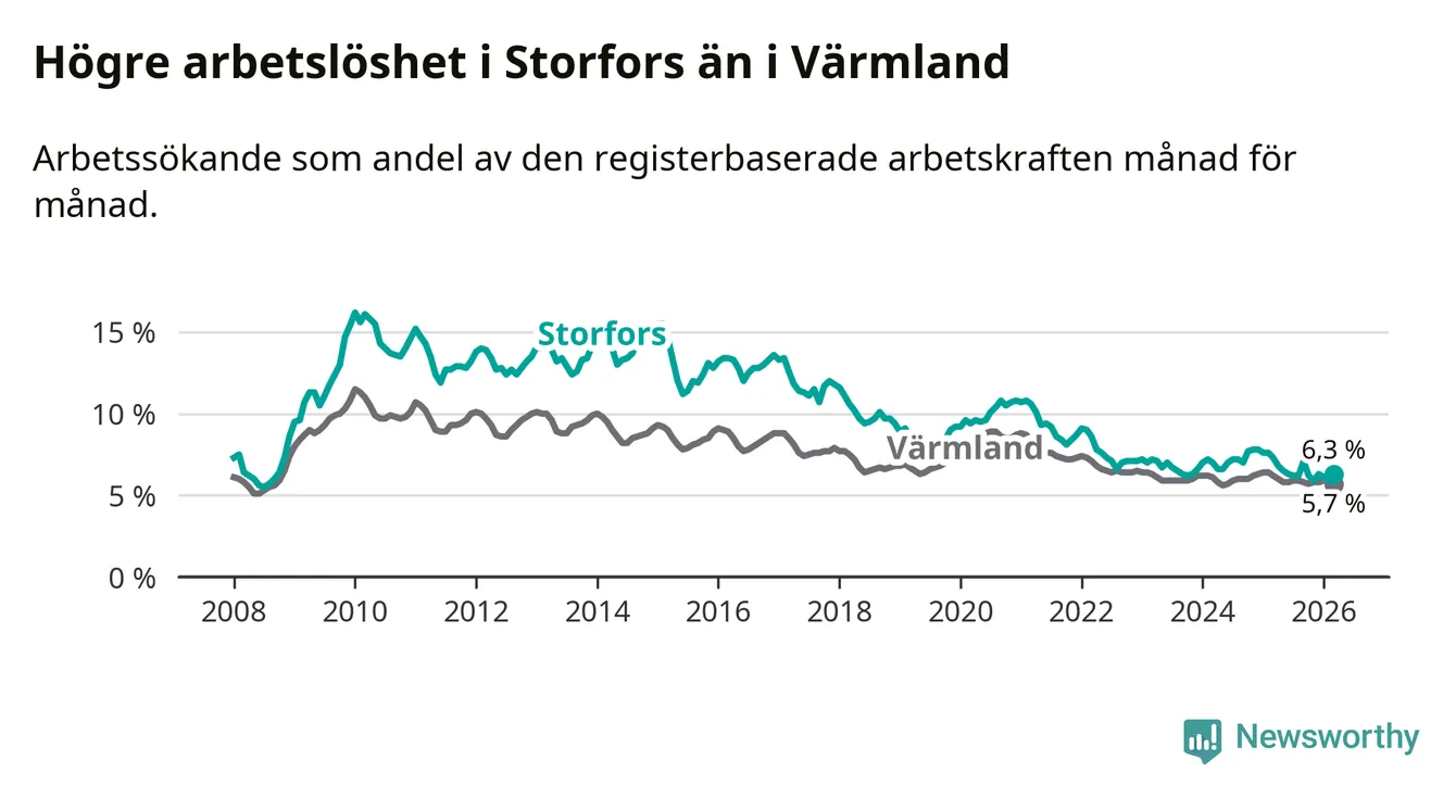 Graf: Arbetslöshet i Storfors kommun och Värmlands län