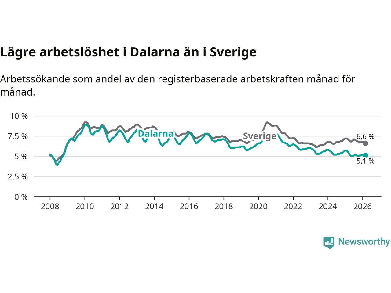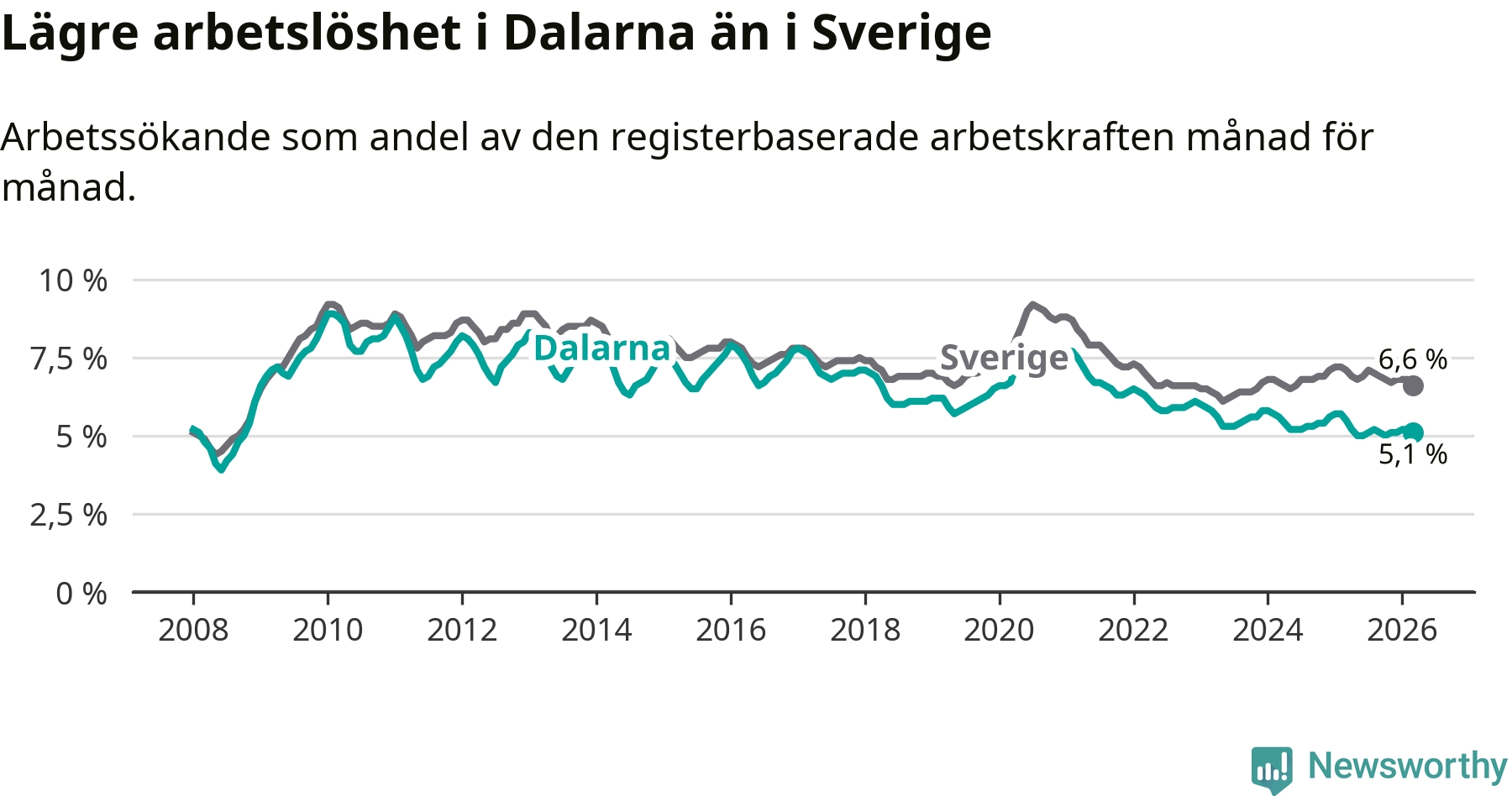 Graf: Arbetslöshet i Dalarnas län och Sverige