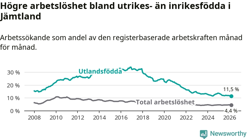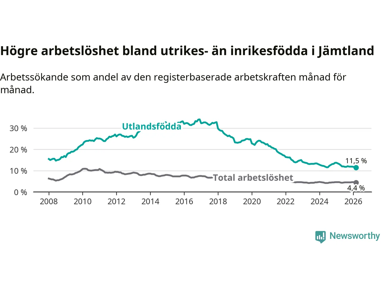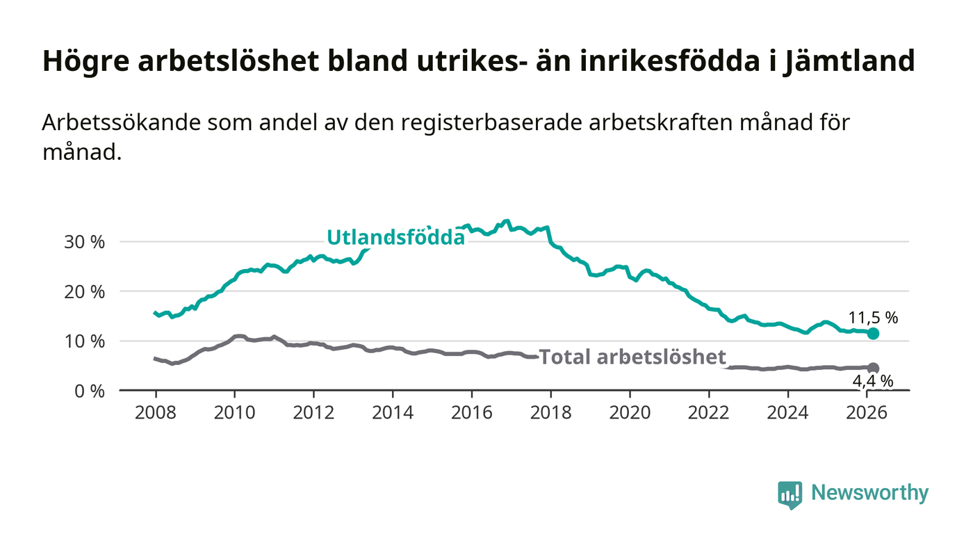 Läs mer om arbetslösheten bland utlandsfödda längre ner i den här texten.