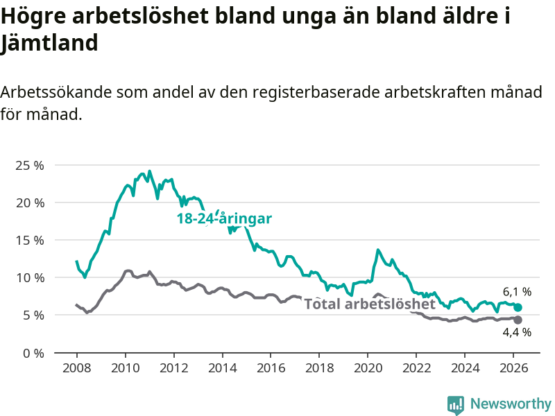 | Bland ungdomar | 6,1 % | −0,3 % ▼ | 7,1 % | −0,6 % ▼ |